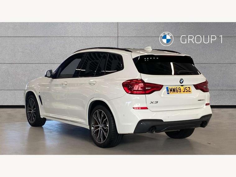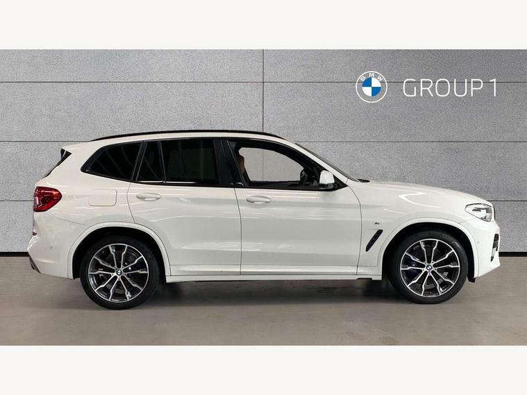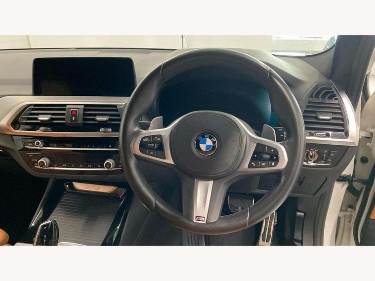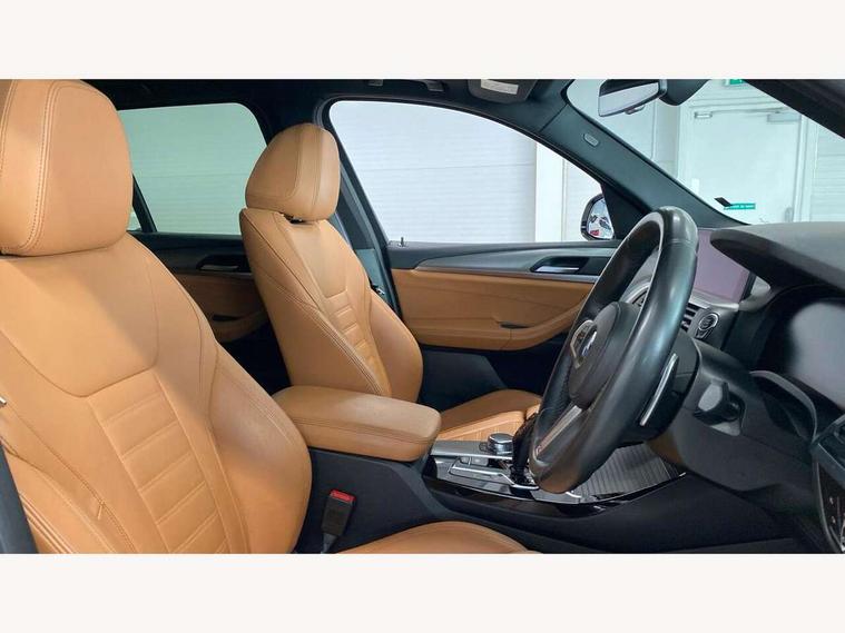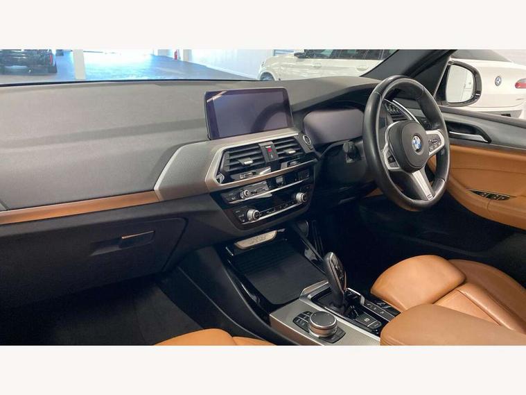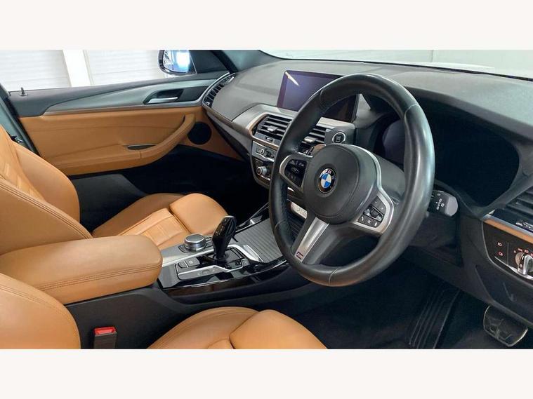 Active Guard incl speed limiting and lane departure functions with auto steering, and front collision warning with brake intervention, Attentiveness assist, Automatic tailgate operation, BMW Live Cockpit Professional sat nav system including 10.25" high resolution display and Intelligent Voice Assistant, BMW Online services, BMW Teleservices, Brake pad wear indicator in front and rear, Check Control warning system for monitoring of lights and door/luggage compartment open warning, Control display - 6.5" colour display screen, Electric Power Steering (EPS) with Servotronic, Front/rear Parking distance control, iDrive Controller with 8 favourite buttons, Lights on warning by audio warning signal when ignition is switched off, Navigation system - BMW Professional multimedia with Hard disc drive (HDD) and 10.25" touch display, Oil sensor for level and grade, warning by check control system, On board computer - average speed+fuel consumption, service interval, clock/date, odometer/trip meter, outside temperature display and ice warning, Optimum shift indicator, Personal Profile - automatic lock when driving away selectable, Real time traffic information, Semi digital instrument cluster, Stop/start system, Automatic transmission with gearshift paddles, Diesel particulate filter, Incorrect fuelling protection, Larger capacity fuel tank, Multi-link rear suspension, Performance Control, Auxiliary socket for external MP3 player, BMW professional radio/CD/MP3, DAB Digital radio, Acoustic glazing, Black finish on B pillars, Body colour door handles, Body colour electric adjust heated aspherical door mirrors, Body colour roof mouldings, Body coloured bumpers, Chrome kidney grille with high gloss black vertical slats, Direction indicator, side repeaters, integrated in exterior mirrors, Dual chrome exhaust, Dynamic brake lights, Exterior mirrors - electrically folding with anti-dazzle, Fingertip control / anti-trap function on electric window, Follow me home headlights, Front and rear bumper system with replaceable deformation elements, Front and rear electric windows, Green tinted heat insulating glass, Heated windscreen washer jets, Height adjustable headlamps, High gloss black door sill finishers, High gloss black shadow line roof rails, High gloss shadowline exterior trim in decorative moulding side frame/recess cover/guide rail/B, C pillars/mirror frame and triangle with mirror base, High level 3rd brake light incorporating LED Technology, Interior rear view electrochromatic mirror with automatic anti dazzle function, LED front fog lights, LED tail lights, Lightweight engineering, M aerodynamic bodystyling, Model designation, Rain sensor including auto headlights activation, Rear wiper, Shark fin antenna, Visible VIN plate, Welcome lighting, Windscreen wipers with adjustable interval, 12V socket in centre console and luggage area, 3 rear headrests, 3 zone automatic air conditioning, 4 lashing points to secure luggage, Ambient lighting, Anthracite headlining, Anthracite Velour floor mats, Driver/passenger sunvisors with ticket holders + illuminated vanity mirrors, Foldable boot floor with storage compartment, Four grab handles integrated in roof lining, Front and rear bottle holders integrated into door trim storage compartments, Front and rear side armrests integrated into door trim, Front centre armrest with storage compartment, Front footwell lights, Front sports seats, Front/rear courtesy lights with soft on/off dimming, Front/rear reading lights, Height adjustable front/rear head restraints, Isofix rear child seat preparation, Leather gear knob, Luggage area underfloor compartment, Luggage compartment lighting, M Sport multifunction leather steering wheel, Parcel shelf removeable and storable under boot floor, Reach and rake adjustable steering column, Rear centre armrest with 2 cupholders, Rear seat centre armrest with two cupholders, Removable / retractable luggage cover, Slope adjustable rear seats, Storage compartment in rear centre console and front/rear door trims, Through loading system with 40/20/40 split folding rear seat, Toolkit located in luggage compartment, Two front cupholders with removable oddments tray/lid, Vernasca leather upholstery, Connected pack professional - X3, ABS/EBD, ADB - Automatic Differential Brake, Automatic Stability Control (ASC), Battery safety cut-off, BMW emergency call, Brake assist, Brake assist function, Brake drying, Brake energy regeneration, Braking pre-tensioning, Child locks on rear doors, Cornering brake control (CBC), Crash Sensor - activation of central locking release, hazard warning light and interior lighting, Deactivation of fuel pump in the event of a crash, Driver and front passenger front and side airbags with passenger deactivation and ITS front and rear head airbags, DSC+, Dynamic brake control, Dynamic Traction Control - DTC, Electromechanical parking brake, Front seat belts warning, Hill descent control, Hill start assist, Seatbelt security check for front seats, Side impact protection, Three point seatbelts to all seats with front and outer rear pyrotechnic belt tensioners and seat belt force limiters, Two tone horn, Tyre pressure monitoring system, Ventilated front and rear disc brakes, Warning triangle and first aid kit, Central locking switch for all doors, fuel filler cap and luggage compartment, Electronic engine immobiliser, Locking wheel nuts, Remote control including two integrated key - one button for open/close all lockable content, windows and separate button for open luggage compartment, Remote control Thatcham category 1 alarm, Start/stop button with Comfort Go keyless engine start and auto Start/stop deactivation button, Low rolling resistance tyres,
