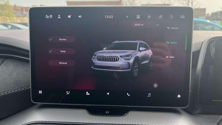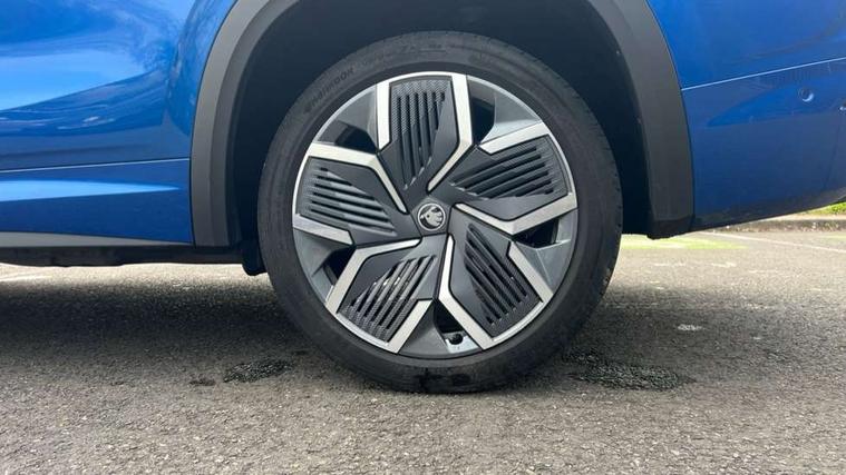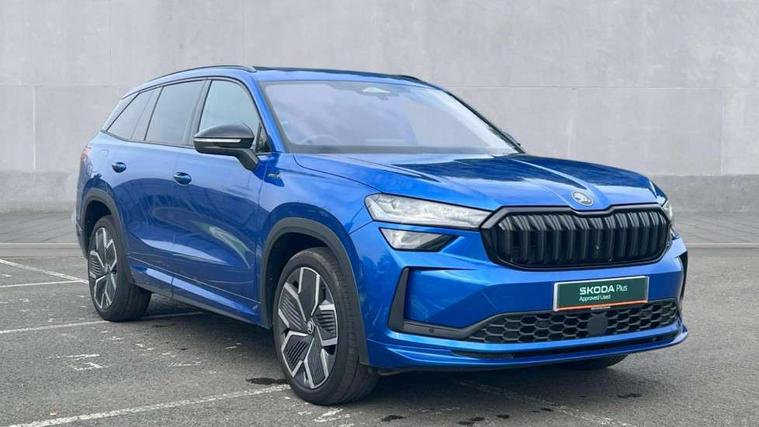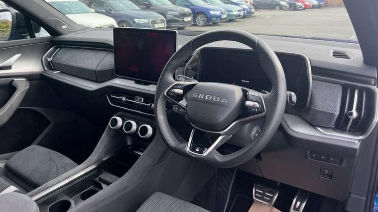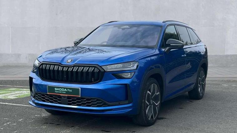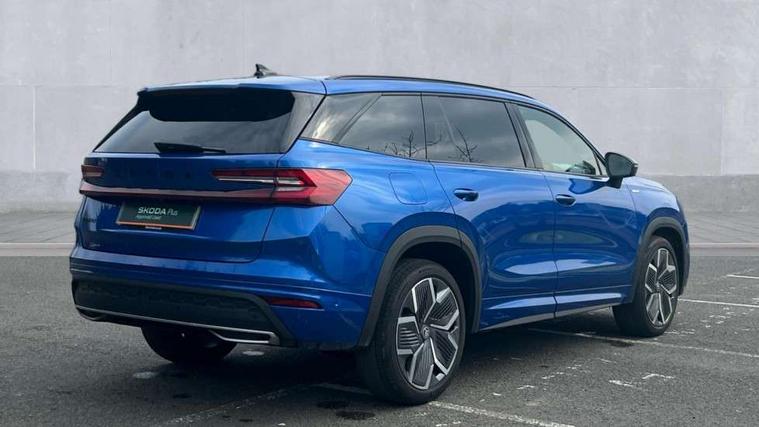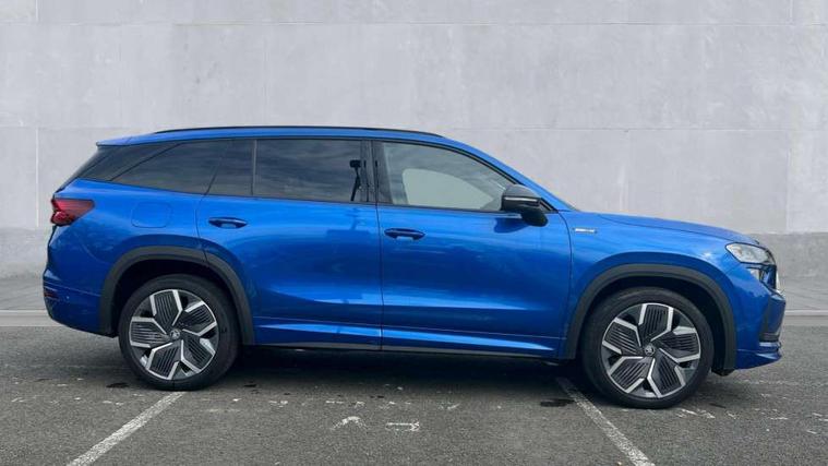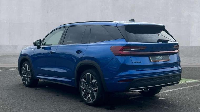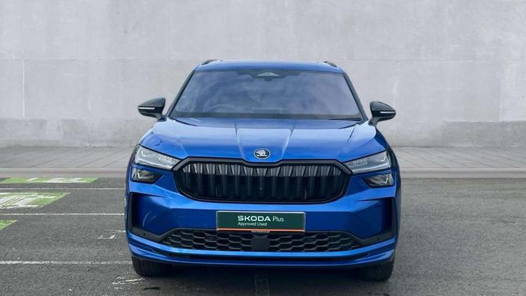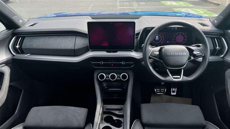 13" satellite navigation touchscreen display, Blind spot detection with door exit warning, Bluetooth system, ChatGPT functionality, Driver alert - Fatigue and drowsiness monitor, Dry display cleaner, Emergency call, Front and rear parking sensors, Front cross traffic assist, Lane assist, PAS, Rear traffic assist, Tailgate unlocking from outside, Traffic sign recognition, USB C Port x 2 in front centre console, Virtual Cockpit - 10.25" digital display, Voice control system, Wireless charging for two smartphones (15W) with cooling function, Wireless SmartLink for Apple CarPlay and Android Auto, Stop/start function, 2x USB-C in the rear, DAB Digital radio, Aero front windscreen wipers with intermittent function, Auto dimming rear view mirror, AWL (all weather lighting) and all weather light with cornering function, Black diffuser and decorative tailpipe with a unique dark chrome finish, Black roof rails, Black sports styling including front grille and window surrounds, Black wheel arch surrounds, Body colour door handles, Cornering light and poor weather light, Electric folding /adjustable/separted heated/folding door mirrors, auto dimming with boarding sports and memory function, Electric front and rear windows, Exterior black decorative trims, Front and rear sports bumpers including lower rear chrome strip, Gloss black door mirrors, Gloss black window frame and D pillar, Heat insulating glass in windshield, Heated rear window, Ice scraper in fuel tank cap, LED daytime running lights, LED third brake light in rear spoiler, Light assistant with automatic headlight control and coming home feature, Logo projection in door mirrors, Privacy glass, Rear roof spoiler, Rear side wing doors, Rear window wiper, Red decorative strip between rear LED lights, Safety reflectors on front and rear doors, Sportline badge on front fenders, Tailgate lettering in Black, Unique dark chrome design logo on alloy wheels, Window control switches with black trim, Windscreen wipers with rain sensor, Without engine designation, 1.5l bottle holder points in all door, 1x centre rear reading light, 2 seat bench in 3rd row, 3 configurable smart dials with 32mm coloured display, 3 seat bench in 2nd row, 4 foldable roof handles with rear coat hooks, Aluminium pedals, Ambient interior lighting - Dashboard, front-door stowage compartments, front and rear door panels and footwell lighting, Automatic gear selector on steering column, Chrome interior door handles, Driver/front passenger reading lights, Fabric headlining, Fixed bench 40:60:40 split folding backrests, Front and rear floor mats, Front centre armrest with jumbo box storage compartment, cup holder and 12V socket, Front sport seats, Height adjustable front headrests, Interior black decorative trims, Isofix child seat fittings in outer middle row rear seats and front passenger with top tether, Manually adjustable steering column, Pollen filter, Rear centre armrest with cupholders, Rear seat boot backrest release, Single front passenger seat, Skoda lettering on steering wheel, Storage pocket including mobile phone pockets on the backs of the front seats, Sunvisors with illuminated vanity mirrors, Three rear height adjustable headrests, Ticket holder on A Pillar, Tri zone climate control, Umbrella in door panel x1 made from sustainable materials, Upper and lower glovebox with card holder and coin compartment, USB C port by rear view mirror for charging only (15W), Acoustic package - Kodiaq, Performance package - Kodiaq, Sportline design selection pack - Kodiaq, Auto door release and activation of warning lights in the event of an accident, Driver and front passenger airbag with knee airbag and front passenger airbag deactivation, Electric child locks, Electronic parking brake, ESC (incl. ABS+EMD+MSR+ASR+EDL+HBA+DSR+RBS+ESBS+MCB+TSA+XDS), Front assist with braking reaction to vehicles, pedestrians and cyclists, Front disc brakes, Fuel cut off safety device, Height adjustable front 3 point seatbelts + pretensioners, Hill hold assist, Junction assist with automatic emergency braking, Rear disc brakes, Safety vest holder in door, Seat belt reminder for all seats, Three point rear seat belts, Two tone horn, Tyre pressure monitor, Alarm with interior monitoring and tilt sensor with safe function, Anti-theft wheel bolts, Immobiliser, Remote central locking with 2 keys, 20" Rila anthacite polished alloy wheel with black matte aero covers,