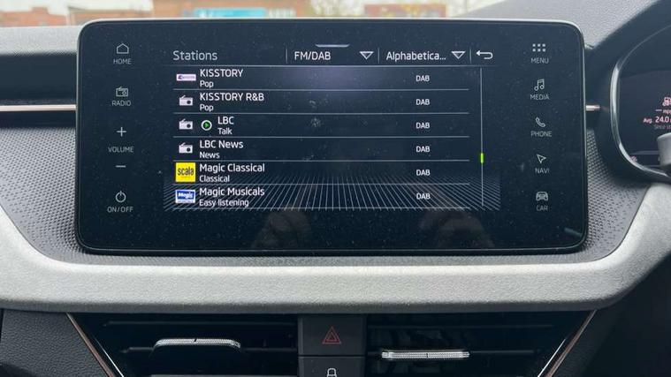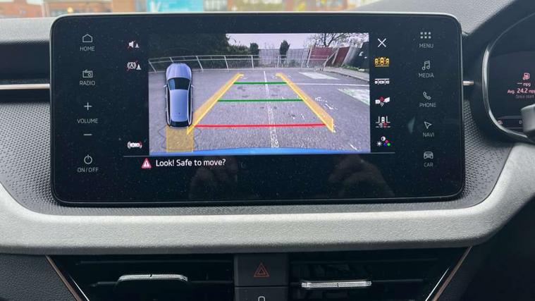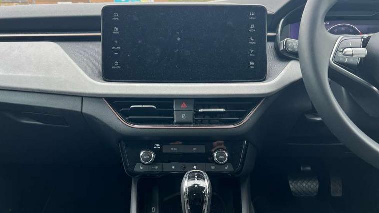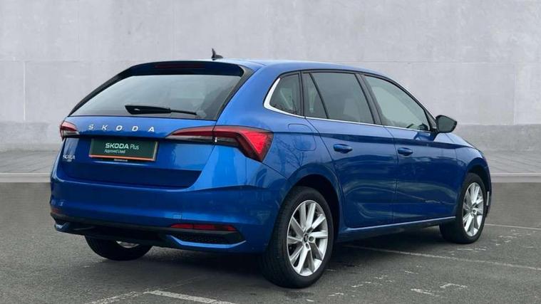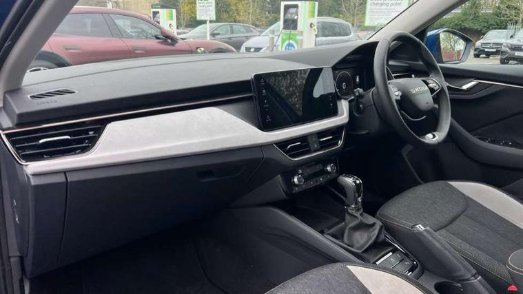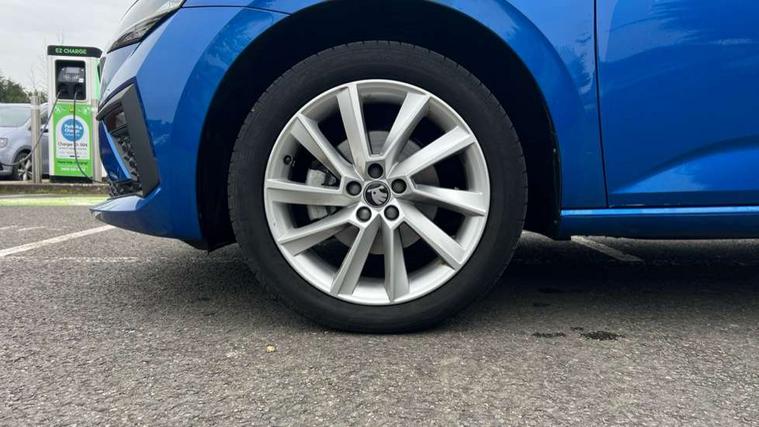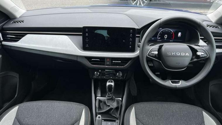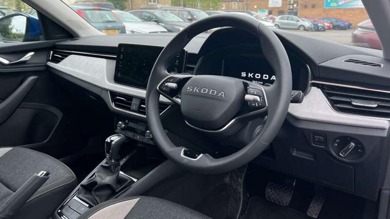 Advanced driver attention and drowsiness monitor, Bluetooth, e-Call (emergency call), Front assist system, PAS, Rear parking sensors, Rear view camera, Speed limiter, Tailgate, Traffic sign recognition, Virtual Cockpit - 10.25" digital display, Voice control system, Wireless smartlink, 4 USB C ports, 8 Speakers, 9.2" Skoda navigation display, DAB radio, Auto dimming rear view mirror, Automatic headlight control with manual coming and leaving home feature, Automatic intermittent wipers, Body colour bumpers, Body colour door mirrors and handles, Chrome moulding around grille, Chrome window frames, Front and rear electric windows, Heated rear window, LED 3rd brake light, LED daytime running lights, LED high beam, LED low beam, Light sensors, Privacy glass, Rear LED fog light, Rear side wing doors, Rear wiper, Tinted windows, Unique dark chrome design logo on alloy wheels, 12V socket in luggage compartment, 3 seat bench in 2nd row, Ambient lighting in white/red, Black / Copper armrest stitching, Cargo elements, Chrome inner door handles, Copper hotstamping, Door inserts in accent black, Driver and passenger sun visors with vanity mirror, Dual zone climate control, Front and rear roof lights, Front centre armrest, Front head restraints, Glasses storage in roof liner, Height adjustable driver seat, Height adjustable passenger seat, Ice scraper, Illuminated glove compartment, Inner circulation control with pollen filter, ISOFIX for front passenger seat, Isofix preparation for back seats, Leather gearknob and handbrake lever, Lodge cloth upholstery, Luggage net under rear parcel shelf, Manual lumbar support for front seats, Net package and top tether hooks in boot space, Pocket on the back of both front seats, incl. mobile phone pockets, Rear centre armrest, Single front passenger seat, Skoda lettering on steering wheel, Textile floor mats, Third rear headrest, Ticket holder, Top tether for front passenger seat, Umbrella in driver's door, Convenience pack without rear camera - Scala, 3x3 point rear seatbelts, ABS, Child locks, Curtain airbags and front side airbags, Disc brakes, Driver and front passenger airbags, ESP, Hill hold control, Manual leather parking brake, One tone horn, Passenger airbag switch off function, Seatbelt reminder for driver and front passenger, Tyre pressure monitoring system, Anti theft alarm system with interior monitoring, backup horn and towing protection, Anti-theft wheel bolts, Remote central locking with 2 remote folding keys, SAFE function for remote central locking, Decorative inserts,
