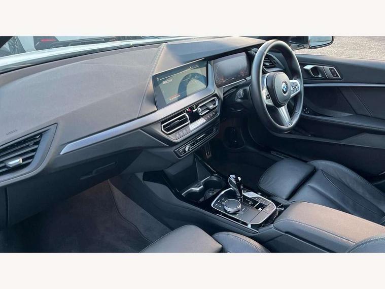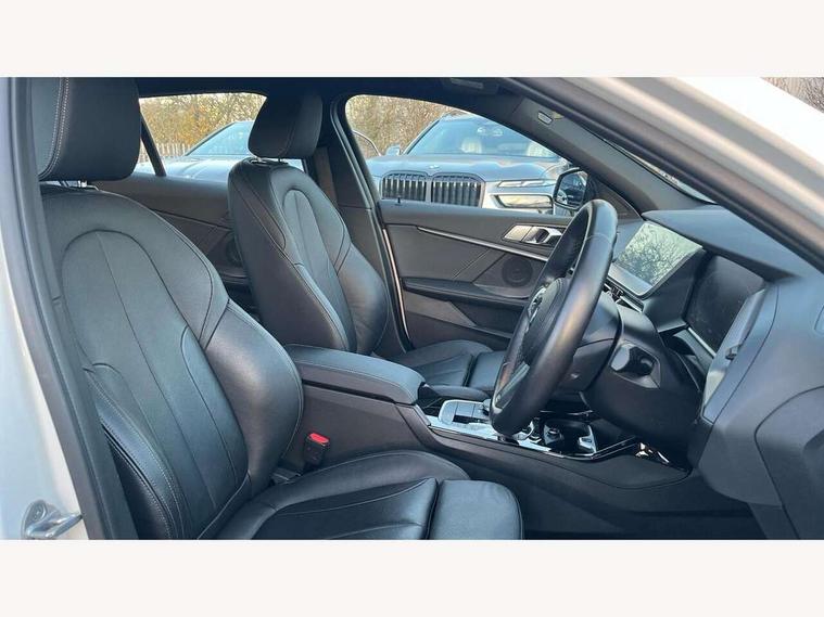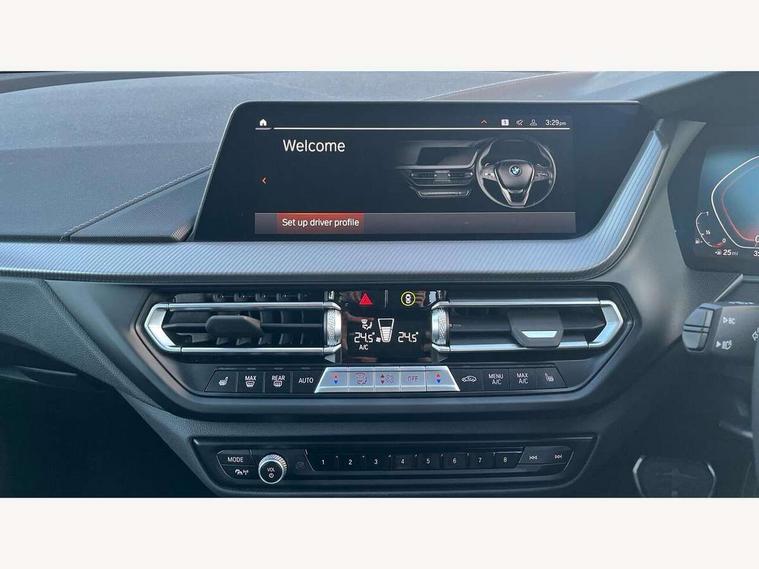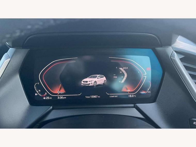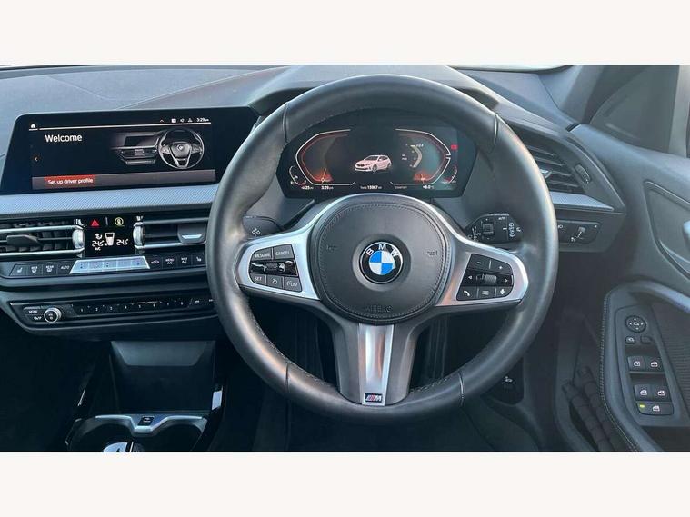 Active guard plus, Attentiveness assist, BMW ConnectedDrive online services, BMW Teleservices, Check Control warning system for monitoring of lights and door/luggage compartment open warning, Cruise control with brake assist, Eco pro mode, Front axle single joint with specific axle kinematics to minimise drive influences on steering + provide increased rigidity agile driving behaviour, Integrated owners handbook, Lane departure warning system, Oil sensor for level and grade, On board computer, Optimum shift indicator, Personal Profile, Pull away assistant, Rigidly mounted rear subframe - Multi link construction with separate spring / damper configuration and excellent driving characteristics, Speed limit Info including no-overtaking indicator, Speed limiter, Aluminium lightweight construction, Anti roll bar front and rear, Balancer shaft, Double VANOS twin scroll turbocharging system, Drive Performance Control, Electronic differential lock, High precision injection, M sport suspension, Petrol Particulate Filter, Twin tube gas filled shock absorbers with degressive characteristic curve, VALVETRONIC engine management, DAB Digital radio, Auto dimming rear view mirror, Automatic headlight beam throw control, Automatic windscreen wipers and automatic headlight, Body colour door handles, Body colour mirror caps, Body colour roof trims, Chrome 'M' logo side designation, Chrome exhaust twin tailpipes round 90mm in left, Chrome kidney grille frame with Satin Aluminium struts, Direction indicator side lights in exterior mirrors, Fading support, Folding side mirrors with auto dimming/folding wing mirrors with auto dimming, Follow me home headlights, Front and rear bumper system with replaceable deformation elements, Front and rear electric windows with open and close fingertip control, anti trap facility and comfort closing, Front door sill finishers in black plastic with M designation in metallic look, Green tinted heat protection glazing, Heated, electrically adjustable exterior mirror aspheric on driver side, convex on passenger side, High gloss shadowline window frame, Recess cover mirror frames and B/C pillar embelisher trim, High level third brake light, Integrated front windscreen with washer jets, LED daytime running lights, LED eyebrow turn indicators, LED front fog lights, LED Headlights, Lightweight engineering, Matt black air guide grilles, Matt black wheel arch trim, Model designation on electric bootlid, Nearside reverse light in rear light cluster, Preparation for high beam assistant, Rear fog lights, Rear side wing doors, Rear window wiper, Shark fin antenna, Trailer stabilisation logic, Visible VIN plate, Welcome lighting, 12V power socket in front centre console with blanking plug, 3 rear seat head restraints, 3 seat bench in 2nd row, 3 spoke sports leather steering wheel with black leather and stitching, pearl chrome decorative finish, specific M Badge, Anthracite headlining, Black boot net with lashing eyes, Cargo function on 2nd seat row, Child seat ISOFIX attachment for two outer rear seats and front passenger seat with anchorage points, Conditioned based service, Driver and front passenger seat heating, Folding rear clothes hook, Four grab handles integrated in roof lining, Front and rear door pockets with bottle holders, Front and rear side armrest integrated into door trim, Front armrest, Front sports seats, Glove compartment, Height adjustable front head restraints, Luggage compartment for bag hooks on left and right, foldable luggage compartment liner and four lashing eyelets, Manual adjust steering wheel, Multi-function controls for steering wheel, Single front passenger seat, Storage compartment in centre console, Sun visors with vanity mirrors and insert tab, Two front centre console cupholders, Two zone automatic air conditioning, Velour floor mats, Additional interior lighting pack - 1 Series, BMW live cockpit professional pack- 1 Series, Connected pack professional - 1 Series, Interior lights pack - 1 Series, M Sport exterior styling aerodynamics pack - 1 Series, 2 tone horn, 3 point seatbelts on all seats, front pyrotechnic belt tensioners, stopper and belt force limiters, rear coded belt buckles, Airbags - Front driver/passenger, front and rear curtain head protection, front side, manual deactivation of front passenger airbag, Anti lock braking system (ABS) with brake assist, BMW emergency call, Brake drying, Braking readiness, Child proof locking system in rear door, City braking function, Comfort modes, Cornering brake control, Crash sensor activating central locking release, hazard warning lights, fuel cut off, interior lighting + activation of safety battery terminal clamp, Driver and front passenger seat belt security check, Dynamic stability control + (DSC+), Dynamic Traction Control - DTC, Electrically operated hand brake including automatic hold function, Front and rear disc brakes, Seatbelt warning, Side impact protection, Tyre pressure monitoring system, Warning triangle and first aid kit, Central locking switch for all doors, fuel filler cap and luggage compartment, Deadlocking function system to all doors, Drive away locking system on all doors and luggage compartment with de-activated in iDrive settings, Locking wheel bolts, Remote control with integrated key with High-gloss Black inlay and M designation and 1 button for open/ close lock, window, open luggage compartment, Start/stop button illuminated in centre console with keyless engine start and auto start stop deactivation button, Thatcham Cat.1 alarm and immobiliser, Wheel slip limitation close to the actuator (ARB), Contrast stitching on instrument panel, Electrically powered 12V compressor, Reduced rolling resistance tyres,