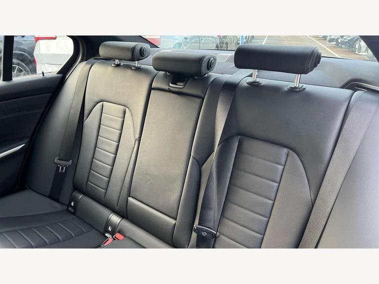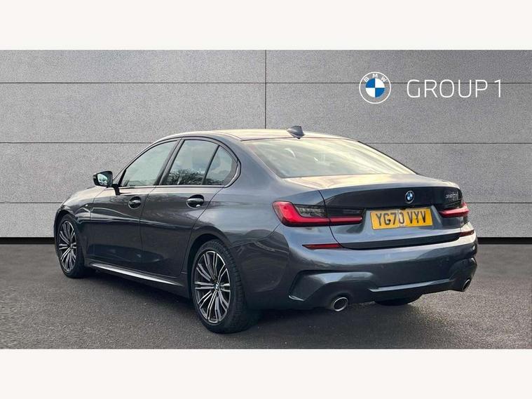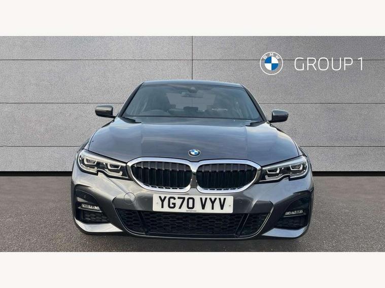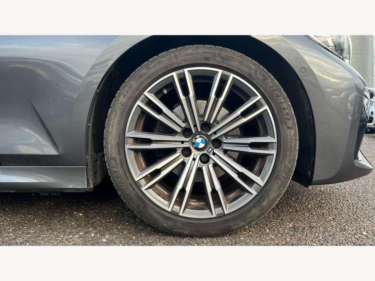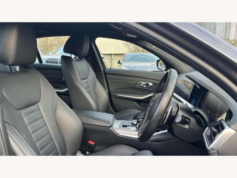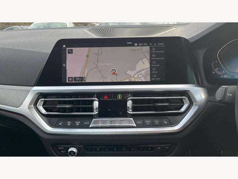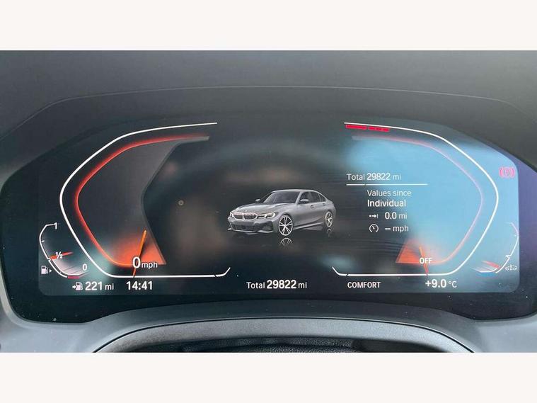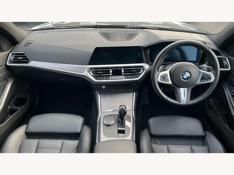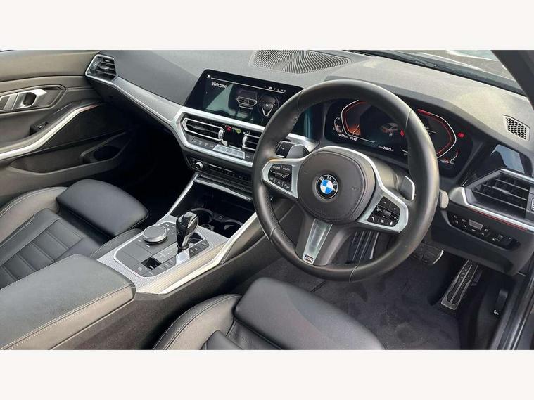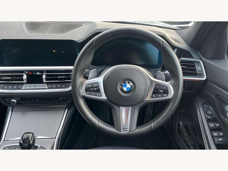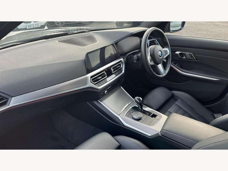 Active guard plus, Attentiveness assist, Auto start-stop, BMW iDrive controller on centre console, BMW Live Cockpit Professional Nav with 12.3" instrument display + 10.25" display, Intelligent Voice Assist, BMW OS 7, HDD, 2USB, 4G LTE connect, BMW service history, BMW Teleservices, Brake pad wear indicator in front and rear, Check Control warning system for monitoring of lights and door/luggage compartment open warning, Condition based service, Electric power steering with Servotronic steering optimised at all speed ranges, Instrument cluster with speedometer with mph readout, tachometer, fuel gauge and oil temperature gauge, Integrated owners handbook, Oil sensor for level and grade, warning by check control system, On board computer - average speed+fuel consumption, service interval, clock/date, odometer/trip meter, outside temperature display and ice warning, Optimum shift indicator, Personal Profile - automatic lock when driving away selectable, Variable sport steering, Balanced 50/50 weight distribution, Battery cut-out switch, Drive performance control - ECO PRO, comfort and sport modes, Larger capacity fuel tank, M sport suspension, Petrol Particulate Filter, Sport automatic transmission with steering-wheel mounted gearshift paddles and launch control, Stroke dependent dampers, DAB tuner, Electronic service booklet, Acoustic glazing, Automatic headlight beam throw control with load dependent regulating reaction, dynamic compensation of braking dive and acceleration squat, Black roof mouldings, Body colour door handles, Body colour fuel filler flap, Body colour mirror caps, Dynamic brake lights, Electric windows - front and rear, with open/close fingertip control, anti-trap facility and comfort closing, Exhaust tailpipe - split left and right, Exterior mirrors - electrically folding with anti-dazzle, Fading support, Front and rear bumper system with replaceable deformation elements, Front black door sill finishers with BMW designation, Green tinted heat protection glazing, High gloss shadow line exterior trim, Interior rear view electrochromatic mirror with automatic anti dazzle function, LED daytime running lights, LED front fog lights, Lightweight engineering, M designation on front side panels, left and right, Matt black exterior B pillar, Model designation on right side of tailgate, Rain sensor with automatic headlight activation, Shark fin antenna, Two part LED tailights in L-shape with components in smoked glass, brake light, LED turn indicator and rear fog light, Visible VIN plate, Welcome lights in interior and door handle area, Windscreen wipers with integrated washing jets, 12V power socket in front storage compartment, 2 front cupholder in centre console with clamping elements and matt black inlay, 3 rear seats with non folding headrests with 3 point seat belts, 3 zone automatic air conditioning, 4 pieces lashing eyelets in luggage compartment, 40:20:40 split folding rear seat with loading system, Ambient lighting with welcome carpet light, Anthracite headlining, Armrest integrated in front and rear door trim + front centre console armrest, Centred top Luggage compartment lights, Four grab handles integrated in roof lining, Front and rear door exit lighting (left / right), Front and rear door pockets, Front and rear reading lights, Front and rear velour floor mats, Front head restraints, Front sport seats, Heated driver and front passenger seats, Height adjustable mechanically and infinitely variable steering column, Illuminated armrest storage compartment, Illuminated glove compartment with separate small compartment, Interior lighting - front centre over interior mirror with soft light, rear centre and front and rear footwell lighting, M Sport multifunction leather steering wheel, Make-up mirror lights, Rear centre armrest with 2 cupholders, Rear centre console with storage compartment and ventilation grille, Sunvisors with vanity mirrors and ticket pocket, Toolkit located in luggage compartment, Connected pack professional - 3 Series Saloon/Touring, M Aerodynamics pack - 3 Series Saloon/Touring, 2 tone horn, BMW emergency call, Brake energy regeneration, Braking pre-tensioning, Child proof locking system in rear door, Child seat ISOFIX attachment rear outer seats, Coasting in idle in ECO PRO mode, Crash sensor activating of airbags, Unlocking doors, hazard warning lights, interior light, safety battery terminal, Driver and front passenger side airbags, integrated in the door side seat backrest bolsters for all seat variants, Driver/Front Passenger airbags, Dry braking, Dynamic brake control, Dynamic stability control + (DSC+) - Anti-lock Braking System (ABS) with brake assist and cornering brake control + Automatic Stability Control (ASC), Dynamic Traction Control - DTC, Electric parking brake including automatic hold function and automatic release of the parking brake when driving off, Electronic differential lock control (EDLC), Front passenger manual airbag deactivation, Head airbags for all 4 outer seats, Hill start assist, Seat belt security check for driver and front passenger, Side impact protection, Three 3 point seat belts on all seats including front belt stopper, pyrotechnic belt tensioners and belt force limiters, Tyre pressure monitoring with three level warning strategy, Ventilated front and rear disc brakes, Warning triangle and first aid kit, Alarm system (Thatcham 1) with remote control and electronic engine immobiliser, Central locking switch for all doors, fuel filler cap and luggage compartment, Remote control with integrated key one button open/close vehicle and windows, sole opening of the luggage compartment lid and panic mode, Start/stop button with Comfort Go keyless engine start and auto Start/stop deactivation button, Vehicle key with M specific designation, Reduced rolling resistance tyres,