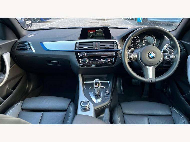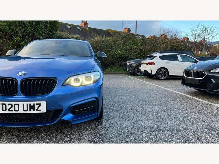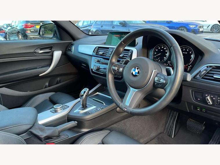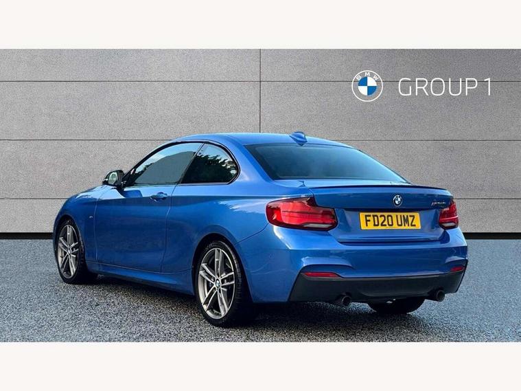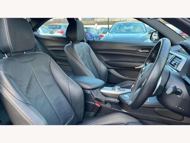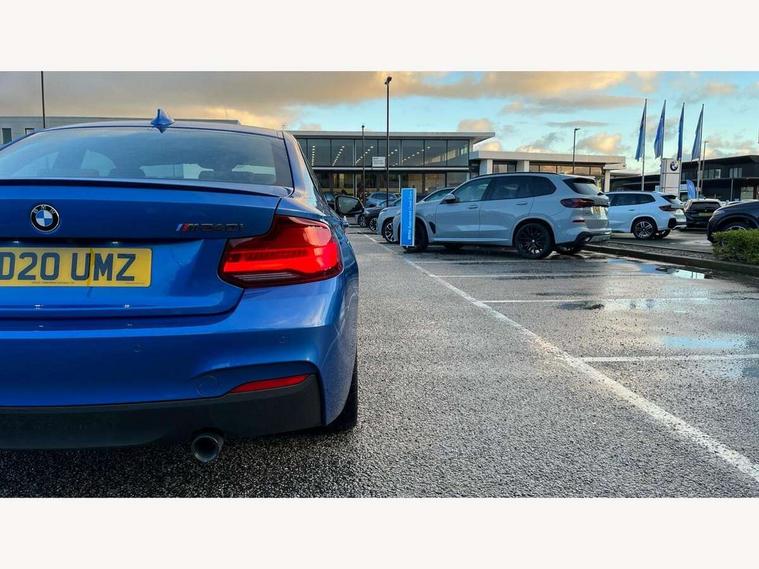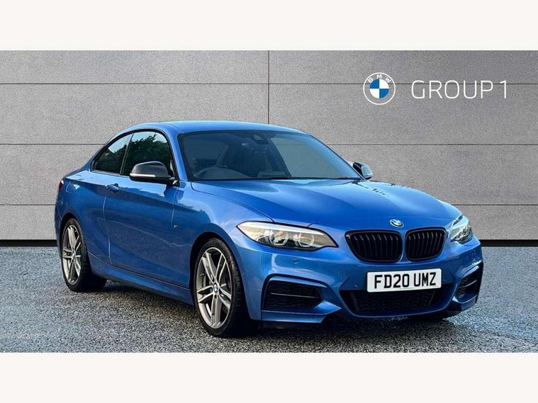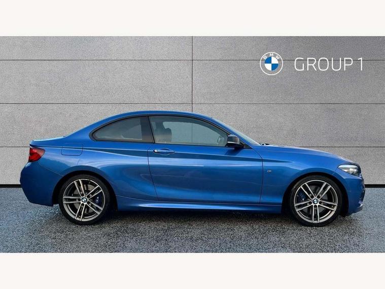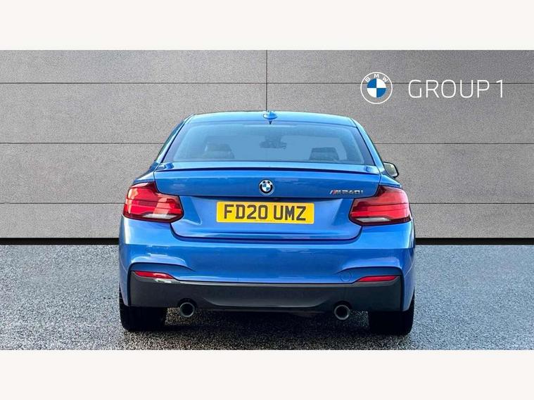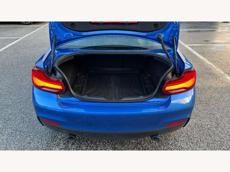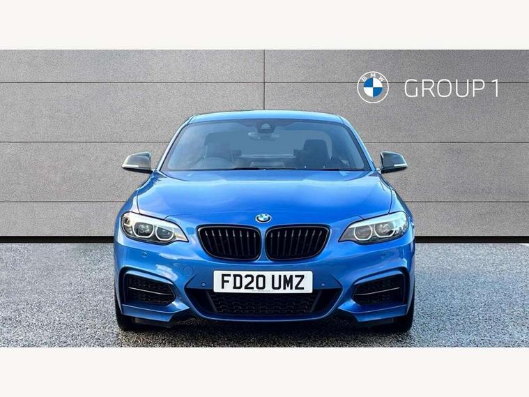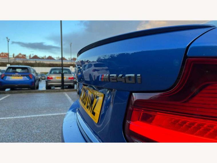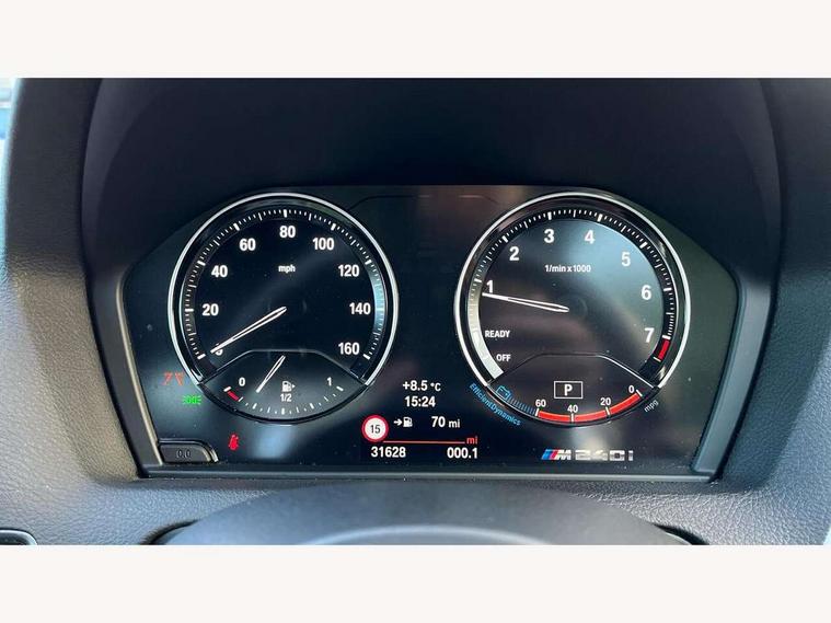 Auto start-stop, BMW Online services, BMW remote services, BMW Teleservices, Door/boot open warning, Front and rear Brake pad wear indicator, Instrument cluster with speedometer with miles per hour read out, tachometer and fuel gauge, Lights on warning by audio warning signal when ignition is switched off, Oil temperature display via on board computer in instrument cluster, On board computer - average speed+fuel consumption, service interval, clock/date, odometer/trip meter, outside temperature display and ice warning, Optimum shift indicator, Personal Profile - automatic lock when driving away selectable, Real time traffic information, Speed limiting function, Traffic message channel (TMC), Variable sport steering, Battery age recognition function, Drive performance control - ECO PRO, comfort, sport and sport+ modes, Engine cover with BMW roundel twin power turbo designation, Oil dipstick, Sport automatic transmission with steering-wheel mounted gearshift paddles and launch control, DAB Digital radio, 2 speed adjustable intermittent wipers with wash/wipe function, Automatic headlight beam throw control, Automatically dimming rear view mirror, Body colour door handles, Body colour front bumper, Body colour roof mouldings, Cerium grey air blades, Clear lenses direction indicator lights, Dark chrome M logo designation on left and right front wings, Darkened rear lights with LED light bars, Daytime driving lights, Direction indicator side lights integrated exterior mirrors, Door sill finishers with M240i designation, Dynamic brake lights, Electric windows - front and rear, with open/close fingertip control, anti-trap facility and comfort closing, Exterior mirrors - electrically folding with anti-dazzle, Follow me home headlights, Front air inlet with high gloss black finish, Front and rear bumper system with replaceable deformation elements, Green tinted heat protection glazing, Headlight range control, Heated windscreen washer jets, Heated, electrically adjustable exterior mirror aspheric on driver side, convex on passenger side, High gloss black mirror caps, High gloss shadow line, High level third brake light, LED welcome home lights, Lightweight engineering, M aerodynamic body styling with airblades in Cerium grey, M rear spoiler, Model designation, Rain sensor with automatic headlight activation, Rear bumper with high gloss black finish, Rear fog lights, Rear window aerial, Reversing light in rear light cluster, Shark fin roof aerial, Twin dark chrome exhaust tailpipes, round and split, Visible VIN plate, 12V power socket in centre console, 12V power socket in passenger footwell, 3 spoke nappa leather steering wheel, Anthracite headlining, Automatic two zone climate control air conditioning, Conditioned based service, Dakota leather upholstery, Driver and front passenger seat heating, Front and rear side armrests integrated into door trim, Front door storage bins, Front floor mats in velour, Front head restraints, Front sliding armrest, Front sports seats with electric side bolster adjustment, Glove box handle with chrome surround, Interior lighting, front centre over interior mirror and rear centre automatic interior light activation when door is opened, Isofix child seat for two outer rear seats, Leather gearknob, Leather handbrake lever, Luggage compartment access via BMW roundel, Manually adjustment steering wheel column, Multi-function controls for steering wheel, Rear coat hooks, Rear folding head restraints, Storage compartment in rear centre console, Two cupholders with sliding cover and inlay mat, Extended lighting pack - 2 Series, Extended storage pack - 2 Series, 2 rear 3 point safety belts, Active differential brake (ADB), electronic differential lock in DSC-OFF mode, Airbag - Front driver and passenger, front and rear head, front side, curtain head protection, manual deactivation of front passenger airbag possible, Anti lock braking system (ABS) with brake assist, Automatic Stability Control (ASC), BMW emergency call, Brake drying, Brake energy regeneration, Braking readiness, Cornering brake control (CBC), Crash sensor activating central locking release with hazard warning lights and interior lighting + battery safety cut-off, Dynamic brake control, Dynamic stability control + (DSC+), Dynamic Traction Control - DTC, Front pyrotechnic belt tensioners and belt force limiter, rear coaded belt buckles, Hill start assist, M Sport braking system, Rear brake discs, Seat belt security check for driver and front passenger, Side impact protection, Twin horns, Tyre pressure monitoring with 3 level warning strategy, Ventilated front disc brakes, Warning triangle and first aid kit, Central locking switch for all doors, fuel filler cap and luggage compartment, Check control system for monitoring of lights and door/luggage compartment open warning, Locking wheel bolts, Remote control including integrated key with blue insert, Start/stop button with Comfort Go keyless engine start and auto Start/stop deactivation button, Thatcham category 1 alarm + immobiliser, Reduced rolling resistance tyres,