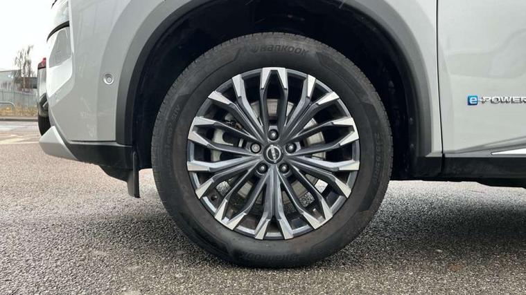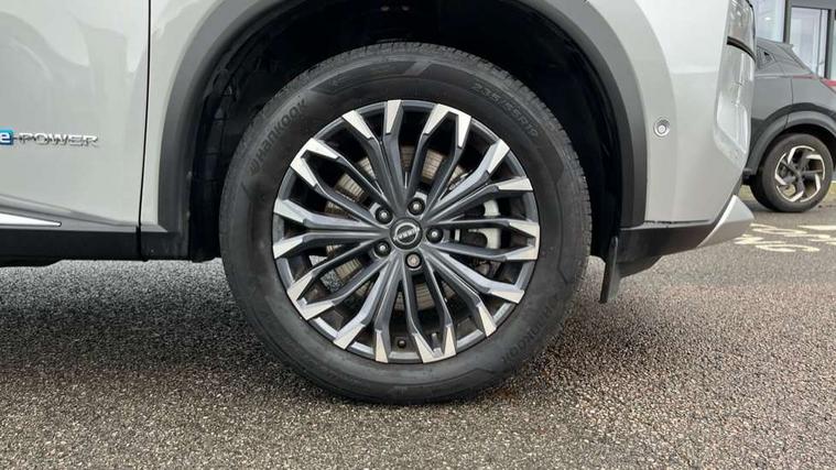 Advanced 10.8" head up display, Android auto wireless, Blind spot warning, Drive assist custom mode, Drive modes (sport, normal, eco), Driver drowsiness and attention warning, e-Pedal step, Electric speed sensitive power steering, Emergency and breakdown call, Event data recorder, Front and rear parking sensors, Full Digital 12.3" TFT Digital Combimeter, Google maps services - search, weather, 3D maps and Google street view, Hands free power tailgate, Idle stop/start system, Intelligent around view monitor, Intelligent Cruise control (ICC), Intelligent driver alert system, Intelligent forward collision warning, Intelligent lane departure warning, Intelligent lane intervention, Intelligent lane keep assist, Lane departure prevention, Maximum speed limiter, Moving object detection, Nissan connect 12.3 inch touchscreen infotainment system, Nissan connect nav with TomTom traffic, Propilot assist with Navi-Link, ProPilot park, Push button starter, Rear cross traffic alert, Rear view camera, Remote control services - door locks, lights, horn and car locator, Reversing detection, Telematics - notifications and connectivity services, Traffic jam pilot, Traffic sign recognition with legal speed adjustment, Trip computer, Virtual personal assistant and firmware over the air capability, Wireless apple carplay, Wireless charging pad, 6 speakers, AM/FM audio system with DAB, Bluetooth audio streaming, Front USB connections (Type-A and Type-C), Rear USB charging only ports 2 Type-C, Auto rear wiper when reversing, Body colour mirror caps, Body coloured door handles, Bodyside mouldings, Chrome side window finisher, e-POWER badging, Electric auto folding door mirrors, Electric sunroof/sunshade, Electrically adjustable and heated door mirrors, Follow me home headlights, High beam assist, Intelligent auto headlights, LED 3rd brake light, LED daytime running lights, LED front fog lights, LED headlights with adaptive driving beam, LED rear lights, One touch front and rear electric windows with remote opening and closing, Partially body coloured bumpers, Rain sensing wipers, Rear privacy glass, Rear reversing light (bulb lighting), Rear roof spoiler, Rear side wing doors, Rear styling plate, Roof rails, Shark fin antenna, Smart rear view mirror with auto dimming, Splash free wipers, Super UV and infrared cut glass, Thermaclear heated windscreen, Three blink turn signal, 12v power socket in dashboard and luggage, 3 bench rear seats in 2nd row, 3 rear headrests, 40/20/40 folding rear seats with recline, Butteryfly console, Chrome interior door handles, Driver and front passenger sunvisors with illuminated vanity mirrors, Driver seat back pocket, Electric adjustable 2 way lumbar support for driver, Electric adjustable 2 way lumbar support for passenger seat, Electric adjustable driver and passenger seat with memory function, Fore/Aft adjustable rear seats, Front and rear heated seats, Front centre console and armrest, Front cupholders, Front door with bottle holders, Heated steering wheel, Height adjustable driver's seat, Height adjustable front headrests, Height adjustable passenger seat, Leather shift knob, Leather steering wheel, Luggage board system, Luggage space lighting, Multifunction steering wheel, Passenger seat back pocket, Rear armrest with 2 cupholders, Rear door bottle holders, Single front passenger seat, Sliding second row seats, Steering column mounted gear shift paddles, Synthetic leather monoform upholstery, Tilt/telescopic adjustable steering wheel, Tri zone automatic climate control with pollen filter, Two rear isofix child seat anchorage points with top tether, Sky pack - X-Trail, 3x3 point rear seatbelt pretensioners + load limiters, ABS with EBD and brake assist, Active brake limited slip, Auto hold function, Child locks on rear doors, Curtain and front side, far side airbags, Driver and passenger airbags, Driver, passenger and 2nd row rear seat belt reminder, Electronic parking brake, Front seatbelt pretensioners + load limiters, Height adjustable front seatbelts, Hill start assist, Intelligent blind spot intervention, Intelligent front emergency braking with pedestrian, cyclist recognition and junction assist, Intelligent rear automatic braking, Tyre pressure monitoring system, Vehicle dynamic control, Approach unlock and walk away lock, Engine immobiliser, Intelligent Key, Remote central door locking with deadlocking, Thatcham Cat.1 alarm, 19" Diamond cut alloy wheels, Tyre puncture repair kit,