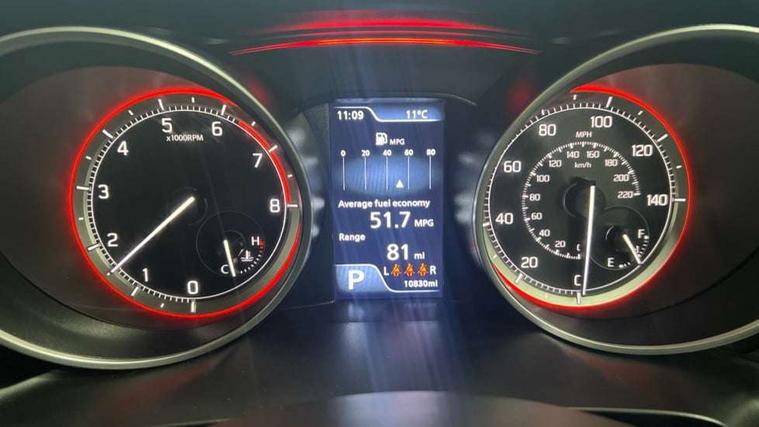 Adaptive cruise control, Automatic start/stop system, Blind spot monitoring, Colour LCD information display, Fuel consumption screen, Gear position indicator, Lane departure warning system, Lights on warning, Low fuel level warning light, Navigation system, Outside temperature display, PAS, Rear cross traffic alert, Rear parking camera, Rear parking sensors, Remote fuel cap release, Smartphone integration with Apple CarPlay and Android auto, Speed limiter, Tachometer, Tailgate, Traffic sign recognition, Trip computer, Weaving alert, 4 speakers + 2 tweeters, Auxiliary input socket, Bluetooth audio streaming, DAB Digital radio, Steering wheel audio controls, USB interface, 'Guide me home' headlamps, 2 speed wipers+intermittent wipe, Automatic headlights, Black coloured A & B pillars, Black front grille chrome, Body colour door handles, Body coloured bumpers, Door mirrors with built-in turn signal lamp, Electric door mirrors, Electric folding door mirrors, Electric front windows, Electric rear windows, Front fog lights, Green tinted glass, Headlamp levelling, Heated door mirrors, High beam assist, High mounted stop lamp, LED daytime running lights, LED number plate light, LED position lamps, LED projector headlamps with DRL, LED rear combination lamp, Rear fog lights, Rear privacy glass, Rear wiper, 12V Accessory socket in front console, 2 Isofix seat anchors, 3 cupholders, 3 spoke leather covered steering wheel, 60/40 split rear seats, Accessory socket, Automatic air conditioning, Centre console storage, Centre lower box, Chrome handbrake release button, Chrome interior door handles, Cloth seat trim, CVT shift lock, Door pockets with bottle holder, Driver/passenger sunvisors with ticket holders + vanity mirrors, Front head restraints, Front map light, Front passenger side assist grip, Gearshift paddles, Glovebox, Heater, Height adjustable driver's seat, Luggage area lamp, Passenger seat back pocket, Pollen filter, Rear assist grips, Rear headrests, Tilt/telescopic adjustable steering wheel, Top tether anchor plate for isofix child seat, 3 point ELR seatbelts for centre seat, 3 point ELR seatbelts front and rear, ABS+EBD+Brake assist, Curtain airbags, Driver airbag, Dual sensor brake support, ESP + traction control, Foot protecting brake and clutch pedals, Front and rear seatbelt reminder, Front passenger airbag deactivation, Front seatbelt pretensioners with force limiters, Height adjustable front seatbelts, Hill hold control, Passenger airbag, Rear child proof door locks, Rear seatbelts with pre-tensioners and load limiters, Side airbags, Side impact protection beams, Tyre pressure indicator, Alarm, Deadlocks, Freewheeling key cylinders, Immobiliser, Keyless entry and start, Light - on and Key in reminder, Locking wheel nuts, Remote central locking, Silver instrument panel and interior door trim, 16" Polished alloy wheels, Tyre repair kit,