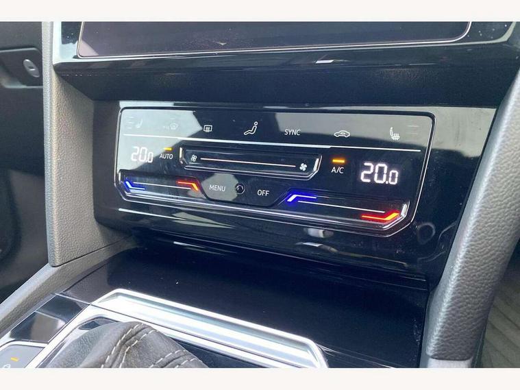 Adaptive cruise control (ACC) with speed limiter, front assist (reacting vehicles pedestrian and cyclists) and follow to stop, App connect including wireless Apple CarPlay, Camera for warning system, Digital cockpit with 10.25" high resolution TFT display screen with customisable menus and information, Driver alert system with fatigue detection, Driver profile selection including ECO function, Dynamic road sign display, eCall - Emergency call service for SOS calls to emergency response, Hands free boot opening, Press and drive key, Progressive steering, Speedo and rev counter, electronic odometer, trip, service interval display and exterior temperature gauge, Travel assist - Lane keeping assist and traffic jam assist, Voice activation for telephone and navigation, Start/stop function with battery regeneration, Premium USB cable in choice of either Apple or Android smartphone compatibility, Auto dimming interior rear view mirror, Body colour door handles, Body colour side skirt, Body coloured top and matt black lower door mirrors with integrated indicators, Chrome plated radiator grille inserts and light switch surrounds, Chrome side window surrounds, Dynamic headlight range control, Electric folding door mirror, adjustable, heated with front passenger exterior mirror lowering function, Front and rear electric windows, Front and rear stainless steel door sill protection, Front windscreen washers and wipers with 4x interval delay, Heat insulating side and rear windows, Heated rear windscreen, Heated windscreen washer jets, High level 3rd brake light, LED rear combination lamp with dynamic indicators, LED rear number plate lights, Left and right chrome effect trapezoid dummy exhaust tailpipe surrounds, Panoramic sunroof with tilting and sliding including integrated roller blind, R Line design body coloured bumpers, Rain sensor, Rear fog lamp on one side and reversing lamp on both sides, Rear windscreen washer and wiper with interval delay, 12V socket in front centre console, 12V socket on rear of front centre armrest, 3 rear head restraints, 30 colours options interior ambient lighting, 60:40 split folding rear seat backrests with centre armrest, Air care climatronic 3 Zone electronic air conditioning with automatic air recirculation, Black roof lining, Chrome trim on upper and lower air vents extending across cockpit, Driver and front passenger sunvisor with vanity mirror, Front + rear carpet mats, Front cupholders x 2, Front footwell illumination, Front sports comfort seats, Glovebox, Heated front seats, Height/reach adjust steering wheel, Isofix child seat preparation easy fit for two outer rear seats, Luggage compartment lighting, Removable luggage compartment cover, Split folding front seat backrest with front centre armrest, Stainless steel pedals, Two LED front reading light, 3 rear three point seatbelts, ABS+EBD+Brake assist, Driver airbag and front passenger airbags with deactivation switch including driver knee airbags, Electronic parking brake, Electronic stability control (ESC) and Electromechanical brake booster, Front disc brakes, Front side airbags with curtain airbags, Hill start assist, Pro active occupant protection to detect critical situations with elevated accident potential from the front, Rear disc brakes, Three point height adjust front seatbelts + pretensioners, Two tone horn, Tyre pressure loss indicator, Warning buzzer for seatbelts if unfastened, Warning triangle, Alarm with interior protection with deactivation via infotainment system, Electronic engine immobiliser, Keyless entry system including start/stop button on centre console, Aluminium decorative inserts, Chrome trim on lower doors in front and rear, Leatherette insert on door and side trim panel in foam film, Piano black decorative inserts in centre console,