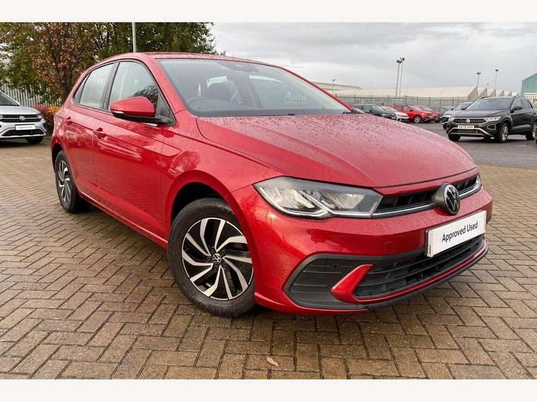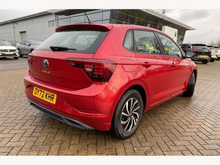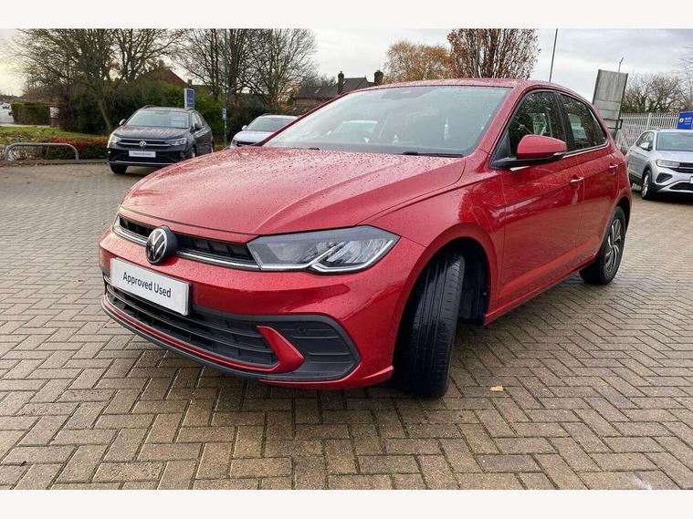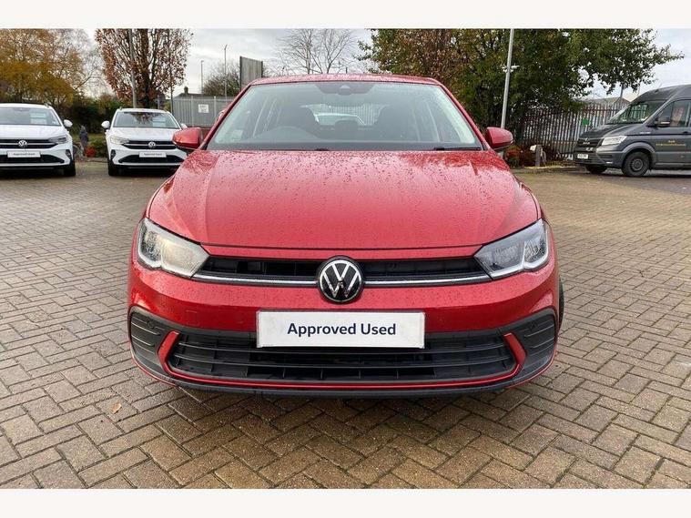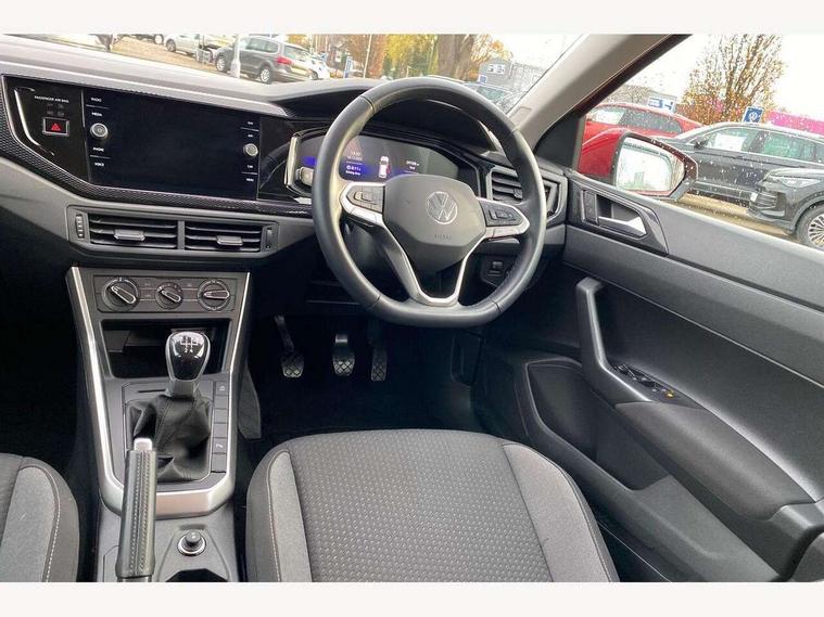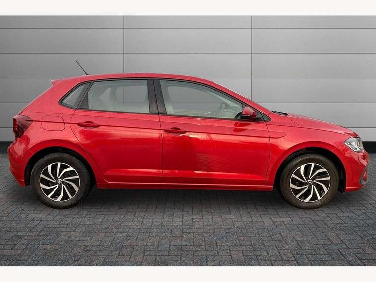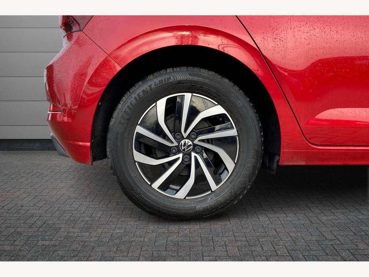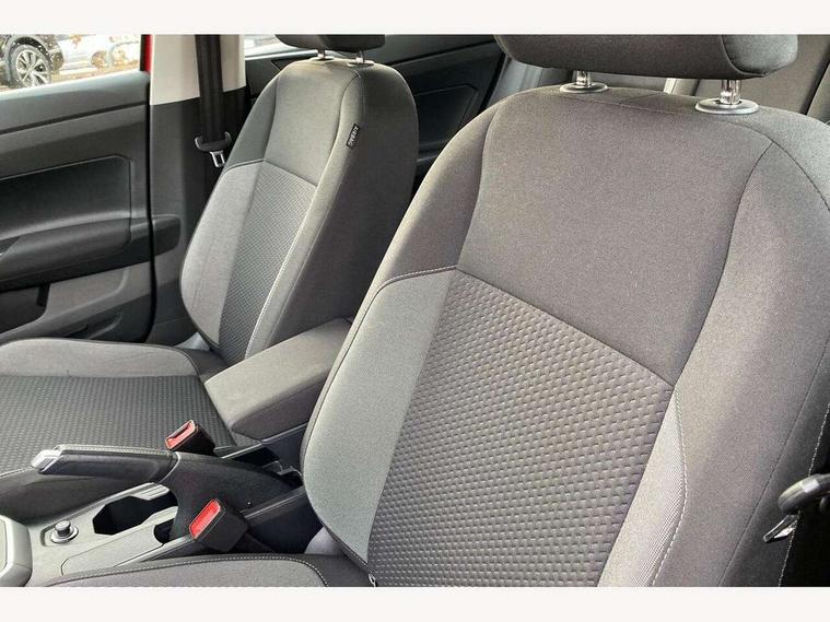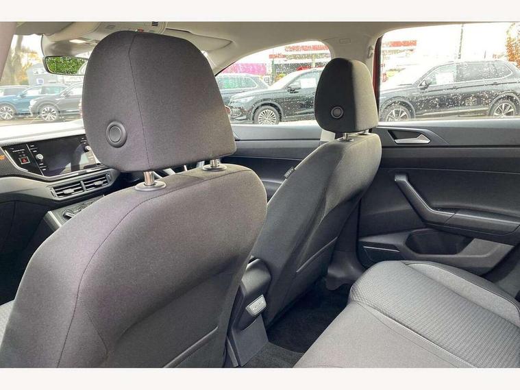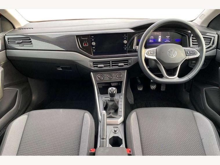 Adaptive cruise control without follow-to-stop and speed limiter, Bluetooth mobile phone interface, Driver alert system, Emergency call service, Front assist system, Power assisted speed sensitive steering, Preparation for We connect and We connect plus, Speedo and rev counter, electronic odometer, trip, service interval display and fuel gauge, Standard rear axle, Travel Assist - Lane keeping system and traffic jam assist, Travel assist including emergency assist, Trip computer, Warning signal and warning light for front and rear seatbelts not fastened, Washer fluid level indicator, Wireless app connect, Front wheel drive, Rear shock absorpion, Start-stop system with battery regeneration (recuperation - energy recovery during braking), DAB Digital radio, Diversity antenna for FM reception, Front and rear 6 speakers, Automatic dimming interior rear view mirror, Body colour bumpers, Body colour door handles, Body colour door mirrors, Electric front windows, Heat insulating darkened glass in side and rear windows, Heat insulating glass windscreen, Power folding adjustable/heated exterior mirrors and front passenger exterior mirror lowering function, Rain sensor, Rear electric windows, Rear fog light, Rear side wing doors, Rear windscreen washer and wiper with interval delay, Third brake light, 12V power socket in centre console, 2 front and 2 rear reading lights, 2 USB-C ports in the front, 2 USB-C charging sockets on the center console in the rear, 3 rear head restraints, 60/40 split folding rear seat and rear seat bench not split, Ceramique headliner, Chrome plated radiator grille inserts, air vent surrounds and light switch surrounds, Door and side trim panel, Driver and front passenger seat height adjustment, Driver/passenger sunvisors with illuminated vanity mirrors, Front centre armrest, Front seat backrest storage pockets, Front standard seats, Handbrake lever handle in leather, Hartley/Thomas cloth upholstery, Isofix child seat preparation easy-fit (for two outer rear seats, and front passenger seat) compatible with I-size, Leather trimmed gear knob, Luggage compartment cover, Luggage compartment floor, Luggage compartment lighting, Multifunction steering wheel, Single front passenger seat, Standard pedal cluster, Light and vision pack - Polo, 3 point height adj front seatbelts + pretensioners, 3x3 point rear seatbelts, ABS, Driver and front passenger airbag with front passenger airbag deactivation, Drivers and front passengers safety optimised head restraints, ESC (Electronic stability control) + EDL (Electronic Differntial lock) and ASR (Traction control), Extended and predictive pedestrian/ cyclist protection, Front curtain and side airbags with center airbag, Front disc brakes, Hill hold control, Manual child lock in rear doors, Rear drum brakes, Single tone horn, Tyre pressure loss indicator, Alarm with interior protection, Anti-theft alarm system with interior monitoring, backup horn, and towing protection, Anti-theft wheel bolts, Electronic engine immobiliser, Lava stone black gloss/matt decorative inserts in dash and front door panels, Low rolling resistance tyres,