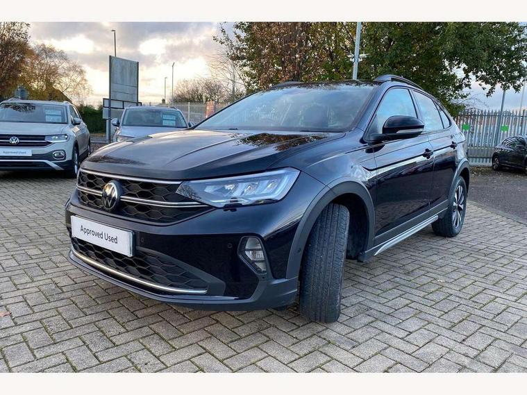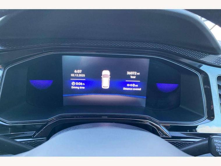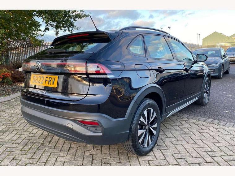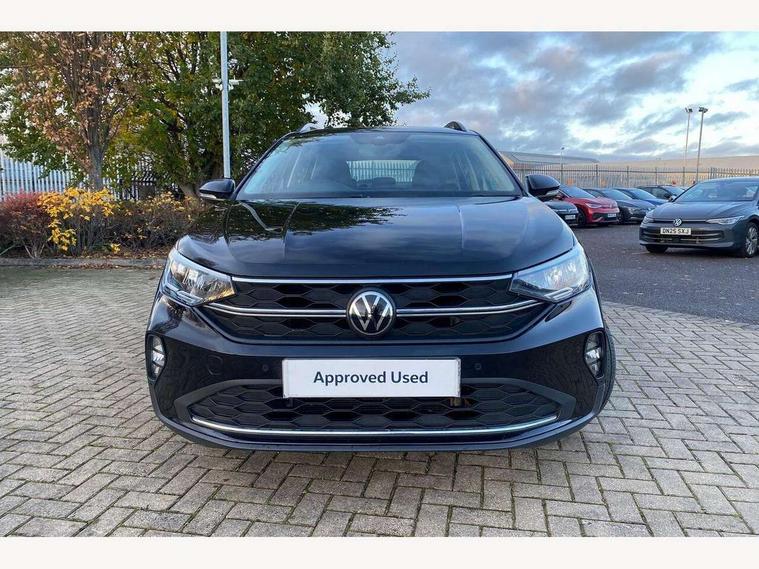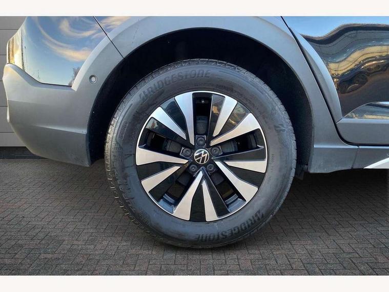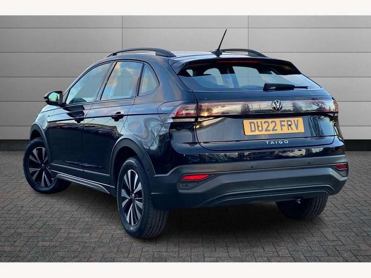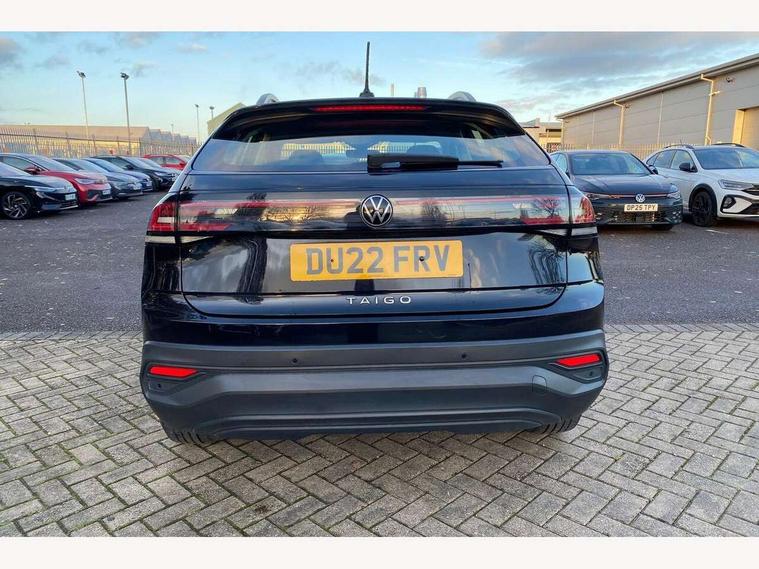 App-Connect including App-Connect Wireless, Driver alert system, e-Call (emergency call), Power Steering, Travel assist including emergency assist, Washer fluid level indicator, Wireless Charging including Bluetooth, Start-stop system with battery regeneration (recuperation - energy recovery during braking), Digital radio reception (DAB+), Diversity antenna for FM reception, WeConnect plus, Ambient lighting with logo projection, Aspherical driver's exterior mirror, Auto headlights, Body coloured bumpers, Body coloured exterior mirror housings and door handles, Electric windows, External USB type C socket and charging sockets, Front fog lamps with cornering function, Headlight range control, Heat insulating glass windscreen, LED headlamps, LED rear combination lamp, LED third brake light, Left convex exterior mirror, Power folding adjustable/heated exterior mirrors and front passenger exterior mirror lowering function, Rear fog light on one side, reversing light on both sides, Rear side wing doors, Rear wash/wipe with intermittent wipe setting, 'Slash/ Austin' Cloth upholstery, 12V socket in centre console, 2 front reading lights, 3 rear head restraints, 3 seat bench in 2nd row, Black carpets, Child seat anchor for child seat system i-Size, 2x top tether and child seat anchor in front on front passenger side, Door and side trim panels in titan black, Driver and front passenger seat height adjustment, Front centre armrest, Handbrake lever handle in leather, Height and reach adjustable steering wheel, Leather trimmed gear knob, Leather wrapped multifunction steering wheel, Luggage compartment floor, Luggage compartment light, Lumbar support for driver's and front passengers seat, Seat covers in titanium black, Single front passenger seat, Split folding backrest with centre armrest and unsplit rear seat bench, Storage compartment under front seats, Sun visors with illuminated vanity mirrors, Chrome Package - Taigo, Drivers assistance pack - Taigo, Light and Sight pack including High beam assist - Taigo, 2 x 3-point seatbelts/outer rear seats with ECE label, 3-point seat belts in front with pretensioner and height adjustment, 3-point seatbelt for centre rear seat, Driver and front passenger airbags with front passenger airbag de-activation, front side and curtain airbags, Driver and front passenger safety-optimised head restraints, Electronic stability control, Extended and predictive pedestrian/ cyclist protection, Front and rear disc brakes, Front curtain and side airbags with center airbag, Hill start assist, Manual rear child locks, Single tone horn, Tyre pressure loss indicator, Anti-theft alarm system with interior monitoring, backup horn, and towing protection, Anti-theft wheel bolts, Lava stone black gloss/matt decorative inserts in dash and front door panels, Low rolling resistance tyres,