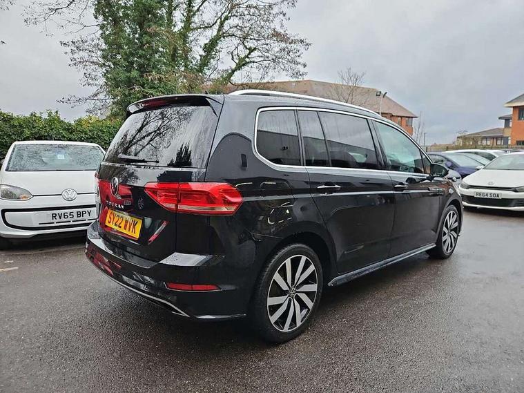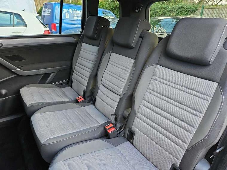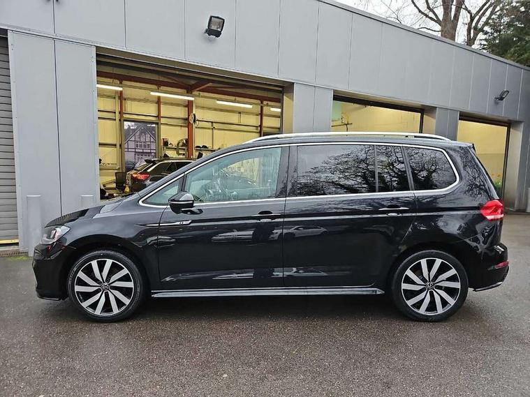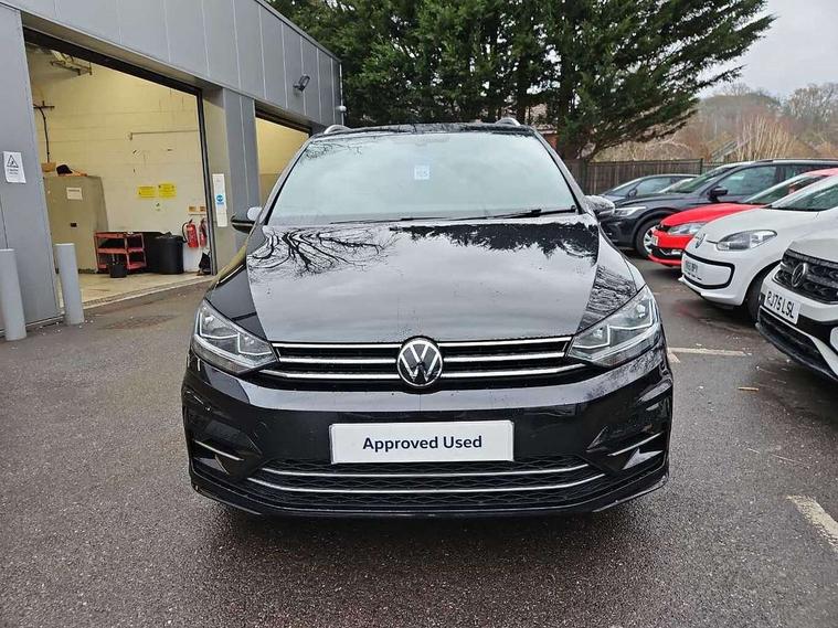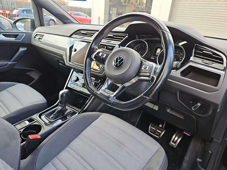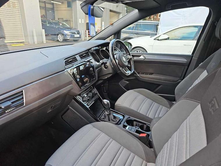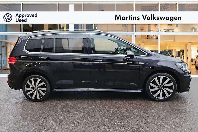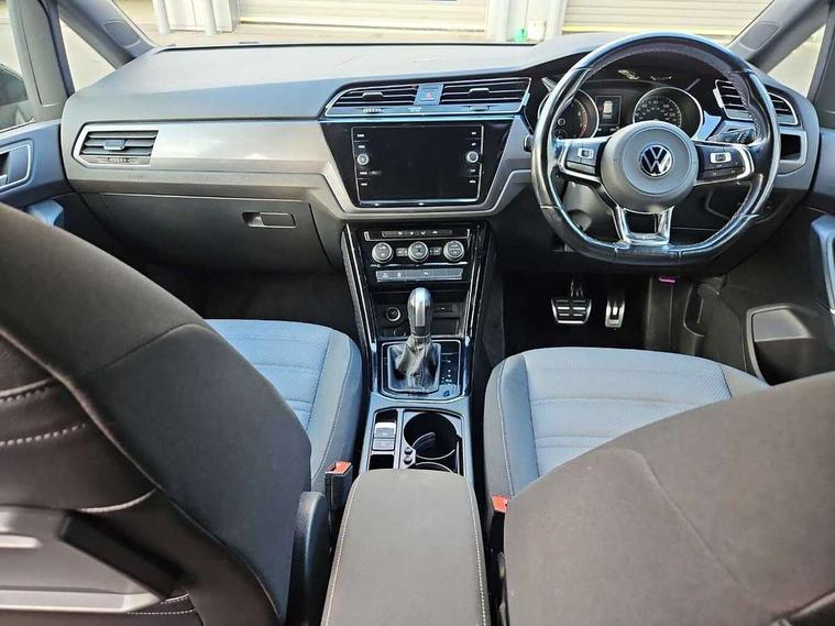 Adaptive cruise control, Audible lights on warning, Bluetooth telephone connectivity, Car information display, Digital cockpit, Discover nav, Euro 2D/3D map view+6.5" colour touchscreen CD + Radio, European map data, Car net guide/inform, Driver alert system, Driver electronic voice amplification function, Driver profile selection, Electronic odometer, Emergency services call system, Extended, crash-active and proactive Pedestrian and cyclist monitoring, External temperature gauge, Lane change system side assist and rear traffic alert, Lane keep assist, Mobile pairing with SMS function, Multifunction colour display, Rev counter with fuel gauge, Speed limiter, Speed sensitive power steering, Stop/start system, Think blue trainer driver tips and journey analysis, Trip and service interval display, Wireless app connect, Petrol Particulate Filter, XDS electronic differential lock, 4x20 watt output, 8 Speakers, Audio Connectivity System, DAB Digital radio, External USB-C data socket with increased charging performance - 2 USB sockets 45W, MP3/WMA compatability, SD card slot, Title and cover art display, USB connection, Aerial integrated into side window, Auto dimming door mirrors, on driver side, surround lighting and front passenger side mirror lowering function, Auto dimming rear view mirror, Automatic coming/leaving home lighting function, Body colour bumpers, Body colour door handles, Body colour door mirrors with integral indicators, Chrome fog light surround, Chrome lower front bumper insert, Chrome trimmed front air intake surrounds, Chrome trimmed radiator grille louvre inserts, Chrome trimmed side windows, Dusk sensor + auto driving lights, Front and rear electric windows, Fully galvanised body, Gloss black finish B pillar, Green tinted heat insulating glass, High level third brake light, Rain sensor, Rear side wing doors, Rear tinted glass from B-pillar backwards approx 65% tinted, Rear wash/wipe with intermittent wipe setting, Silver roof rails, Tailgate wiper- reverse gear activation, Twin chrome exhaust tailpipes, Unique R Line badging, Volkswagen roundel, Windscreen wipers intermittent wipe, 12V power point for Row 2, 12V socket in luggage compartment, 2 individual fold flat 3rd row seats, 2 three point seatbelts in 3rd row, 2nd row centre armrest, 2nd row centre seat converts into table, 3 single slide/fold/removable 2nd row seats, 3 Zone electronic climate control with automatic air recirculation, 3x3 point seatbelts on 2nd row with height adjust on outer seats, 4 boot load lashing points, 4 way adjustable front head restraints, 5 headrests, Aluminium kick plate, Ambient lighting in door trim and foot well, Black roof lining, Driver and front passenger under seat drawer, DSG Paddle Shifts, Dust/pollen filters, Foldable front passenger seat backrest, Front + rear carpet mats, Front and rear reading lights, Front centre armrest with storage compartment, Front comfort seats with lumbar support, Front cupholders x 2, Front passenger seat height adjust, Front seat R Line logo with rear seat backrest, Front seat storage pockets, Front seatback folding tables, Front seats with R-Line logo, Grey stitching on steering wheel, Height adjustable driver's seat, Height/reach adjust steering wheel, Illuminated glovebox, Illuminated vanity mirrors, Instrument lighting white adjustable panel illumination with red night time illumination, Interior light with delay, Isofix on 2nd row outer seats, Isofix on 3rd row seats, Large storage compartment in roof console, Leatherette on rear of front seats, Low tunnel 2nd row seat, Luggage compartment lighting, Media box in dashboard on passenger side, Multi storage in passenger/luggage areas, Multi-function centre console with storage facilities, Multifunction leather trimmed steering wheel including leather trimmed gear knob with 3.5" screen with multifunction computer, R-Line door sill protectors, Race cloth with San remo microfibre side bolsters, Retractable luggage cover, Split folding rear seat backrests, Stainless steel pedals, Storage bins on all doors, Mirror pack - Touran, R line styling pack - Touran, 3 point height adjustable front seatbelts, Auto hold function, Automatic post collision braking system, Door open warning reflectors, Driver/Front Passenger airbags, Drivers knee airbag, EDL + ASR, Electrically operated child locks on rear doors, Electronic parking brake, Energy recovery system, ESC with ABS, First aid kit, Front and rear (row 2) curtain airbags, Front assist including city emergency braking, Front seat side impact airbags, Front seatbelt pretensioners, Front/rear disc brakes, Hill hold control, Hydraulic Brake Assist (HBA), Loose wheel warning function, Manual passenger airbag deactivation function, Pre crash preventive occupant protection, Proactive passenger protection system with front and side assist, Rear child proof door locks, Seatbelt warning lamp and buzzer, Traction control, Two tone horn, Warning triangle, Alarm with remote central locking and interior protection, Electronic engine immobiliser, Black lead grey decorative inserts dash and door panel, Chrome plated instrument surrounds, Embroidered emblems to headrestraints, 18" Marseille alloy wheels with self sealing tyres and anti-theft wheel bolts, Run flat tyres,