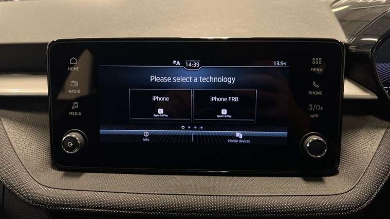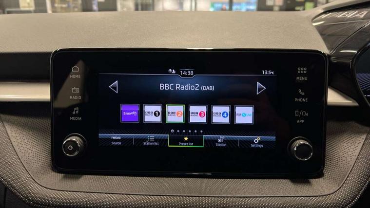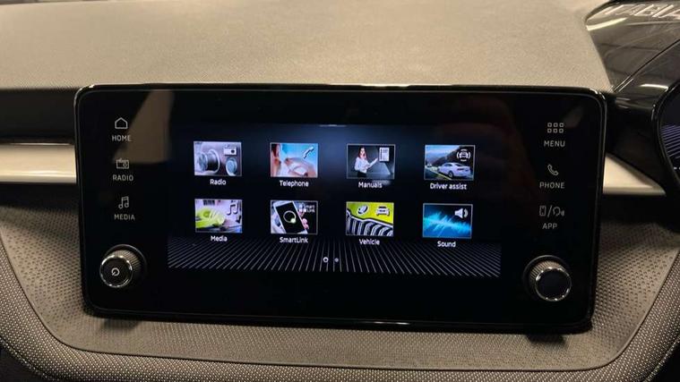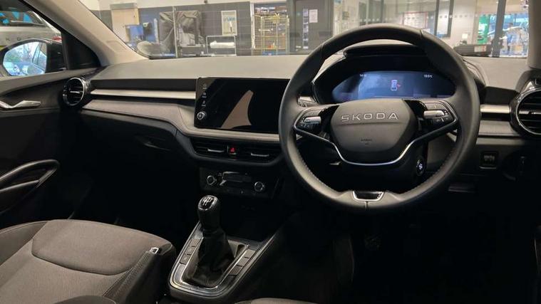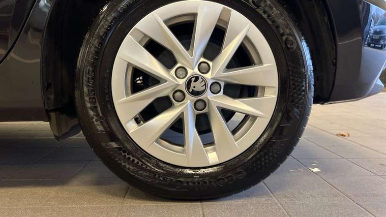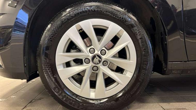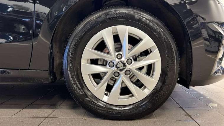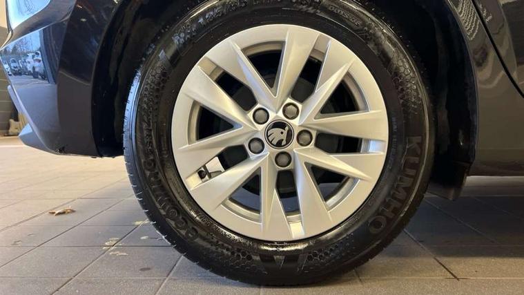 8" Digital instrument display, Advanced driver attention and drowsiness monitor, Bluetooth connection, Electromechanical power steering, Exterior temperature gauge, Service interval indicator, Traffic sign recognition, Wireless SmartLink for Apple CarPlay and Android Auto, 6 Speakers (4 in front and 2 in rear), 8.25" Skoda infotainment touchscreen display, Auxiliary socket for external MP3 player, DAB digital radio reception, Auto dimming rear view mirror, Body colour door mirrors, Body coloured bumpers, Door mirror integrated indicators, Front and rear electric windows, Front window wiper intermittent control, Headlight range control - Automatic, Ice scraper in fuel cap, LED 3rd brake light, LED daytime running lights with coming and leaving home feature, LED rear lights, Rear LED fog light, Rear side wing doors, Rear window wiper with washing nozzles, Roof mounted spoiler, SKODA tailgate lettering in chrome, Unique dark chrome design logo on alloy wheels, 2 reading lights in front and 2 reading lights in rear, 3 rear headrests, Backrest split and folding, Central console with removable cup holder and storage box, Chrome handbrake release button, Dual zone air conditioning with climatronic electronic control, Fabric upholstery, Front centre armrest, Gearshift knob/handle in leather, Grain satin black interior door handles, Hand brake lever handle in leather, Height adjustable front headrests, Height adjustable front seats, Height adjustable steering wheel, ISOFIX and TopTether anchorage points to the outer rear seats, ISOFIX and TopTether on the front passenger seat, Luggage compartment lighting, Manually adjustable lumbar support in front seats, Pollen filter, Rear seat bench unsplit, Single front passenger seat, Skoda lettering on steering wheel, Storm grey headlining, Sun visors with mirror and airbag label on passenger side, Textile floor mats, Ticket holder, Umbrella in drivers door, 3-point height adjustable front seats belts with pretensioner and force limiter, Automatic warning lights in case of crash, Driver and passengers airbag with switch off function, e-Call+, ESC including ABS, MSR, ASR, EDS, HBA and XDS, Front and rear seat belt warning, FRONT ASSIST (AEB City and AEB Inter Urban), Front side airbags, Head airbags, One tone horn, Pedestrian protection, Three rear 3-points safety seat belts with pretensioner and force limiter including stop function for outer rear seat belts, Tyre pressure monitoring system, Anti-theft alarm system including immobiliser, interior monitoring, backup horn, and towing protection, Central locking with radio remote control, interior controls, SAFE function and 2 foldable keys, Black painted air vents, Grain satin black central console cover, Metallic grey upper decorative trim, Satin black door and side trim panel in front, Textile Kota grey lower decorative inserts, Anti-theft wheel bolts protection, Super-low rolling resistance tyres,