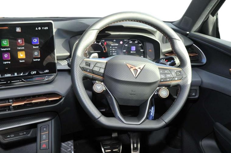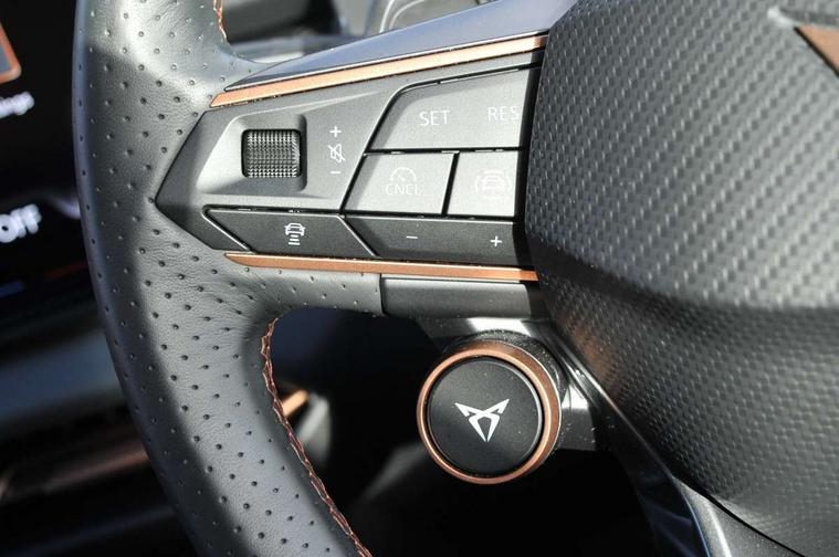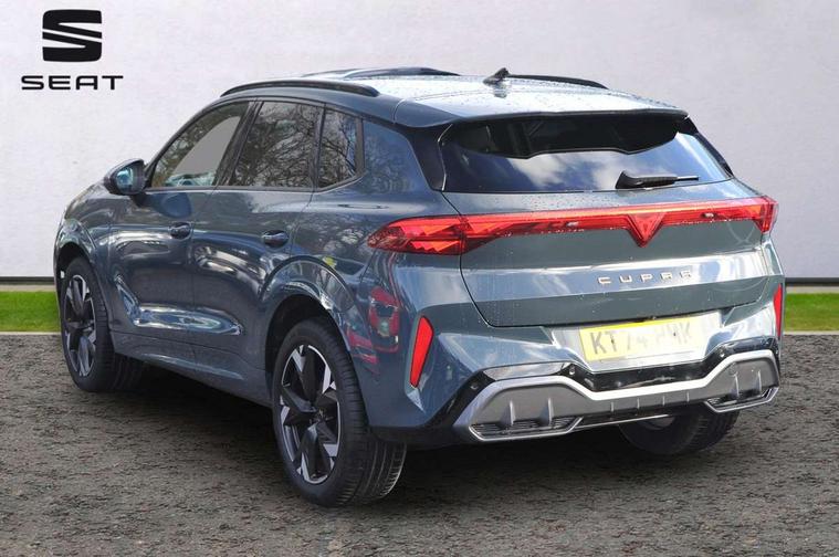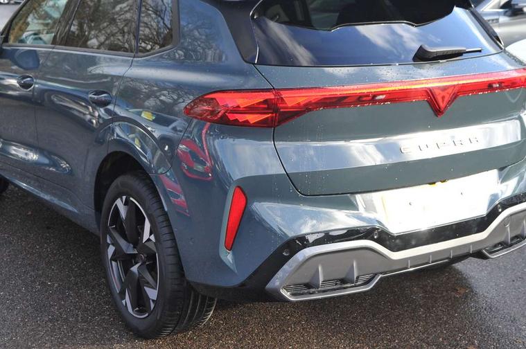 10.25" digital cockpit and configurable dashboard, Adaptive cruise control with follow-to-stop and speed limiter, Advanced driver alert system, Advanced lane assist with semi-automatic vehicle control in a medical emergency and traffic jam assist, Driving profile selection and conventional shock absorber, Dynamic road sign display, E-call, Electric tailgate with virtual pedal, Emergency steering support with turn assist, Four x USB Type C ports (2 in front and 2 in rear), Front and rear parking sensors, Front assist (Forward collision warning with automatic braking) with multifunction camera and front cross traffic assist, Head up Display, Intelligent park assist, Media system with Nav - 12.9" touch display, voice control, full link phone (wired/wireless), DAB and Steering wheel mounted controls, Rear traffic assist, Side and exit assist, Speed sensitive power steering, Start/stop system with regenerative braking, Top view camera (front camera, rear camera, 2 side cameras), Wireless phone charger, Auto dimming rear view mirror, Black roof rails, CUPRA 3D rear lights with ceremony & swiping indicator and illuminated logo, Dark tinted rear windows, Daytime running lights with automatic headlight control and Coming and Leaving home function, Door mirrors with memory function and lowing function on passenger mirror, Dynamic headlight range control, Electric front/rear windows, Electrically adjustable, heated and folding door mirrors, Front fog lamps with cornering function, Heat reflecting windscreen, High beam assist, LED headlamps with signature "CUPRA LED", Rain sensing wipers, Rear fog light on one side, back up light on both sides, Rear side wing doors, Rear wash/wipe, Third brake light, Welcome lights (within exterior mirror housing), 3 seat bench in 2nd row, Black roof lining, Cupra sports pedals, Dinamica cloth upholstery, Driver seat memory function, Electrically adjustable front seats including lumbar support, Front and rear head restraints, Front and rear reading lights X 4, Front centre armrest, Heated front seats, Heated leather wrapped multi function sports steering wheel with tiptronic, Illuminated interior front door sills, Isofix, Operating voltage 12V, Single front passenger seat, Smart wraparound interior lighting, Sunvisors with illuminated mirror, Three zone climate control with control panel in rear, Unsplit rear seat bench, split folding backrest, with centre armrest, Variable luggage/load compartment floor, 3 point seatbelts in front with pretensioner and electric height adjustment, 3 point seatbelts on all rear seats, Brake control system - ESC and brake booster, Child proof door locks, Driver and front passenger airbags, Electronic parking brake, Front and rear disc brakes, Front interaction airbag, Front passenger airbag deactivation switch, Front side airbags with curtain airbags, Pre-crash front and rear seat belt tensioner, window closure and hazard lights, Tyre pressure monitoring system, Visual and acoustic seat belt reminder, electric contact in front and rear, Anti theft alarm, Keyless locking and starting system with keyless access, Locking wheel bolts, Black decorative trims, Chrome interior detailing, 19" Spectrum exclusive machine alloy wheels, Tool kit,