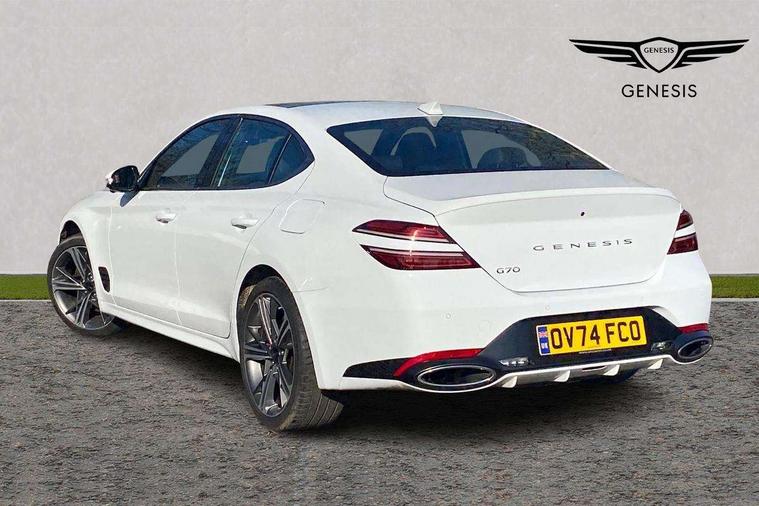 10.25" navi screen + DAB radio + phone mirroring + genesis connected, 8" Dashboard cluster TFT display, Blind spot collision avoidance assist rear (BCA-R), Bluetooth connectivity with voice recognition, Drive mode integrated control, eCall emergency call system, Electric power steering, Electric rear tailgate opening, Electronic chromatic mirror with HOMELINK, Forward Collision Avoidance Assist Junction Turning (FCAJX), Front parking sensors, Highway Driving Assist (HDA), Intelligent speed limit assist (ISLA), ISG with AMS 2, Lane Following Assist (LFA), Lane keeping assist (LKA), Lighting backup guidelines, Low washer fluid warning, Manual speed limit assist (MSLA), Rack and pinion mounted motor driver power steering (MDPS), Rear parking sensors without button, Rear view camera with dynamic guidelines on screen, SCC smart cruise control with stop and start, Trip computer, Wireless phone charger, Battery saver, Electronically controlled suspension, Limited slip differential, Shift by wire - E shift, 1x USB front, Steering wheel audio remote control, Active hood system, Aero blade wiper, Auto up/down windows, Automatic headlights with dusk sensor, Automatic window defogger, Beltline in satin finish, Black painted dual rear muffler and chrome coating, Body coloured bumpers, Body coloured door mirrors, Body coloured outside door handles, Body coloured side sills, Dual front LED low and high projection headlamps with high beam assist, Electrochromic inside rear view mirror, Electrochromic outside rear view mirrors, Insulated hood, Laminated front side glass, LED daytime running lights, LED position lamp, LED rear combination lamp, LED rear fog lamp, LED rear stop light, Outside electrical folding rear mirror, Outside rear mirrors electrical adjustment + heated, Puddle lamps with logo, Rain sensor, Rear boot, Rear door glass + backlite glass (solar + solar), Rear side wing doors, Rear spoiler with high mounted stop lamp, Side repeater lamp in exterior mirrors, Sport appearance, Tow hitch receiver, Windshield acoustic film, Windshield glass + front door glass (solar with sun blind + solar), 2nd row heating floor output, 2nd row remote folding seats, 3 seat bench in 2nd row, 4 way manual headrest adjustment for driver and passenger, 4 way mechanical electric lumbar support for driver, 60:40 split back folding and cushion for 3 passengers, Air purification (PM sensor), Backlight flash heated + timer, Central armrest, Console storage box, Console ventilation duct, Drink holder at centre armrest, Driver and passenger electric seat adjustment, Driver and passenger illuminated LED sunvisor, Driver and passenger seat back panel with pocket, Driver and passenger sliding sunvisor, Driver and passenger vanity mirrors, Driver's seat electric height adjustment, Floor mounted pedal, Foot lamp in front, Front air condition with dual zone adjustment, Front and rear courtesy lamp reflector, Front cup holders, Front passenger seat, Front power outlet, Heated front seats, Heated steering wheel, Height adjustable passenger seat, Ion plated interior door handle, Leather gear knob, LED luggage compartment lighting, Luggage net, Luggage net with hooks, Metallic pedals, Overhead console LED lamp with sunglass case & mood lamp, Paddle shifter, Perforated leather with metal grain steering wheel, Premium air filter, Premium charcoal cabin filter, PTC heater, Room LED lamp in 2nd row, Up/down rear headrest adjustment, USB charger console inside (1port), USB rear charger console outside (2ports), 3x3 point rear seat belts, ABS + ESC + HAC + MCB (Multi Collision Brake), Brembo premium brakes, Driver and passenger depowered airbag, Driver knee airbag, Dual shell horn, Electronic parking brake with auto hold, Forward collision avoidance system (car/pedestrian/bicycle), Front brake ventilated disc 345mm, Front center side airbags, Front thorax and pelvis + rear thorax + side curtain (ff/rr) airbag, Rear brake ventilated disc 330mm, Rear door child safety locks, Rear seat alert without sensors, Tyre pressure monitoring system, Upper and lower rear Isofix child anchor, Central door lock driver's control, Immobilizer + deadlock, Smart key/button start, Aluminum sport dark stripe pattern, Leatherette dashboard, Michelin tyres,