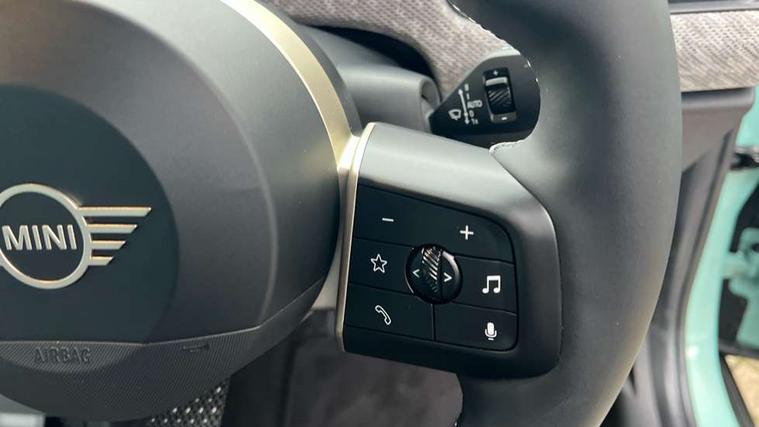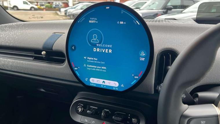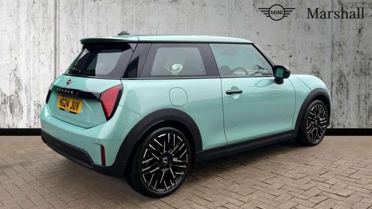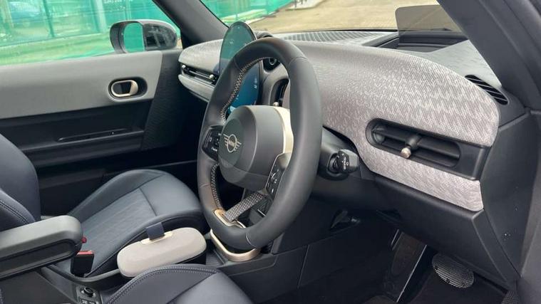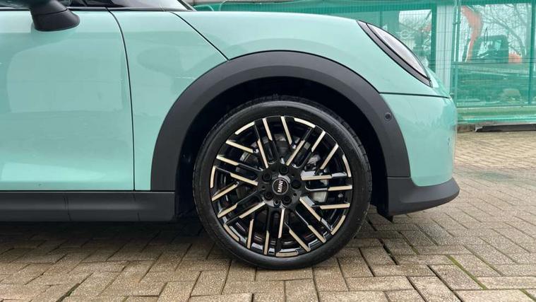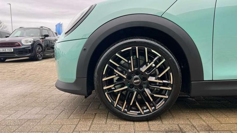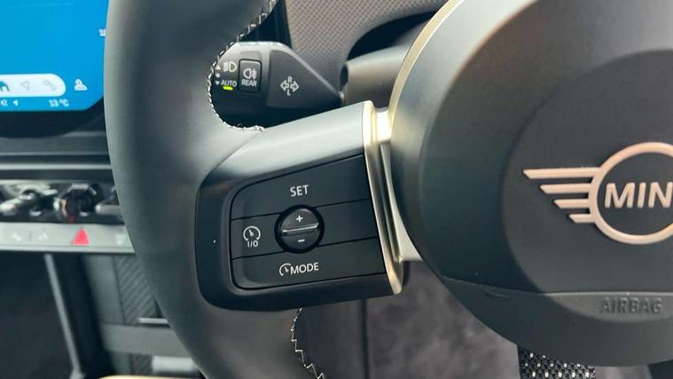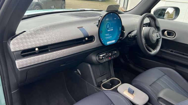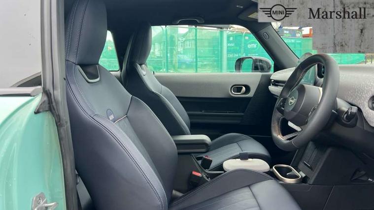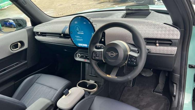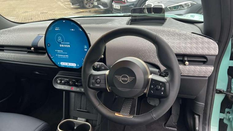 Central toggle bar, Circular OLED Screen, Compatible mobile phone bluetooth with audio streaming, Cruise control, Digital instrument cluster, Electro-mechanical speed dependant steering assistance, Emergency call service, MINI Experience Modes, Mini navigation system, On board computer, Service interval indicator, 7 speed steptronic transmission with double clutch, DAB Digital radio, Auto headlights, Electric adjustable heated door mirrors, Electric front windows, Heated rear window, Heated windscreen washer jets, LED daytime running lights, LED indicator lights, LED rear lights, Logos in Vibrant Silver, Rain sensor window wipers, Rear fog lights, Rear window wiper, Vibrant silver grille surround, 2 seat bench in second row, 2 zone automatic air conditioning, 60/40 rear seat bench, Ambient lighting, Cupholders, Dark headliner, Floor mats, Front and rear head restraints, Front compact armrest, Heated steering wheel, Height adjustable passenger seat, Lidded storage box in grey knit, Luggage compartment lighting, Single front passenger seat, Sport Vescin Steering Wheel, Sunvisors with vanity mirrors, Vescin synthetic leather upholstery, Driving assistant pack - Cooper Hatchback, Level 1 pack - Mini Hatchback, Park assistant pack - Cooper Hatchback, 3 point seatbelts on all four seats, 6 Airbags - front, side, head and seat belt tensioners, Acoustic pedestrian protection, Anti-lock braking system (ABS), DSC - Dynamic Stability Control, Electronic parking brake, Front and rear disc brakes, Front ISOFIX (iSize), Front passenger airbag deactivation, Traction control, Tyre pressure monitoring system, Alarm, Immobiliser, Remote central locking, Blue decorative dash strap, Light Beige/Grey dash knit, Tyre repair kit,