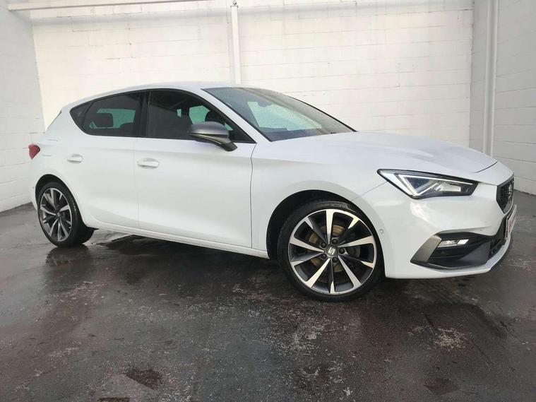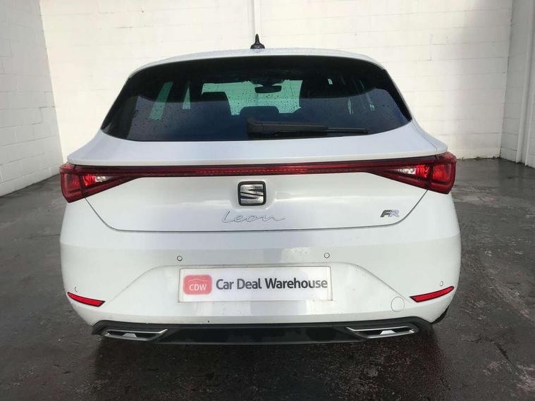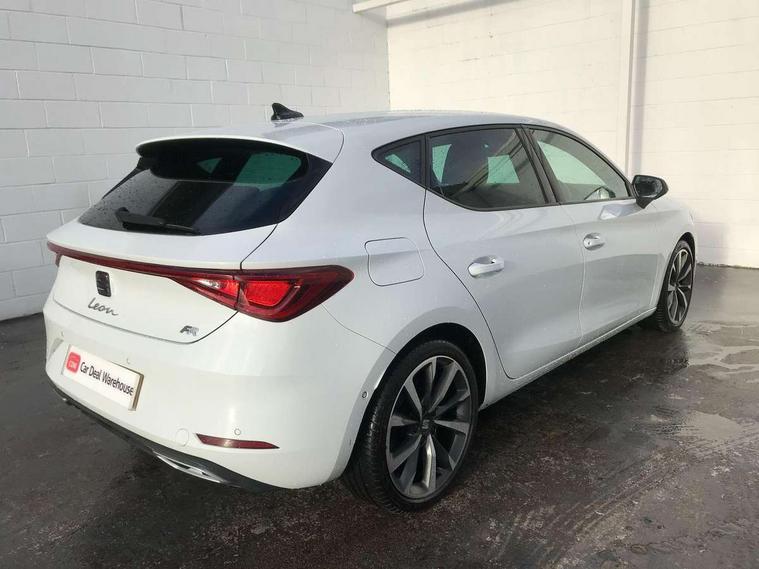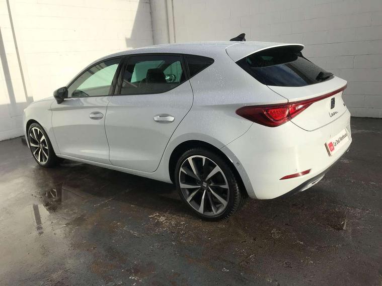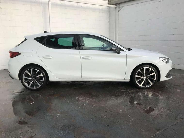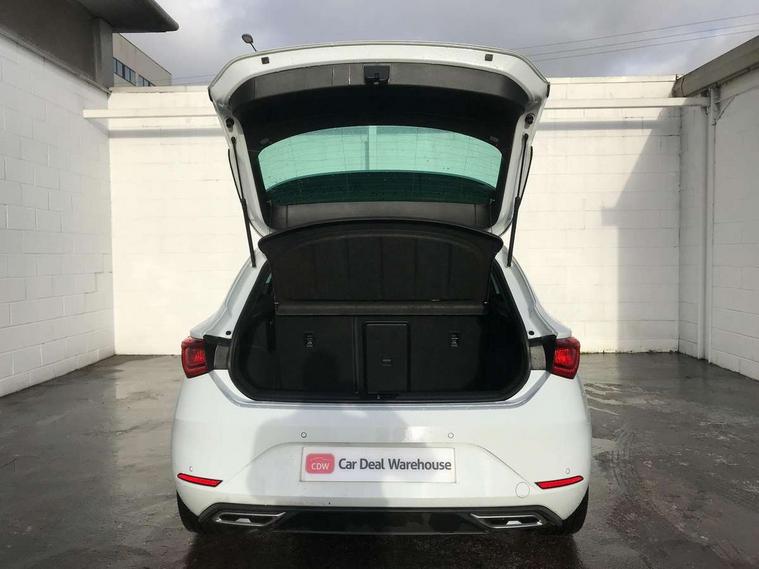 Digital cockpit, Front assist with forward collision warning braking reaction to vehicles, pedestrians and cyclists, Full link smartphone integration with Mirror Link, wireless Apple CarPlay and wired Google Android Auto, Lane keeping system, Lockable tailgate, Park assist (inc front/rear parking sensors), Power assisted speed sensitive electro-mechanical steering, RPM, trip computer, outside temp gauge, instrument light brightness, low fuel warning light, lights on reminder, gearshift indicator, SEAT drive profile with 4 modes (Eco/Normal/Sport/Individual), throttle response, Service interval indicator, Start/stop system with regenerative braking, Sports suspension, XDS electronic differential lock and dynamic traction support, Auxiliary input socket, Auto dimming rear view mirror, Body colour door handles, Body coloured bumpers, Dark tinted rear windows, Door mirror LED indicator lights, Electric adjustable/heated/folding door mirrors with memory, Electric front/rear windows, FR sports bumper, Illuminated front door sill, LED front fog lamps with cornering function, LED headlights and tail lights with dynamic turn signals, welcome light silhouette from exterior mirrors and dynamic headlight range control, LED rear fog lamp, Rain sensing wipers, Rear wash/wipe, Separate daytime running light with automatic headlight control and coming home feature, 12v power point in centre console, 60/40 split rear bench seat with armrest, Ambient lighting in door trim, Black headlining, Dust/pollen filter, Electric driver lumbar support + passenger manual lumbar support, Folding boot cover, Front and rear height adjustable headrests, Front and rear reading lights X 4, Front centre armrest, Front seatback storage pockets, Heated leather steering wheel with leather gearstick, Height/reach adjust steering wheel, Interior lighting with LED lighting in sunvisor, glovebox and rear headlining, ISOFIX points in outer rear seats with top tether anchorage points, Luggage tie-down hooks, Microsuede cloth upholstery, Power driver seat with memory and manual height adjustable passenger seat, Sunvisors with covered illuminated mirror, Three zone climate control, Wraparound lighting, Media system plus with navigation - Leon, 3 point seatbelts on all rear seats, ABS, Brake control system - ESC and brake booster, Child proof door locks, Driver and front passenger airbags with front passenger airbag de-activation, front side and curtain airbags, Electronic parking brake, Extended safety system - seat belt tensioner, window closure and hazard lights, Hill hold control, Rear disc brakes, Seat belt reminder for front and rear seats, Tiredness recognition system, driver alert system, Tyre pressure monitoring system, Anti theft alarm system with interior monitoring in cab, backup horn and towing protection, KESSY Go (Keyless start), Locking wheel bolts, Wireless phone charging, Chrome interior detailing, 18" Performance machined alloy wheels with 92Y tyres, Tool kit,