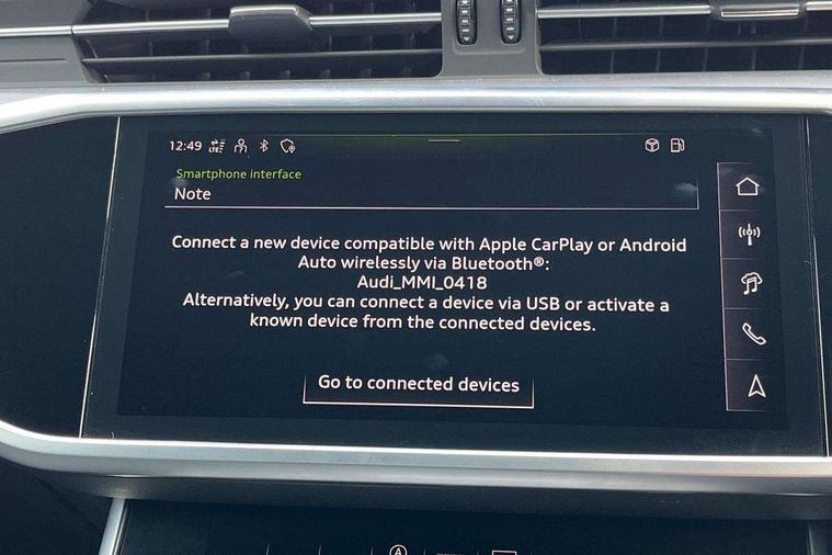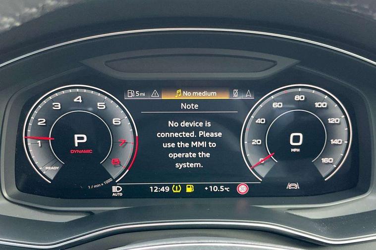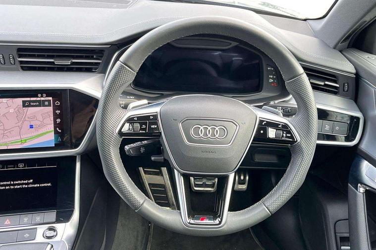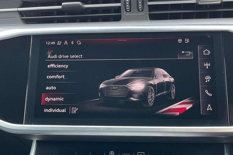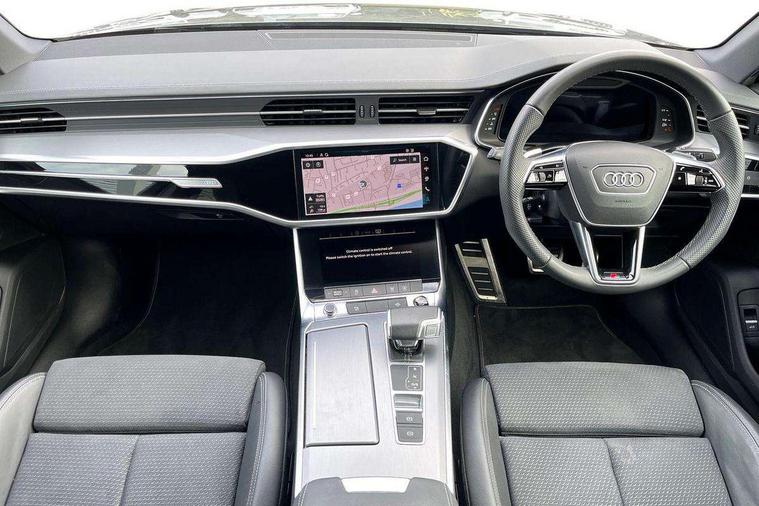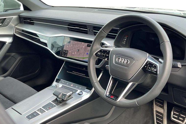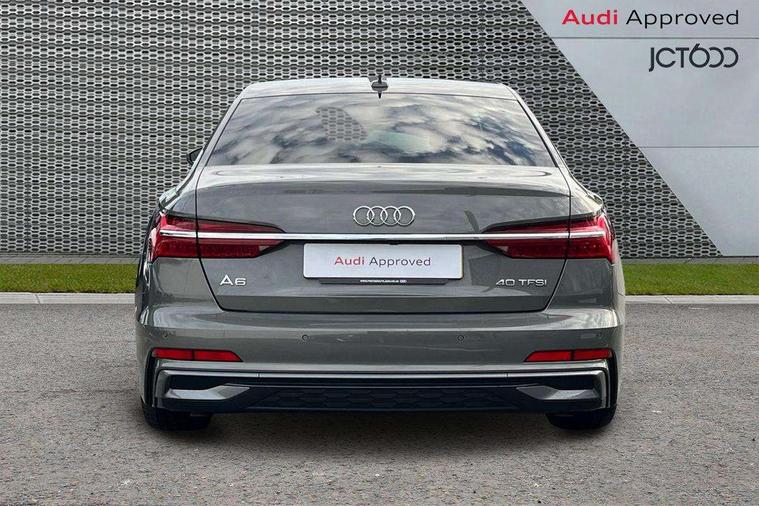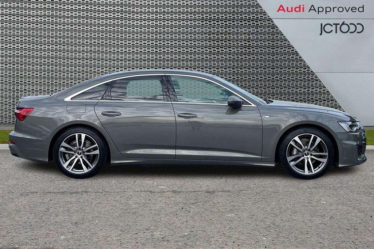 Audi connect safety and service (e-call), Audi connect with Amazon Alexa Integration, Audi drive select, Audi parking system plus - acoustic and visual park assist system for front and rear, Audi virtual cockpit, Automatic start/stop system with coasting functionality, Bluetooth interface, Camera based traffic sign recognition, Electric boot lid release, Lane departure warning system, MMI navigation plus with 10.1" and 8.6" touch screens, Progressive steering, Rear view camera, Service interval indicator, Smartphone interface includes wireless Apple carplay/Android Auto, Voice control system, Sports suspension, Audi front music interface, Audi sound system, Auxiliary input socket, DAB Digital radio, USB connection, Body coloured door mirrors, Electric front/rear windows, Electrically adjustable heated and folding + automatically dimming exterior mirrors with memory function, Frameless auto dimming interior rear view mirror, Front intermittent wipers, Heat insulating darkened glass in side and rear windows, Heat insulating glass in windshield, LED rear lights with dynamic indicators, LED signature front daytime running light, LED third brake light, Matrix LED headlights, Matt black rear diffuser with diffuser strip and tailpipes in chrome, Matt black side air intake grille with inlay in matt aluminium, Privacy glass, Radiator grille in anthracite black matt, single frame in chrome and horizontal struts in matt aluminium silver, Rain and light sensors, Rear boot, Rear side wing doors, 2 zone deluxe electronic climate control, 3 spoke high multi-function perforated leather steering wheel with contrast stitching and shift paddles, 40/20/40 split folding 3 rear seat bench in 3 parts with rear centre armrest, Audi phone box light, Black cloth headlining, Electrically adjustable front seats including seat height, fore/aft position, backrest angle and 4-way lumbar with memory for driver's seat, Front and rear floor mats, Front centre armrest, Front head restraints, Heated front seats, Height/reach adjust steering wheel, Illuminated door sill trims with S logo, Illuminated sun visors with vanity mirrors, Leather gear knob, Rear headrests, Single front passenger seat, Stainless steel pedals and foot rest, Tool kit and car jack, LED Interior Ambient Lighting Pack - A6, Non smoking pack - A6, S line exterior style pack - A6, 3 point seatbelts on all seats, Airbags - Front side, front and rear including head, Audi pre-sense front, EBD - Electronic brakeforce distribution, Electromechanical parking brake, Electronic Stability Control (ESC) including ABS, ASR and EDL, Extended pedestrian protection measures, ISOFIX child seat mounting for front passenger seat and ISOFIX child seat mounting with Top Tether for outer rear seats, Manual child proof rear door locks, Seatbelt monitoring, Tyre pressure warning light, Warning triangle and first aid kit, Anti theft alarm with tow away protection, Anti-theft wheel bolts and wheel loosening detection, Immobiliser, Keyless Go, Remote central locking, Matt brushed aluminium inlays,