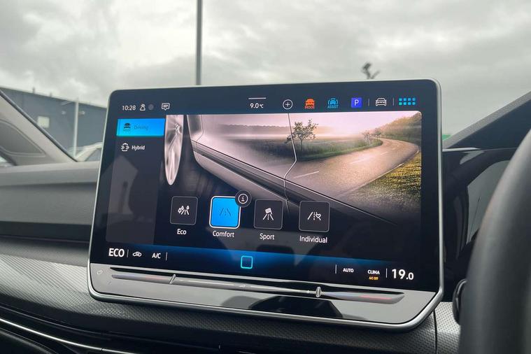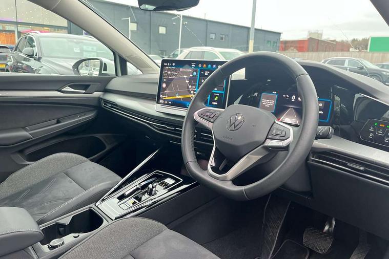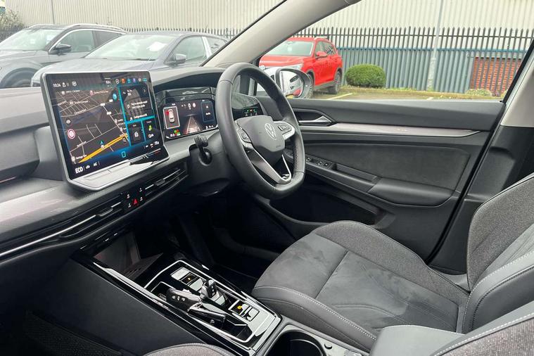 Activated carbon canister, Adaptive cruise control (ACC) with speed limiter and front assist (reacting to vehicles pedestrians and cyclists), Advanced driver attention and drowsiness monitor, Car2X intelligent vehicle networking, Discover media navigation system, Driver alert system, Dynamic road sign display, E-Sim card for online connectivity, eCall emergency call system, Emergency assist, Front and rear parking sensors, Infotainment system with scalable module options Version 2, Lane assist, traffic jam assist and emergency assist, Multi-color Digital cockpit pro, selection of different info profile possible, Multifunction camera for distance control, Oncoming vehicle braking when turning including swerve support, Power assisted speed sensitive steering, Side assist blind spot lane change system, rear traffic alert and exit warning system, Speedo, rev counter, electronic odometer, trip, service interval display, exterior temperature and fuel gauge, Traffic jam assist, Voice assistant and voice enhancer with chat GPT, Warning signal and warning light for front and rear seatbelts not fastened, We connect plus preparation, We connect preparation, Wireless app connect, Charging cable Mode 2 Type 2 (10A), Charging cable mode 3, type 2 32 A, Hybrid propulsion system, Start-stop system with battery regeneration (recuperation - energy recovery during braking), XDS electronic differential lock for improved traction and handling, 12.9" infotainment display, 2 USB C ports in front, 2 USB charging sockets on the centre console in the rear charging capacity upto 45W, 6 Speakers - 4 in front and 2 in rear with central speaker, Comfort telephony + wireless charging, without wireless aerial connection, DAB radio, Diversity antenna for FM reception, Gaming platform via car app, 4 speed front wiper/interval delay, Auto headlights, Automatic headlamp activation with Coming home and Leaving home feature, Body colour bumpers, Body colour door handles, Body colour door mirrors, Body colour rear roof spoiler, Chrome plated radiator grille inserts and light switch surrounds, Chrome trimmed front air intake surrounds, Chrome trims on the side window bottom, Electrically heated and adjustable door mirrors with memory feature, Exterior mirrors convex on the left and aspherical on the right, Front and rear electric windows, Front windscreen washers, Heat insulating windshield made of laminated glass, High level 3rd brake light, Illuminated front grille, Illuminated molding between headlights and illuminated door handle recesses, LED daytime running lights, LED License plate illumination, Rear exhaust tailpipe, Rear fog light on one side and reversing lights on both sides, Rear side wing doors, Rear windscreen washer and wiper with interval delay, Remote electrically foldable door mirrors, puddle lights and reverse activated passenger's door mirror, Welcome light with surround lighting, 12V socket in front centre console, 12V socket in luggage compartment, 3 rear head restraints, 3 seat bench in 2nd row, Air care climatronic 3 Zone automatic climate control with rear air conditioning control panel, Ambient lighting with 30 colour including LED light unit in front footwell with selectable light colour, Carpet mats, front and rear, Door insert, side trim panel and arm support in leatherette, Front centre armrest with storage compartment, Front cupholders x 2, Glovebox, Height and reach adjustable steering wheel, Isofix child seat preparation for 2 rear child seats and front passenger seat, Luggage compartment lighting, Plastic gear knob, Rear cupholder and loadthough, Removable luggage compartment cover, Single front passenger seat, Split folding backrest with centre armrest and unsplit rear seat bench, Standard pedal cluster, Storm black instrument panel, Storm grey roof lining, Sun visors with illuminated vanity mirrors, Driver assistance pack - Golf DSG Estate/Hatchback, Light and vision pack - Golf Estate/Hatchback, 3 point height adj front seatbelts + pretensioners, 3 rear three point seatbelts, ABS, Autonomous emergency braking front assist with pedestrian and cyclist monitoring, Child locks on rear doors, Driver and front passenger airbag with front passenger airbag deactivation, Drivers and front passengers safety optimised head restraints, Electronic parking brake with auto hold, ESC (Electronic Stability Control), Front centre airbag, Front side airbags with curtain airbags, Hill start assist, Rear disc brakes, Two tone horn, Tyre pressure monitoring system, Volkswagen roadside assistance, Alarm with interior protection, Anti theft wheel bolts, Electronic engine immobiliser, Keyless start with SAFE lock, New brushed dark metal decorative inserts for dashboard and front door panels, Tool kit for tyre mobility set, Tyre mobility kit Includes 12V compressor and tyre sealant,