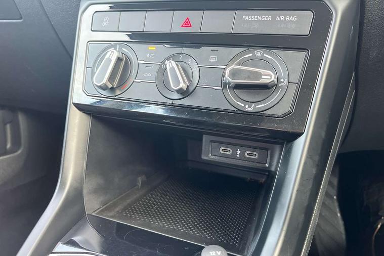 'Lights On' Reminder warning buzzer, Adaptive cruise control including front assist, forward collision warning, autonomous emergency braking, speed limiter, Blind spot monitoring, Bluetooth telephone and audio connection for compatible devices, Car information display, Digital cockpit, Driver alert system, eCall emergency call system, Lane assist, Low washer fluid warning light, Multifunction computer with visual gear change recommendation for fuel consumption, Operating permit alteration, Power assisted speed sensitive steering, Speedo, rev counter, electronic odometer, trip, service interval display, exterior temperature and fuel gauge, Stop/start system, Warning sound and light for doors and tailgate open, Warning sound and light for front seatbelts unfastened, We Connect Go Dongle, Wireless Car net app connect with Apple CarPlay, combined functionality of Apple CarPlay/Android Auto and MirrorLink, Battery regeneration during braking, Misfuel prevention device, 2x USB connection with USB charging sockets and in rear centre console, DAB Digital radio receiver, Diversity antenna for FM reception, Multi device interface (MDI) with USB connection, Music playback - MP3, WMA and AAC files, Premium USB cable for Apple or Android smartphone compatibility, Simultaneous pairing of 2 compatible mobile devices, Title and cover art display, Automatic hazard lights activation under emergency braking, Black roof rails, Body colour door handles, Body colour door mirrors with integrated indicators, Body coloured bumpers, Dusk sensor + automatic driving lights, Electrically foldable, adjustable and heated door mirrors with reverse activated kerb view adjustment on passenger's side, Front and rear electric windows, Front fog lights with static cornering function, Galvanised body, Heated rear window, LED third brake light, Lower door sills and door pillars in black, Radiator grille with high gloss surface and chrome strip, Rear fog light on one side, reversing light on both sides, Rear lights incorporating LED technology, Rear side wing doors, Rear window aerial, Rear windscreen washer and wiper with interval delay, Reflectors in all doors, Tailgate with integrated roof spoiler, Windscreen wipers/ intermittent wipe + 4 position delay, 12V Accessory socket in centre console, 3 rear head restraints and 3 rear three point seat belts with ECE label, 3 seat bench in 2nd row, 60/40 split folding rear seat backrest, Drawer under drivers seat, Driver and front passenger sunvisor with vanity mirror, Driver's sunvisor with ticket holder, Dust and pollen filter, Front and rear reading lights X 2, Front centre armrest with storage compartment, Front seat back storage pockets, Front seats with adjustable lumbar support, Glovebox, Heating and fresh air system with 4 stage blower, Height/reach adjust steering wheel, Instrument lighting white adjustable panel illumination, Interior light with delay, Isofix child seat preparation for 2 rear child seats, Luggage compartment cover, Luggage compartment lighting, Manual air conditioning, Manual front seats with height adjustment, Moveable and foldable Rear bench seat, Single front passenger seat, Storage compartment in drivers and front passengers door, Three spoke multi-function leather trimmed steering wheel and gearknob, Triangle ties/pearl cloth upholstery, Variable boot floor, Anti-lock Braking System (ABS) with Hydraulic Brake Assist (HBA), Automatic post collision braking system, Driver and front passenger safety-optimised head restraints, Drivers and Front Passengers airbags with front passengers airbag deactivation switch, ESC with EDL, ASR, EDTC and trailer stabilisation function, Front and rear curtain airbags, Front seat side impact airbags, Height-adjustable front three-point seat belts with tensioners, Hill start assist, Pre crash preventive occupant protection, Rear door child safety locks, Rigid safety cell with front and rear crumple zones, Single torn horn, Tyre pressure loss indicator, Volkswagen roadside assistance, Alarm with interior protection and deactivation via infotainment system, Child security locks in rear doors, Electronic engine immobiliser, Remote tailgate unlocking using key fob, Pineapple decorative inserts in dash and doors, 17" Clayton alloy wheels + anti theft wheel bolts, Breakdown kit,