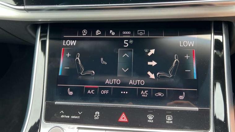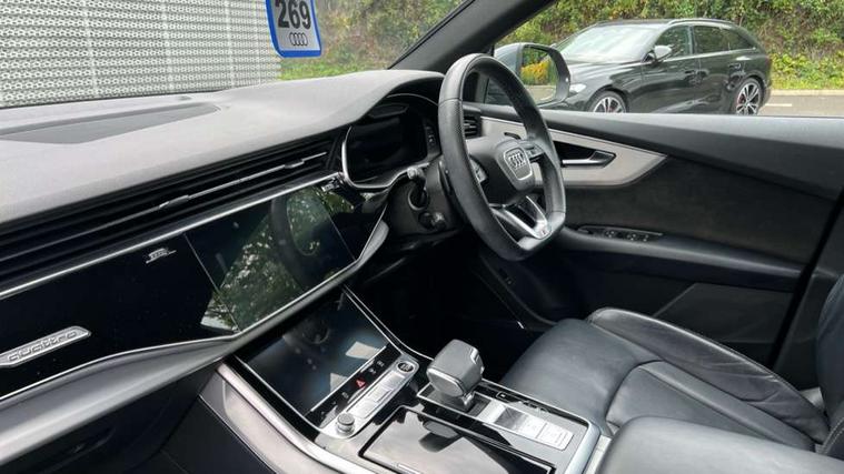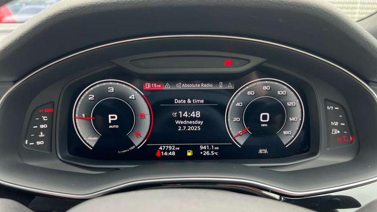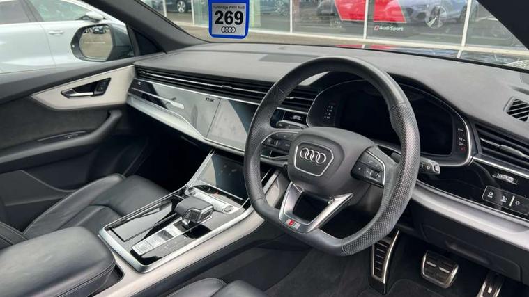 10.1" and 8.6" Dual colour touchscreens, Audi connect safety and service (e-call), Audi connect with Amazon Alexa Integration, Audi drive select, Audi parking system plus includes 360 degree display with front and rear sensors, Audi phone box with wireless charging, Audi smartphone interface includes wireless Apple carplay/Android Auto, Audi virtual cockpit - 12.3" high resolution LCD display with fully customisable instrument cluster, Automatic start/stop system, Electro-mechanical PAS, Low washer fluid indicator, MMI - Multi Media Interface control system, MMI navigation plus with MMI touch, Natural voice recognition, On board computer, Operating buttons in black, glass look with haptic feedback, Power operated tailgate, Rear view camera, Service interval indicator, 48V Mild hybrid technology, Adaptive sport air suspension, Diesel particulate filter, Quattro all wheel drive with self locking centre differential, Audi music interface with 2 USB ports with charge and data functions, Audi sound system with 6 channel amplifier, 180 watt amplifying capacity and 10 loudspeakers including subwoofer, Aux-in socket, DAB Digital radio, Acoustic windscreen, Aluminium window trim, Audi HD Matrix LED headlights with dynamic front and rear indicators, Auto dimming frameless rear view mirror, Body colour door mirrors, Coming/leaving home lighting function, Electric front+rear windows, Electrically adjustable/heated/folding/auto dimming door mirrors with integrated LED indications + kerb view function for passenger side, Headlight washers, Heat insulating glass in windshield, Illuminated door sill trims with S line logo, LED signature daytime running lights, Platinum grey front spoiler lip and diffuser insert with honeycomb grille in black, Privacy glass - dark tinted rear and rear side windows from B-pillar backwards, Rain and light sensors, Rear wiper, S line badges on front wings, S Line body styling, S line bumpers in full body colour paint finish, S line roof spoiler, S Line side skirts, S line side ventilation grille, 2 zone automatic climate control, 4-way lumbar support for front seats, 40:20:40 split folding rear bench seat, Black cloth headlining, Comfort front centre armrest, Driver seat memory function, Electrically adjustable front seats, Front head restraints, Front/rear floor mats, Heated front seats, ISOFIX child seat mounting for front passenger seat and 2 outer rear seats with top tether child seat mounting for all 3 rear seats, LED interior ambient lighting, Luggage compartment sill protection in stainless steel, Rear centre armrest with 2 cupholders, Rear headrests, Rear seat bench plus, Stainless steel pedals, Sunvisors with illuminated vanity mirrors, 3 point seatbelts on all seats, Audi pre sense front, Driver and front passenger, front side and curtain airbags, Electromechanical parking brake, Electronic Stability Control (ESC) including ABS, ASR and EDL, Front passenger airbag deactivation, Hill descent control, Hill hold assist, Predictive pedestrian protection, Seatbelt monitoring, Traction control, Tyre pressure loss indicator, Warning triangle and first aid kit, Anti theft alarm with tow away protection, Anti-theft wheel bolts and wheel loosening detection, Immobiliser, Keyless go with remote central locking, Dark matt brushed aluminium inlay, Tool kit, Tyre repair kit,