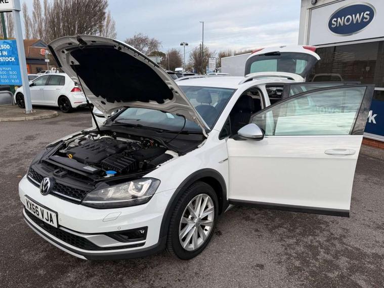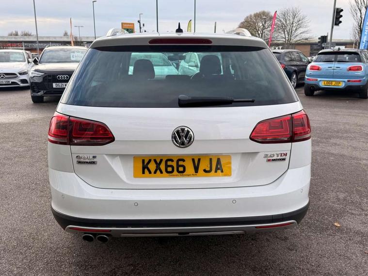 'Lights On' Reminder warning buzzer, Bluetooth Telephone preparation, Brake pad wear indicator warning light, Cruise control + speed limiter, Driver alert system, Driver profile selection, Exterior temperature gauge, Front and rear parking sensors, Instrument cluster in white, Multifunction computer - Midline, PAS - speed related, Rev counter, Traffic Master traffic alert system, Trip and service interval display, Warning buzzer and light for front seatbelts unfastened, Diesel particulate filter, Raised suspension, 8 Speakers, Auxiliary input socket, Composition media system with Radio/CD/MP3, DAB Digital radio, iPod adaptor, MDI with USB/iPod connection cables, SD card slot, Auto dimming rear view mirror, Bi-xenon headlights with washers + dynamic curve lighting + LED daytime running lights, Black rear diffuser, Body colour bumpers, Body colour door handles, Body colour rear roof spoiler, Cherry red rear light cluster, Chrome door mirrors, Chrome surround for front fog lights, Chrome trimmed front air intake surrounds, Chrome trimmed radiator grille louvre inserts, Chrome window surround, Coming/leaving home lighting function, Cornering front fog lights, Door mirror integrated indicators, Dusk sensor + auto driving lights, Electric front windows, Electric rear windows, Electrically adjustable and heated door mirrors, Heat insulated tinted glass 65% light absorbing from B pillar back, Heated rear windscreen, Matt aluminium grille, Rain sensor, Range adjustable headlights, Rear windscreen washer and wiper with interval delay, Silver roof rails, Twin exhaust tailpipe, Underbody protection guards, Windscreen wipers/ intermittent wipe + 4 position delay, 12V socket in luggage compartment, 3 rear headrests, 3 spoke steering wheel, 4 boot load lashing points, 60/40 split folding rear seat, Air conditioning - 2 zone electronic climate control, Ambient lighting, Bag hook in luggage compartment, Courtesy light delay, Cover for storage compartment in centre, Dust/pollen filter, Front + rear carpet mats, Front centre armrest with storage box and rear air vents, Front footwell illumination, Front seat back storage pockets, Grab handles, Height/reach adjust steering wheel, Illuminated vanity mirrors, Isofix preparation for 2 rear child seats, LED reading lights, Load through provision with rear centre armrest and cupholders x2, Lockable, illuminated, cooled glovebox, Luggage compartment cover, removable, Luggage compartment lighting, Multifunction leather steering wheel with leather gear knob/handbrake grip, Stainless steel pedals, Storage compartment in roof console with cover, Storage compartments in doors, Storage drawer under driver's seat, Sun visors, Variable boot floor, height adjustable and removable, White adjustable panel illumination, Mirror pack - Golf, 3 point height adj front seatbelts + pretensioners, 3 rear 3 point seatbelts, ABS, Child locks on rear doors, Door open warning reflectors, Driver/Front Passenger airbags, Driver/Passenger whiplash optimised head restraints, Drivers knee airbag, Electronic parking brake with auto hold, ESP with EDL + ASR, Front and rear curtain airbags, Front passenger airbag deactivation, Front side airbags, Fuel cut off safety device, Hill descent control, Hydraulic Brake Assist (HBA), Pre crash system, Tyre pressure monitor, Warning triangle and first aid kit holder, Alarm with interior protection, Electronic engine immobiliser, Remote central locking with 2 remote folding keys, Chrome air vent surrounds, Chrome-plated light switch surround, Decorative effect painted inlay - Silver, Gloss black decorative inserts in dash, Pavaino decorative inserts, Space saver spare wheel,