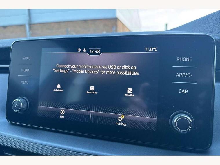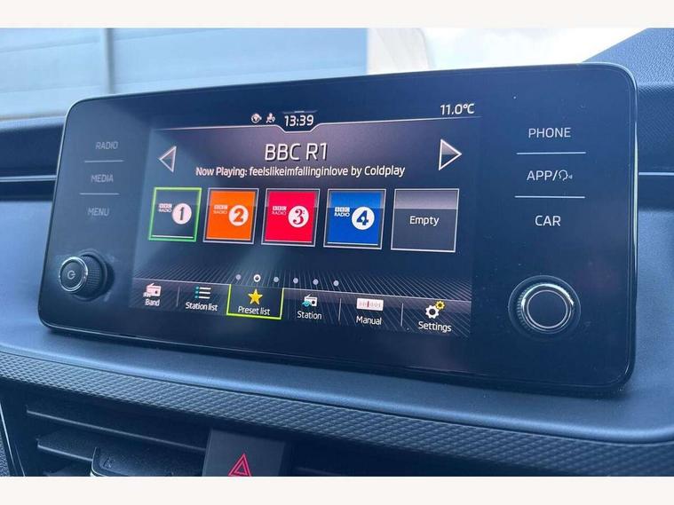 Bluetooth system, E-call, Front assist system, PAS, Service indicator, Speed limiter, 8 Speakers, Auxiliary input socket, DAB Digital radio, Body colour bumpers, Body colour door mirrors and handles, Chrome grille surround, Dimming rear view mirror with black surround, Electrically adjustable and heated door mirrors, Front and rear electric windows, Headlight range control, Heated rear window, LED rear lights - low functionality, LED third brake light, Light sensors, Rear fog lights, Rear side wing doors, Rear wiper, 12V Accessory socket in centre console, 3 seat bench in 2nd row, Chrome inner door handles, Cloth upholstery, Front head restraints, Glove compartment with illumination, Ice scraper, Isofix child seat fittings on outer rear seats, ISOFIX on front passenger seat, Manual lumbar support for front seats, Rake/reach adjustable steering wheel, Reading lights, Single front passenger seat, Sun visors with illumination on front passenger, Textile floor mats, Third rear headrest, Top tether for front passenger seat, Umbrella in driver's door, 3x3 point rear seatbelts, Airbags - driver and front passenger, ESP, Front passenger airbag deactivation switch, Front side airbags with curtain airbags, Hill hold control, Manual parking brake, Manual rear child locks, One tone horn, Rear disc brakes, Seatbelt reminder for driver an co-driver, Traction control, Tyre pressure monitor, Anti-theft alarm system with interior monitoring, backup horn, towing protection and remote central locking with SAFE system, Anti-theft wheel bolts, Electronic engine immobilizer,