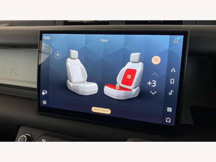 1 x USB-C (power only) & 1 x USB-C (power & data) in Row 1, 2 x USB-C in Row 2, 11.4" touchscreen, 360 degree parking aid, 3D Surround Camera with 360 View, 180 Rear View, Front Traffic Detection, Forward Vehicle Guidance, Tow Hitch Assist and clear sight Ground View, Adaptive cruise control, Android Auto, Apple CarPlay, Blind spot assist, Bluetooth system, Brake pad wear indicator, Clear exit monitor, Connected navigation pro, Driver condition monitor, Electric power assisted steering (EPAS), Interactive driver display, Lane keep assist, Push button start, Rear collision monitor, Rear traffic monitor, Traffic sign recognition with adaptive speed limiter, Trip computer, Wireless device charging, 8 speed automatic transmission, All wheel drive system, Twin speed transfer box, DAB Radio (Digital Audio Broadcasting), Meridian 400w sound audio system with 11 speakers and subwoofer, Pivi pro connected, Automatic headlight levelling, Automatic headlights, Black exposed rear recovery eyes, Body coloured bonnet, Centre high mounted stop light, Electric heated/power fold door mirrors with approach lights and auto dimming driver side, Electric windows with one touch open/close and anti-trap, Follow me home lighting, Heated rear window with timer, Heated windscreen, Illuminated metal treadplates with brand name script, LED tail lights, Panoramic rear side glass, Privacy glass, Puddle lights, Rain sensing windscreen wipers, Rear fog lights, Rear wiper, Side hinged tailgate, Standard tail door, Trailer stability assist, X-Dynamic badge, 12V power socket in loadspace, 3 seat bench in 2nd row, Alpine lights, Configurable cabin lighting, Durable rubber cabin flooring, Durable rubber loadspace flooring, Flat load space floor tray, Footwell lights, Front head restraints, Loadspace cover, Loadspace Hook, Multifunction steering wheel, Overhead stowage for sunglasses, Rear headrests, Rear ISOFIX, Rear reading lights, Single front passenger seat, Standard seat configuration, Storage glovebox, Sunvisors with illuminated vanity mirrors, Twin front cupholders, Non-smoker package, Online pack with data plan - Defender, 5 x 3 point seatbelts, ABS, Brake hold function, Cornering brake control (CBC), Customer configurable autolock, Driver and passenger airbags, DSC - Dynamic Stability Control, EBD - Electronic brakeforce distribution, Electric parking brake (EPB), Emergency brake assist, Emergency braking, ESP + traction control, Front airbags with passenger seat occupant detector, HDC - Hill descent control, Hill launch assist, Low traction launch, Remote for (e-Call, Optimised assistance call, InControl app, Climate, beep and flash and door), RSC - Roll stability control, Seat belt reminder, TPMS (Tyre pressure monitoring system), Alarm, Immobiliser, Intrusion sensor, Keyless entry, Locking wheel nuts, Secure tracker pro,