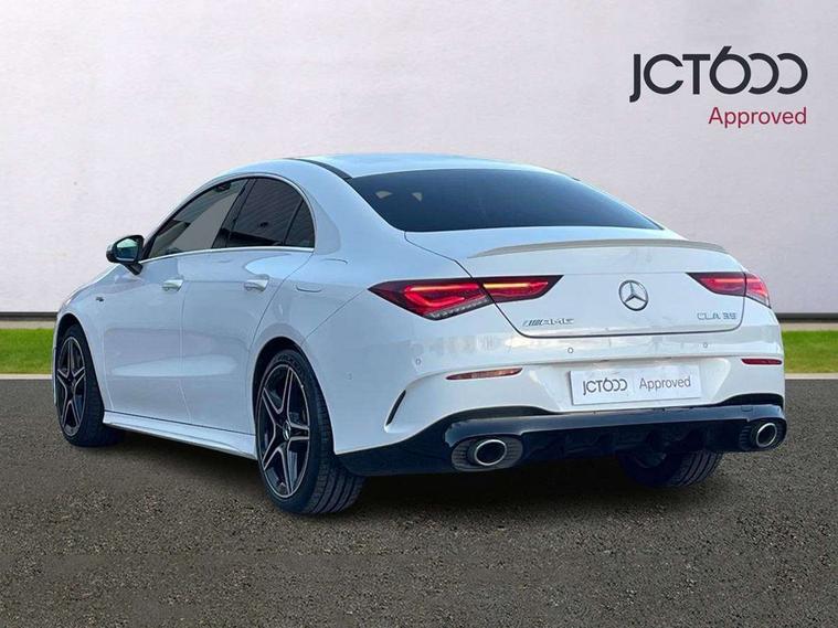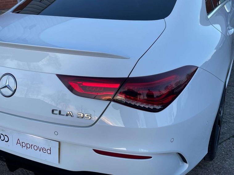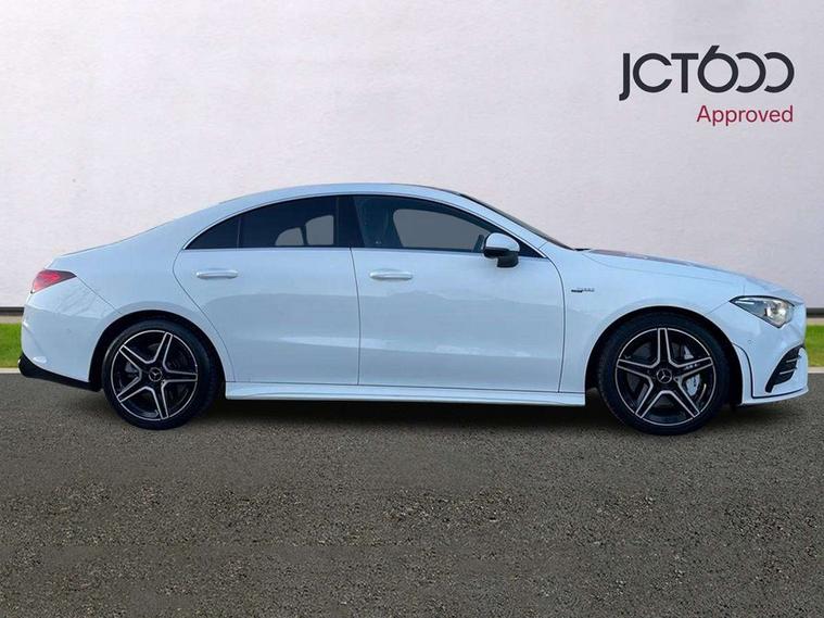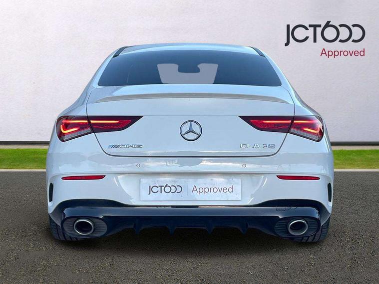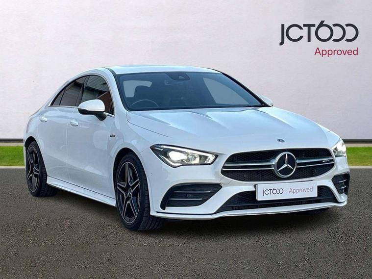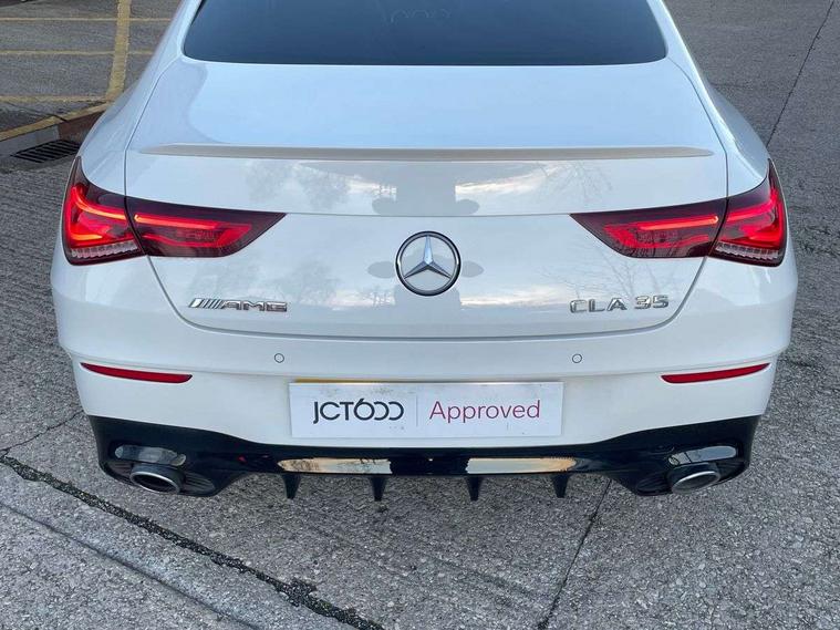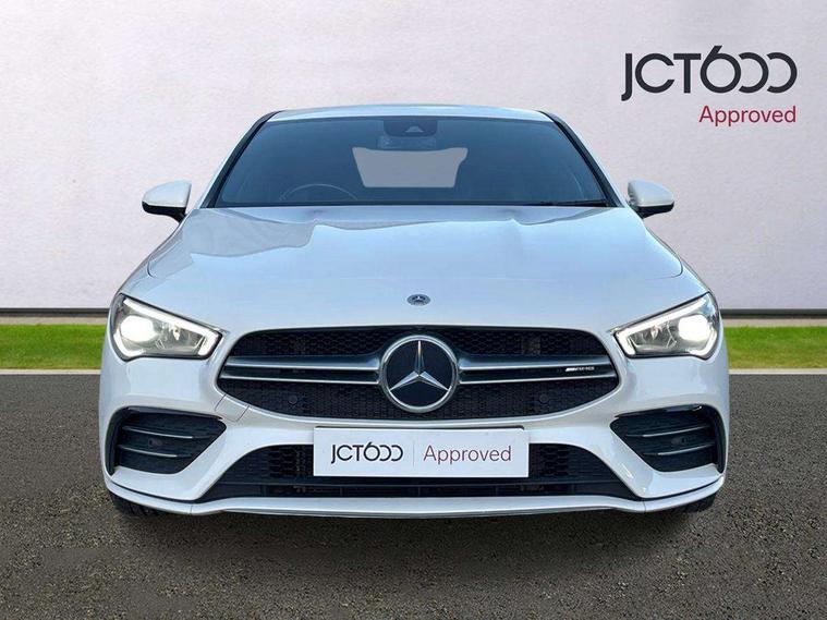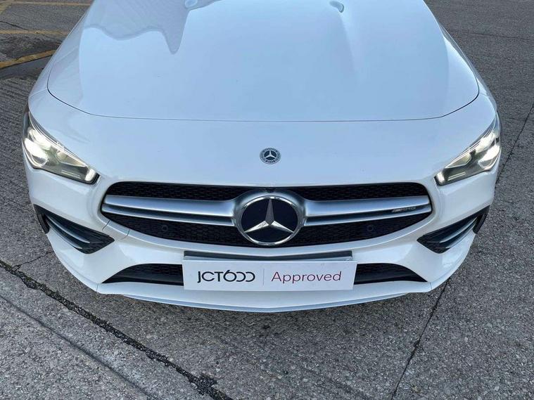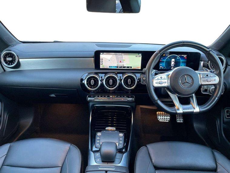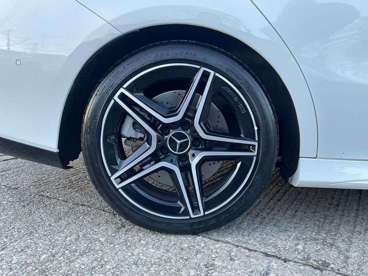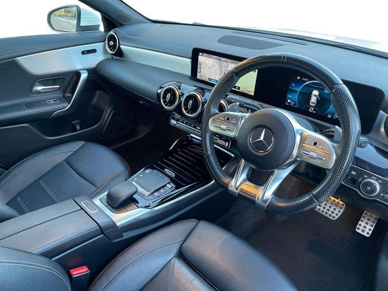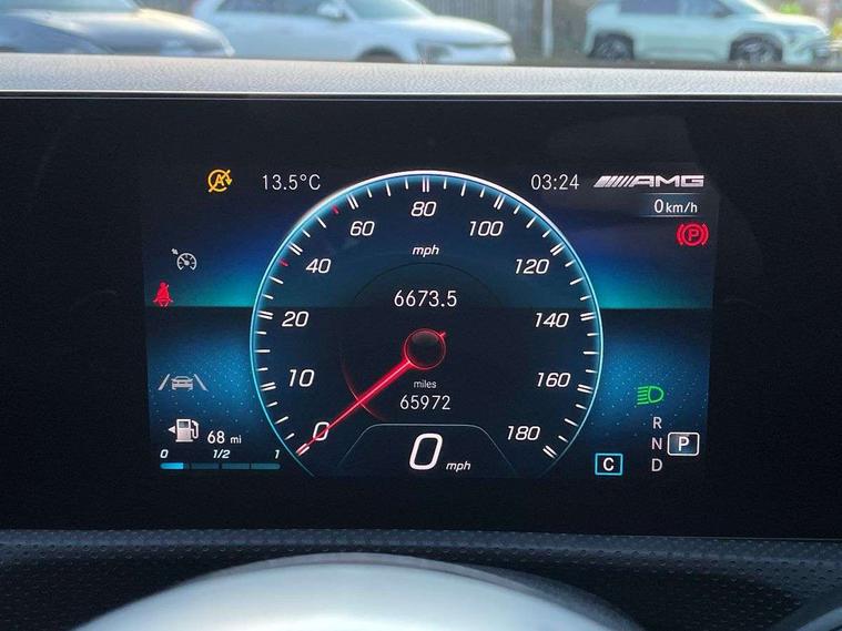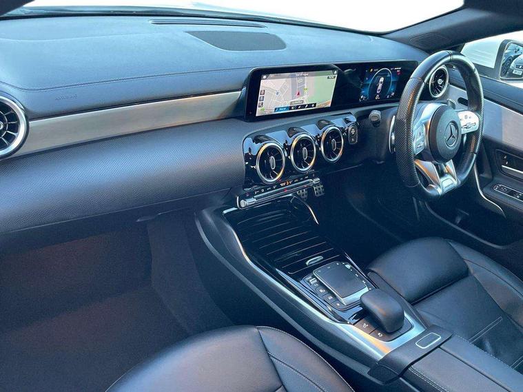 10.25 inch touchscreen central media display, 7 inch Instrument display with digital cockpit, Active lane keeping assist, Attention assist - Monitors steering behaviour and long journey fatigue, Bluetooth connection, Car wash mode, Cruise control with limiter, Digital instrument cluster with three AMG display styles and AMG menu, Direct steer system with speed sensitive power steering, DYNAMIC SELECT with driving programs (Slippery, Comfort, Sport, Sport+ and Individual), ECO start/stop function, Fluid level warning indicator for fuel, oil, coolant and washer fluid, Hard-disk navigation, Hey Mercedes Voice activation, Lamp failure indicator, Mercedes me connect including emergency call system, accident recovery, breakdown management and maintenance, Mercedes me remote services, Outside temperature gauge, Owners manual and service booklet in English, Pre-installation of private car share, Preinstallation for Mercedes Benz link, Radio aerial integrated into front and rear windshields, Service indicator (ASSYST), Smartphone integration with Apple CarPlay and Android auto, Speed limit assist, Trip computer in multifunction display with current consumption indicator, 7G-DCT 7 speed automatic transmission, AMG suspension, Rear axle multi-link, DAB digital radio tuner, MBUX multimedia system with DAB digital radio and touchpad including satellite navigation, Mercedes Benz sound system (100 W) with 6 speakers, USB (type C) ports (2) in stowage compartment and 1 in front of centre console, Adaptive brake lights, AMG body styling with AMG front apron and rear apron and visible exhaust tailpipe in chrome trim elements, AMG bodystyling side skirts, AMG Front apron with flics as air deflector elements on the outer air intakes, AMG radiator grille with twin blade lamella and AMG Lettering, AMG Rear apron with specific diffuser look with four vertical fins and two round chrome plated tailpipe trim elements with a diameter of 90 mm, AMG Sports exhaust system with two round tailpipes measuring 90 mm in diameter attached in rear apron, AMG lettering plus ribbing on the inside of the, Automatically controlled exhaust flap, Body colour bumpers, Body colour door handles, Chrome beltline strips, Chrome weather strip, Electric windows, Electrically adjustable and heated door mirrors with integrated LED indicators, Front splitter and trim elements on the louvres in the outer air inlets in silver chrome, Front wings with TURBO 4MATIC lettering, Headlamp assist automatic headlamp activation, Heated glass rear windscreen + timer control, High level LED third brake light, Interior mirror with black reading lamps and frameless, LED high performance headlamps with integrated LED daytime running lights, LED tail lamp, Privacy glass with dark tinting on rear side windows and rear window, Rain sensing windscreen wipers with two sensitivity settings, Rear fog lamp, Window line trim strip in chrome, 40:20:40 split folding rear seats with backrest, Air conditioning - Two zone thermotronic luxury automatic climate control with display, Air vents with surround in silver chrome, AMG Performance steering wheel in nappa leather, Automatic child seat recognition sensor, Black roof lining, Brushed stainless steel sports pedals with rubber studs, Floor mats with stitched AMG lettering, Front centre armrest with stowage, Front door sills with Mercedes Benz lettering, Heated front seats, Illuminated glove compartment stowage, Luggage net on driver/front passenger seat backrest, Manually adjustable front seats, Manually height and reach adjustable steering column, Rear head restraints, Silver coloured aluminium gear shift paddles on steering wheel, Sport seats with fixed head restraints, Stowage compartment in centre console with retractable cover, Sunvisors with illuminated vanity mirrors, Touchpad on center console, Twin front cupholders, Two outer rear seat isofix and top tether child seat fixing points, Light and sight pack - CLA, Mirror pack - CLA, Parking package - CLA, Seat comfort pack - CLA, Active bonnet pedestrain safety measure which detects an impact and raises bonnet by 65mm, Active brake assist includes forward collision warning system with autonomous braking, Adaptive brake assist with hold function and hill start assist, Anti-lock braking system (ABS), Black seat belts, Bonnet with power domes, Brake pad wear warning indicator, Childproof locks manually operated for rear doors and electrically operated for rear power windows, Crash responsive emergency lighting, Driver and front passenger head and sidebags, Driver and front passenger windowbags, Drivers knee airbag, Dual stage driver and front passenger airbags, Electric parking brake, Electronic stability programme with acceleration skid control, ESP curve dynamic assist, Front and rear seatbelt reminder, Front brake calipers with AMG lettering, Front passenger seat occupancy sensor, Perforated front brake discs, Three point rear seat belts, Tyre pressure monitoring system, Warning triangle and first aid kit, Keyless Go starting function, Remote central locking and crash sensor with emergency opening function, Urban guard vehicle protection system with immobiliser and interior protection, Light aluminium with longitudinal grain interior trim, 18" 5 twin spoke bi-colour alloy wheels, Summer tyres, Tirefit tyre sealant kit, Wheel arches wider for AMG wheels,