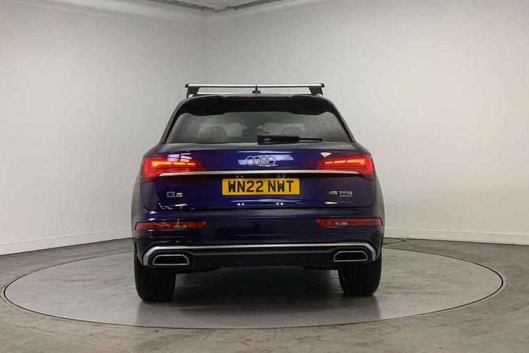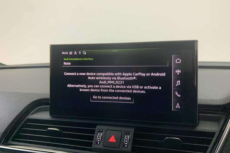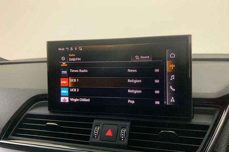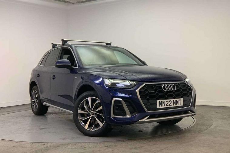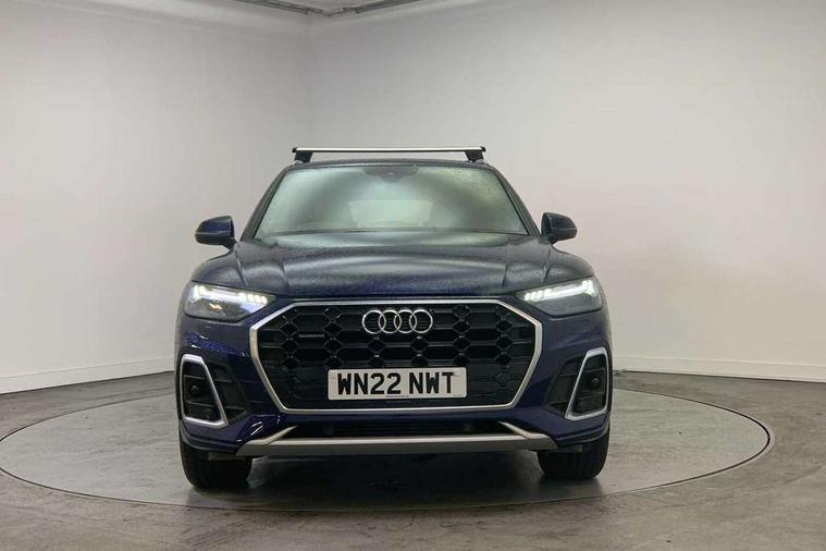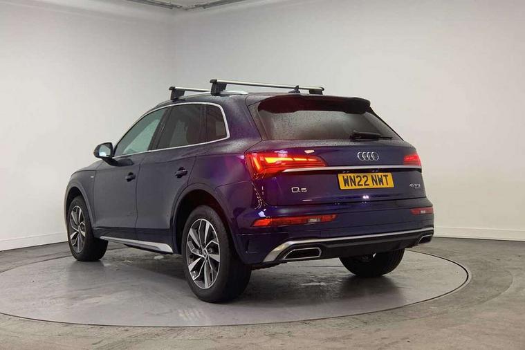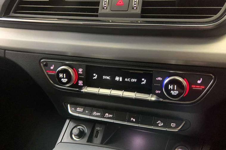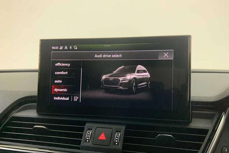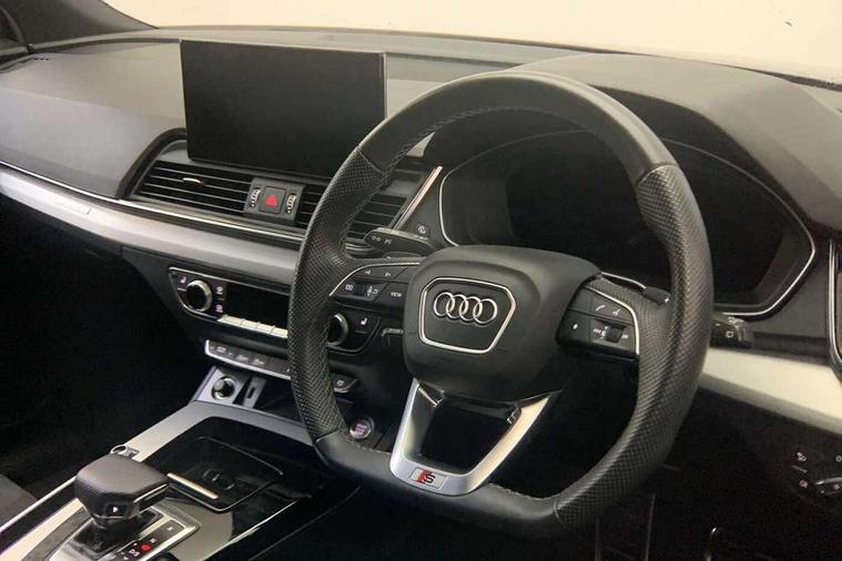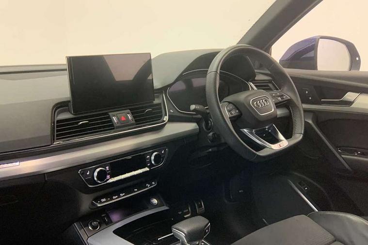 Audi connect safety and service (e-call), Audi connect with Amazon Alexa Integration, Audi drive select, Audi virtual cockpit plus with 12.3" screen and three different layout designs, Audi wireless smartphone interface, Automatic start-stop system with coasting functionality and efficiency programme, Bluetooth interface, Electro - mechanical power assisted steering, MMI navigation plus with 10.1" touch screen, Power tailgate, Reversing camera, Service interval indicator, Voice control system with Audi hotword activation "Hey Audi", Quattro on demand, S line sports suspension, 2 x USB charging port with aux input socket, DAB Digital radio, 3rd brake light, Acoustic windscreen, Aluminium roof rails, Audi matrix LED headlights with dynamic front and rear indicators, Auto dimming rear view mirror, Automatic headlights and windscreen wipers, Body colour bumpers, Body colour door mirrors, Body colour rear diffuser with matt aluminium silver surrounds, Body colour underbody protection, Chrome plated exhaust trims, Daytime running lights, Door sills in Selenite silver, Electric adjustable/heated/folding door mirrors, Front air inlet surrounds in aluminium, Front and rear electric windows, Front radiator grille in honeycomb design, Headlight washers, Lower bumpers painted in contrast Manhattan grey, Rear chrome trim strip below lights, Rear privacy glass and rear side windows, Rear side wing doors, Rear spoiler, Rear wiper, Roof bars, S Line badges on the front wings, S Line front and rear bumpers, S Line side skirts, 3 rear headrests, 40:20:40 split folding 3 rear bench seat in 2nd row with rear centre armrest, Black cloth headlining, Comfort front centre armrest, Contrast stitching on seats, steering wheel and gear lever gaiter, Deluxe 3 zone electronic climate control, Front/rear floor mats, Gear lever in black leather, Heated front seats, Height adjustable front head restraints, Height/reach adjustable steering column, Illuminated door sill trims with S logo, ISOFIX child seat mounting and top tether, Luggage compartment cover, Manual seat adjustment with 4-way electric lumbar support, Removable luggage compartment floor, Single front passenger seat, Stainless steel pedals, Sunvisors with vanity mirrors, High gloss pack - Q5, LED interior light pack - Q5, 3 point seatbelts on all seats, 6 airbags - Driver, front passenger, curtain and side airbags, Electrically operated child locks on rear doors, Electromechanical parking brake, Electronic stabilisation control including ABS, ASR and EDL, Front passenger airbag deactivation, Hill descent control, Hill hold assist, Multi collision brake assist, Pop-up bonnet for pedestrian protection, Pre sense city, Seat belt force limiter, Seatbelt monitoring, Tyre pressure warning, Warning triangle and first aid kit, Anti theft alarm, Anti-theft wheel bolts, Keyless Go access/ignition system, Matt brushed aluminium inlays,