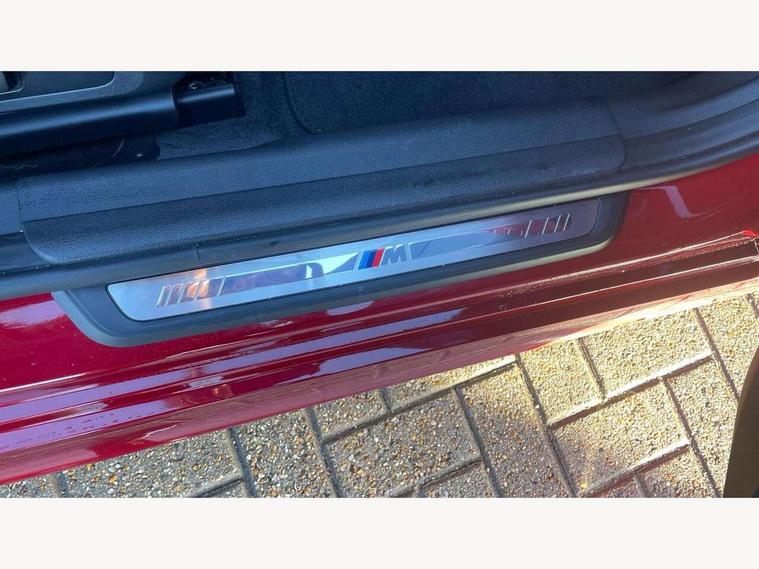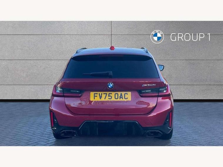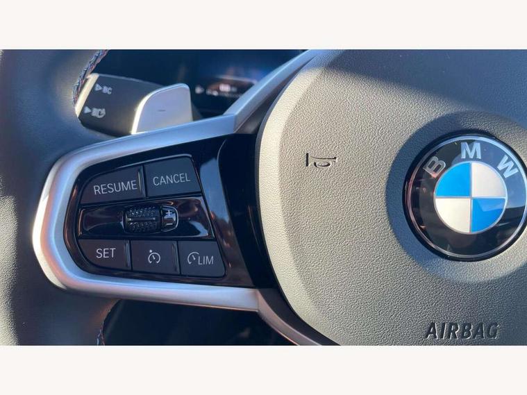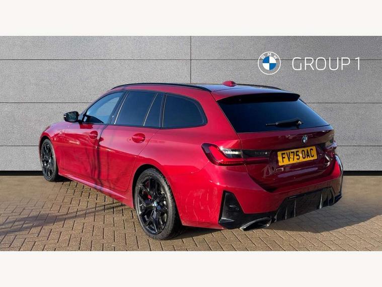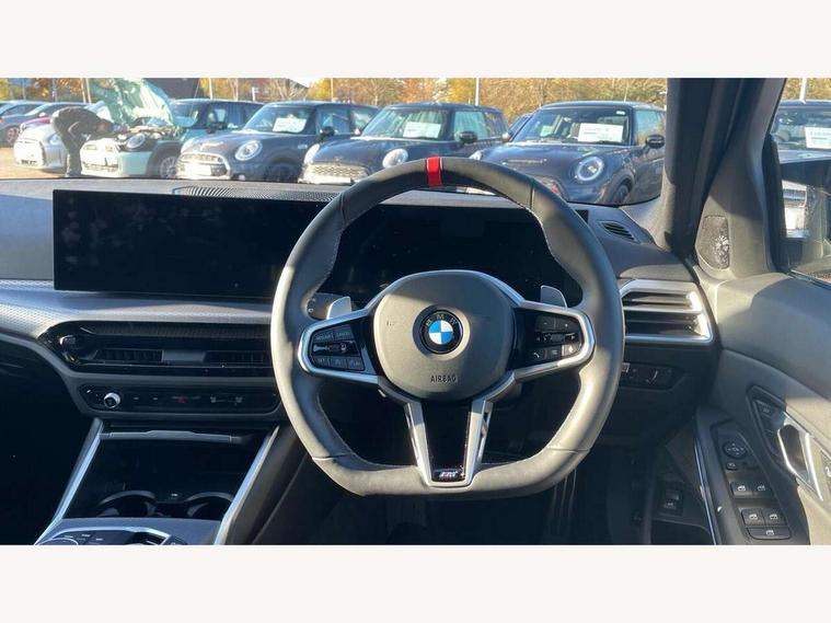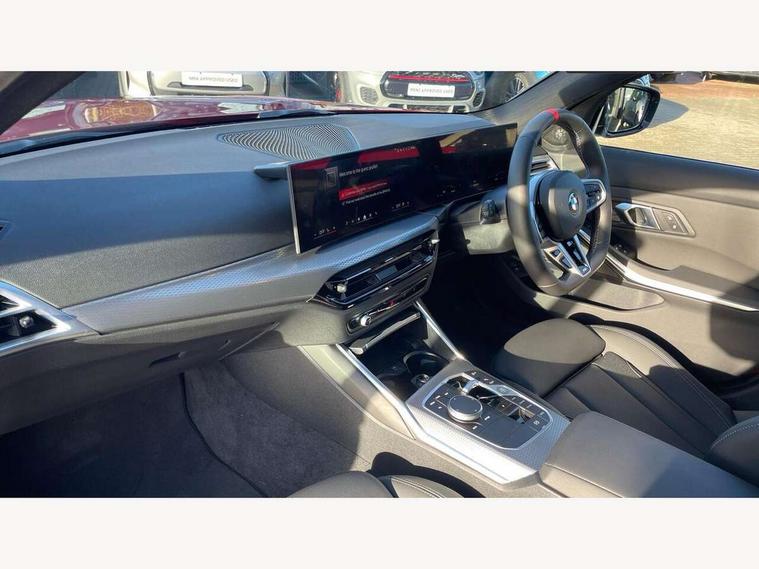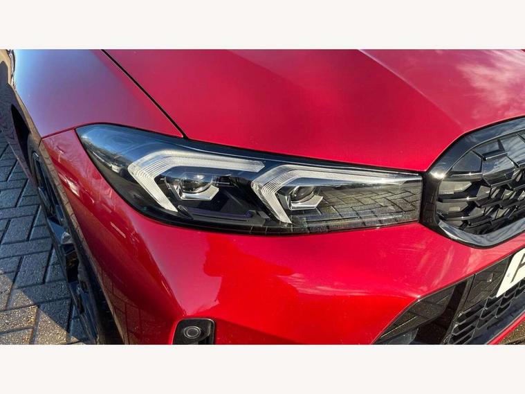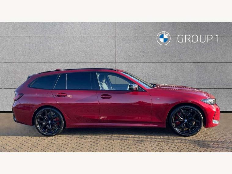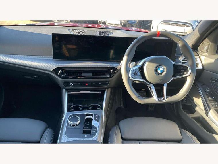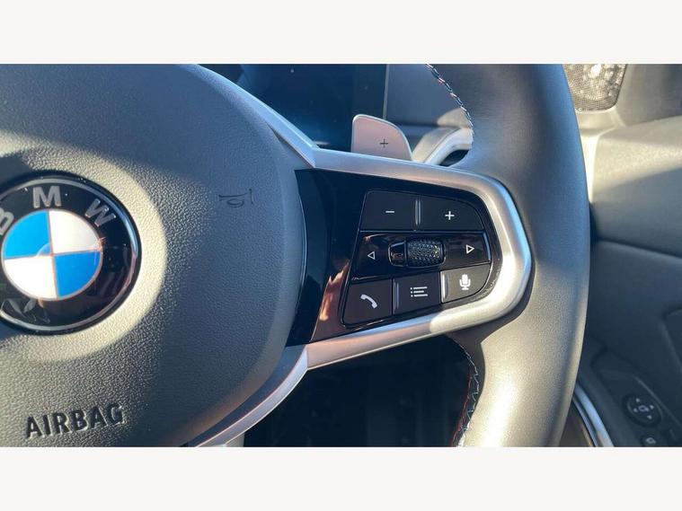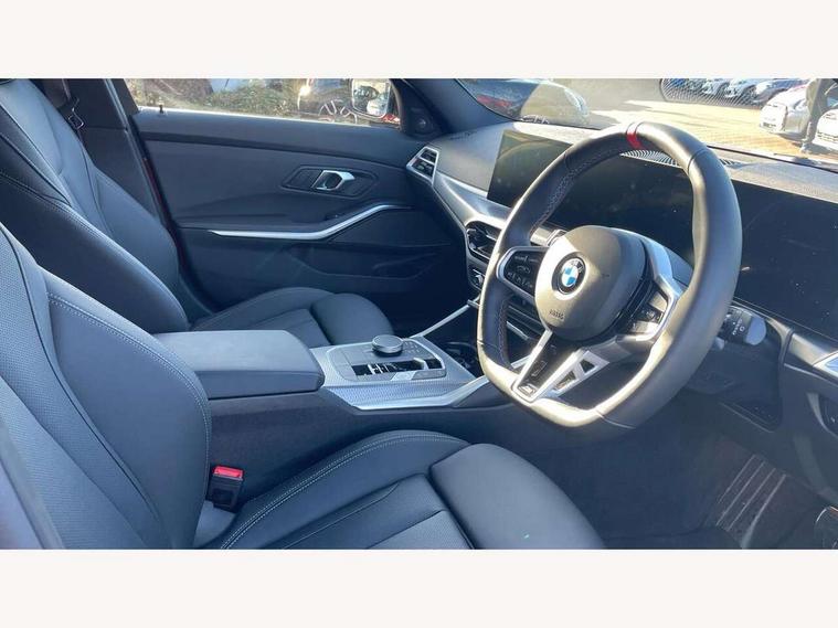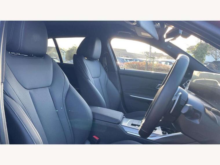 Active guard plus, Attentiveness assist, Automatic Start/stop button, Bluetooth Wi-Fi interface, BMW iDrive, BMW Teleservices, ConnectedDrive Services - last state call, Electric bootlid, Oil sensor for level and grade, Personal e-SIM, Shifting point display, Variable sport steering, 48V Mild hybrid technology, Double joint spring strut front axle, Fuel tank breather system, M Sport differential, Steptronic Sport automatic transmission with steering wheel mounted gearshift paddles launch control and xtreme drive lever control, DAB tuner, 3rd brake light, Auto dimming rear view mirror, Automatic headlight beam throw control with load dependent regulating reaction, dynamic compensation of braking dive and acceleration squat, Bi-LED Low and high beam headlights, BMW emblem, engine compartment lid and tailgate, Body colour roof fin, Door sill strips, Electric windows - front and rear, with open/close fingertip control, anti-trap facility and comfort closing, Fading support, Folding wing mirror with auto dimming, Follow me home headlight function, Front and rear bumper system with replaceable deformation elements, Front apron plastic in body colour, Fuel filler flap - right rear in body colour, Heat protection glazing on front windows and windscreen, Heated washer jets, High gloss shadow line roof rails, LED daytime running lights, LED rear lights, LED turn indicator, Licence plate panel integrated into front bumper and tailgate, M high gloss shadow line exterior trim, Matt black B-pillar finsher, Matt black window recess cover, Model designation on right side of tailgate, One piece front bumper cover including towing eye cover in body colour, Rain sensor with automatic headlight activation, Rear side wing doors, Rear wiper, Reversing lights, Side frame decorative moulding black matt, Sun and heat protection glass dark tinted on rear windows and windscreen, Trailer stabilisation logic, Welcome lights in interior and door handle area, 12V power socket in front storage compartment, 2 front cupholder in centre console with clamping elements and matt black inlay, 3 seat bench in 2nd row, 3 spoke M Sport multifunction flat bottom leather steering wheel, 3 zone automatic air conditioning, 40:20:40 split folding rear seat with loading system, Ambient inside door handle light, Ambient light design projected onto the left and right entering and exiting area, Ambient lighting front and rear with 9 selectable colours, Ambient storage compartment lighting in the centre console, Anthracite headlining, Armrest integrated in front and rear door trim + front centre console armrest, BMW ID, Contour lighting in instrument panel and door trim panel, Cruise control operation in steering wheel, Driving experience mode switch, Dynamic ambient lighting for welcome, goodbye, open doors, phone call, Electric memory seats, Folding rear centre armrest with 2 cupholders, Front ambient footwell lighting, Front and rear headrests, Front and rear velour floor mats, Front reading light, Heated front seats, Height adjustable mechanically and infinitely variable steering column, Illuminated armrest storage compartment, Illuminated glove compartment, Illuminated luggage compartment, Lashing eyelets in luggage compartment, Single front passenger seat, Sunvisors with illuminated vanity mirrors and ticket pocket, Toolkit located in luggage compartment, Connected pack professional - 3 Series Saloon/Touring, Interior and exterior mirror pack - 3 Series Touring/Saloon, M sport exterior styling pack - 3 Series Saloon/Touring, 3x3 point rear seatbelts, BMW emergency call, Child locks on rear doors, Crash sensor activating of airbags, Unlocking doors, hazard warning lights, interior light, safety battery terminal, Drive-off assistant, Driver and front passenger with seat occupancy detection for driver's and passenger side, Driver and passenger side airbags, body protection at side and airbags deploy from seat backrests, Dry braking, Dynamic brake control, Dynamic stability control + (DSC+) - Anti-lock Braking System (ABS) with brake assist and cornering brake control + Automatic Stability Control (ASC), Dynamic Traction Control - DTC, Electric parking brake including automatic hold function and automatic release of the parking brake when driving off, Electronic differential lock control (EDLC), Front airbag deactivation, Front airbags for driver and front passenger, Head airbags in 1st and 2nd row, head protection at side, curtain airbags open from headliner above 1st and 2nd row, Plastic fuel tank, Side impact protection, Tyre pressure sensors, Ventilated front and rear disc brakes, Warning triangle and first aid kit, Alarm system, Centre lock switch, Closing system with central locking, Electronic vehicle immobiliser, Locking wheel bolts, Tyre repair kit,