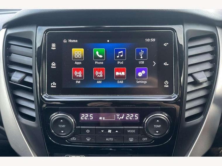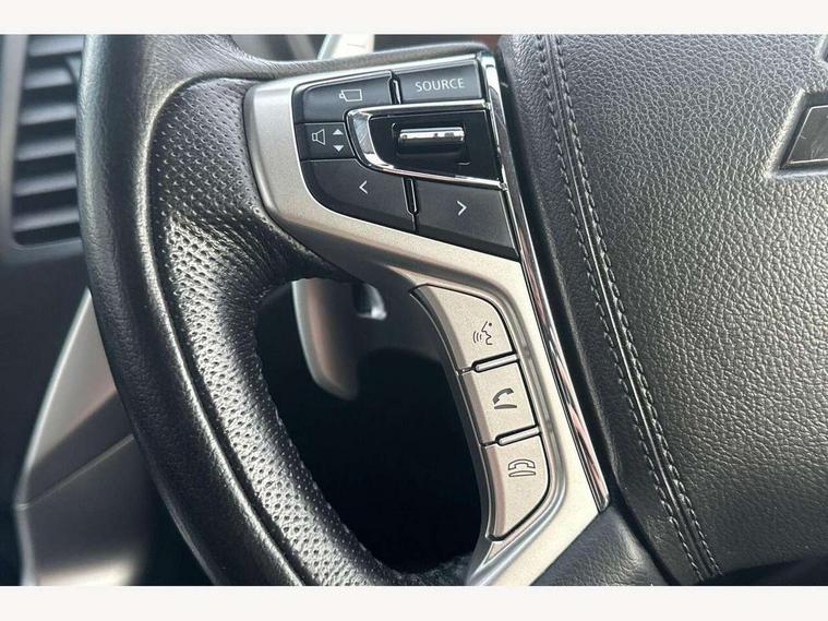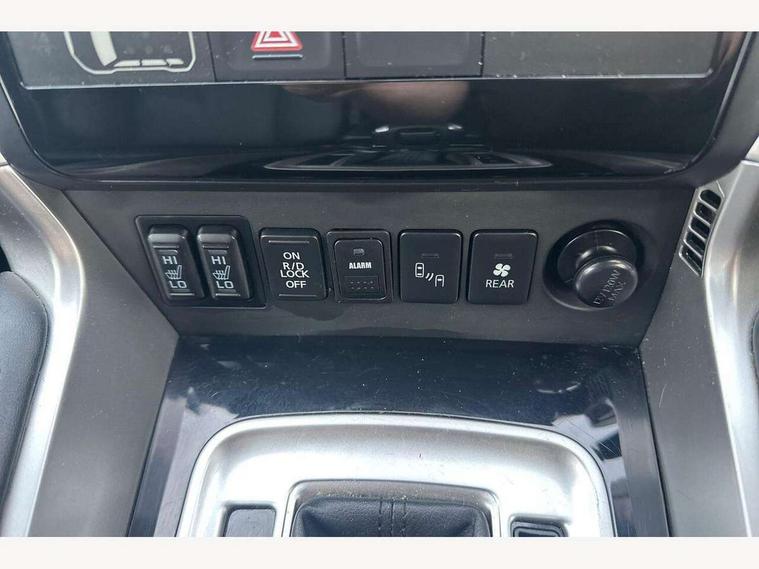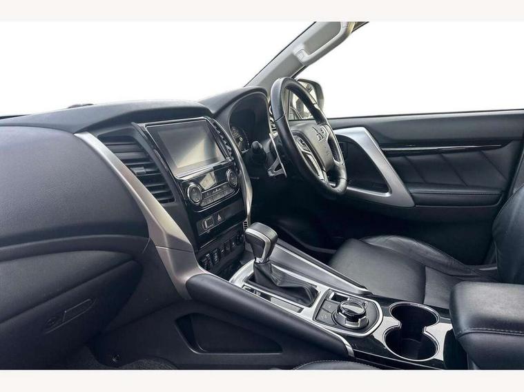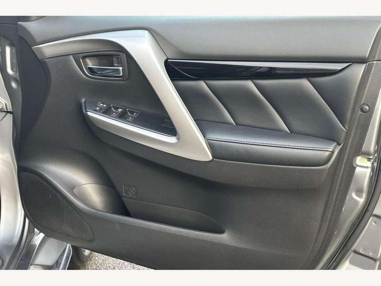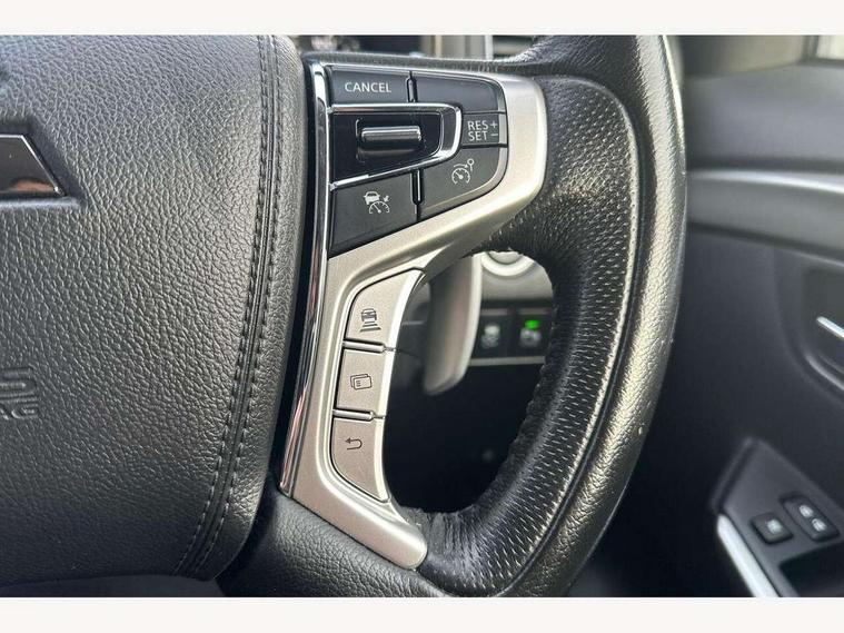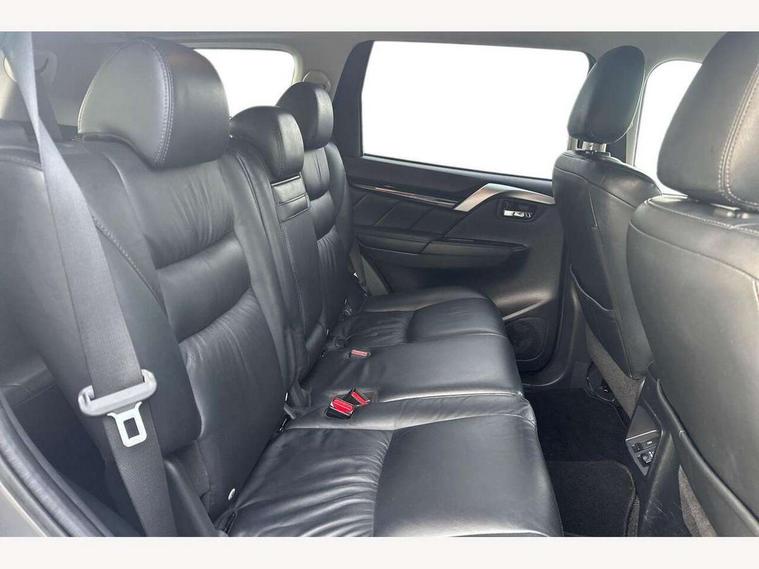 360 degree parking camera, 4WD drivetrain mode indicator, 7" touch screen, Adaptive cruise control, Android Auto, Apple CarPlay preparation, Blind spot warning, Emergency stop signalling system, Engine start/stop button, Exterior temperature gauge, Front and rear parking sensors, Lights on warning, Off-road mode, PAS, Remote fuel flap release, Smartphone link audio display, Unintended acceleration mitigation system, Diesel particulate filter, Rear differential lock, Super Select 4WD transmission, 2 additional tweeters, 510W Mitsubishi power sound system, Bluetooth with music streaming, DAB Digital radio, Radio with 8 speakers, Rear USB port, USB port, Auto dimming rear view mirror, Automatic rain sensors, Chrome door mirrors and handles, Chrome front grille, Colour keyed front and rear bumpers, Dusk sensing headlights, Electric folding mirrors with indicators, Front and rear electric windows, Front and rear fog lamps, Front skid plate, Headlamp washer, High mounted rear stop lamp, LED daytime running lights, LED headlamps with auto levelling, LED rear combination lamp, Rear mudflaps, Rear windscreen wiper with washer, Side and rear window privacy glass, Silver roof rails, Silver side steps, Trailer stability assist, Variable intermittent front wash/wipe, Visible VIN plate, Window mounted aerial, 230V socket in centre console, 3rd row head restraints, Chrome interior door handles, Dual zone climate control, Floor + luggage area carpets, Front accessory power socket, Front armrest with floor console box, Front cupholders, Front door pocket bottle holders, Front door pockets, Front power seats, Front seat and rear pockets, Front sunvisors with passenger vanity mirrors, Gearshift paddles, Glovebox, Heated front seats, Height adjustable front headrests, Height adjustable rear headrests, Isofix rear child seat preparation in 2nd row, Leather steering wheel, Leather upholstery, Leather wrapped gear shift knob, Luggage area lamp, Luggage cover, Rear air conditioning, Rear armrests with cupholder, Reclining rear seats, Steering wheel audio controls, Tilt/telescopic steering column adjustment, 7 three point seatbelts, ABS/EBD, Active stability and traction control, Brake assist function, Childproof rear door locks, Electronic parking brake, Forward collision mitigation system, Front passenger airbag deactivation, Front seatbelt pretensioner, Front, side, curtain and knee airbags, Hill descent control, Hill start assist, Reinforced Impact safety evolution (RISE) body safety system, Seatbelt warning lamp, Tyre pressure monitoring system, Central door locking, Engine immobiliser, Keyless entry and start operation system, Locking wheel nuts, Steering lock, Thatcham Cat.1 alarm, Leather look vinyl inserts on door trim, 18" alloy wheels, Full size spare wheel,