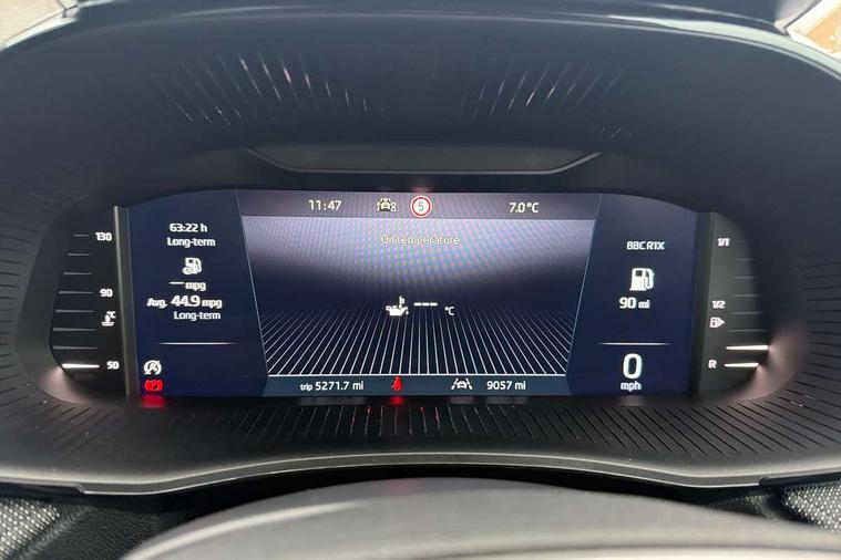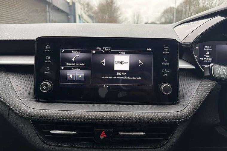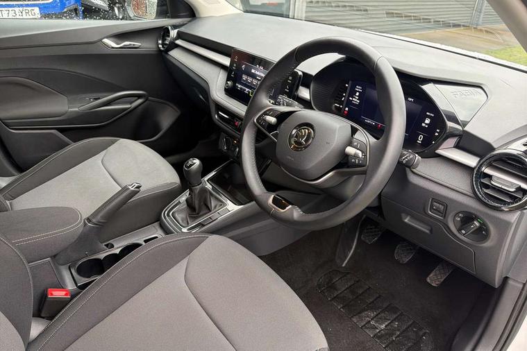 Advanced driver attention and drowsiness monitor, Bluetooth connection, Electromechanical power steering, Exterior temperature gauge, Service interval indicator, Traffic sign recognition, Virtual cockpit with 10.25" colour display, Wireless SmartLink for Apple CarPlay and Android Auto, 6 Speakers (4 in front and 2 in rear), Auxiliary socket for external MP3 player, DAB digital radio reception, Body coloured bumpers, Dimming rear view mirror with black frame, Door mirror integrated indicators, Front and rear electric windows, Front window wiper intermittent control, Headlight range control - Automatic, Ice scraper in fuel cap, LED daytime running lights with coming and leaving home feature, LED rear lights, Privacy glass, Rear LED fog light, Rear side wing doors, Rear window wiper with washing nozzles, Roof mounted spoiler, SKODA tailgate lettering in chrome, Third brake light, 2 reading lights in front and 2 reading lights in rear, 3 rear headrests, Backrest split and folding, Central console with removable cup holder and storage box, Chrome handbrake release button, Fabric upholstery, Front centre armrest, Gearshift knob/handle in leather, Grain satin black interior door handles, Hand brake lever handle in leather, Height adjustable front headrests, Height adjustable front seats, Height adjustable steering wheel, ISOFIX and TopTether anchorage points to the outer rear seats, ISOFIX and TopTether on the front passenger seat, Luggage compartment lighting, Manually adjustable lumbar support in front seats, Pollen filter, Rear seat bench unsplit, Single front passenger seat, Storm grey headlining, Sun visors with mirror and airbag label on passenger side, Textile floor mats, Ticket holder, Umbrella in drivers door, 3-point height adjustable front seats belts with pretensioner and force limiter, Automatic warning lights in case of crash, Driver and passengers airbag with switch off function, e-Call+, ESC including ABS, MSR, ASR, EDS, HBA and XDS, Front and rear seat belt warning, FRONT ASSIST (AEB City and AEB Inter Urban), Front side airbags, Head airbags, One tone horn, Pedestrian protection, Three rear 3-points safety seat belts with pretensioner and force limiter including stop function for outer rear seat belts, Tyre pressure monitoring system, Anti-theft alarm system including immobiliser, interior monitoring, backup horn, and towing protection, Central locking with radio remote control, interior controls, SAFE function and 2 foldable keys, Colour Edition air vents, Grain satin black central console cover, Metallic grey upper decorative trim, Satin black door and side trim panel in front, Textile Kota grey lower decorative inserts, Anti-theft wheel bolts protection, Super-low rolling resistance tyres,