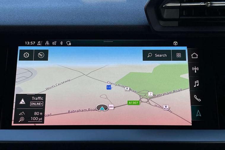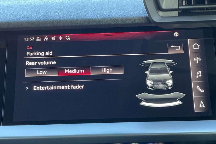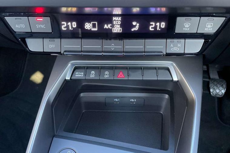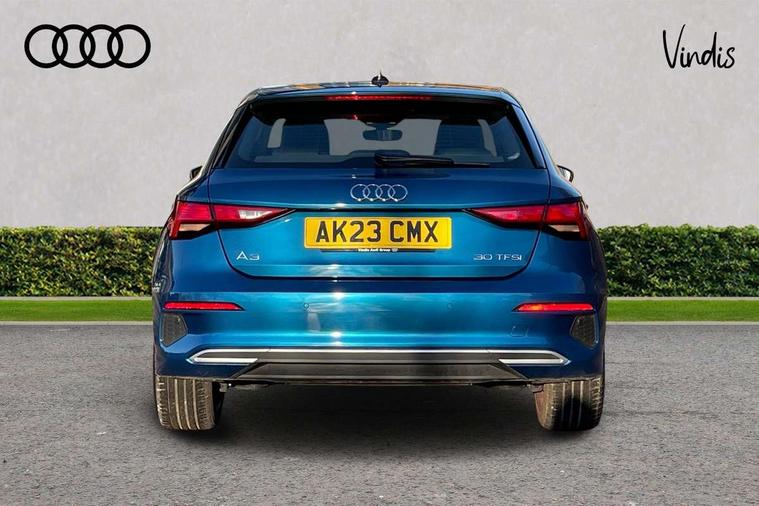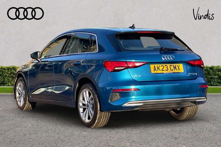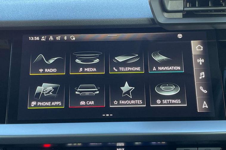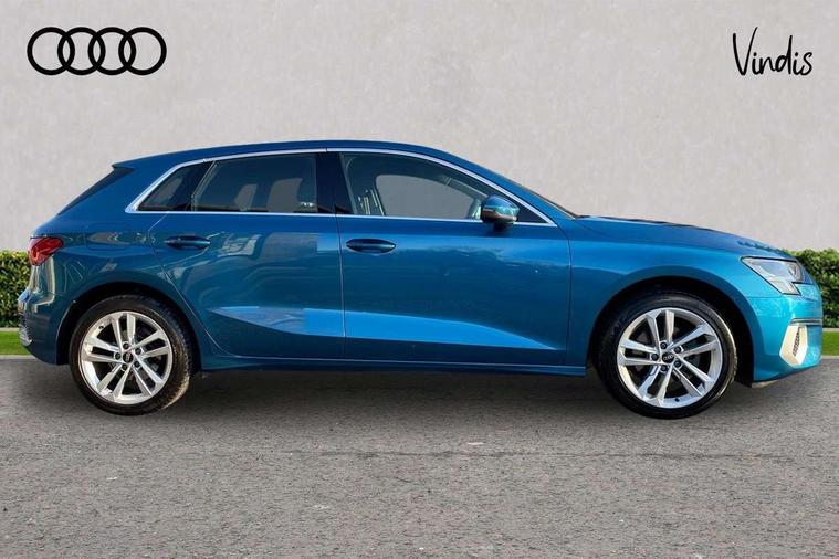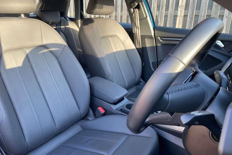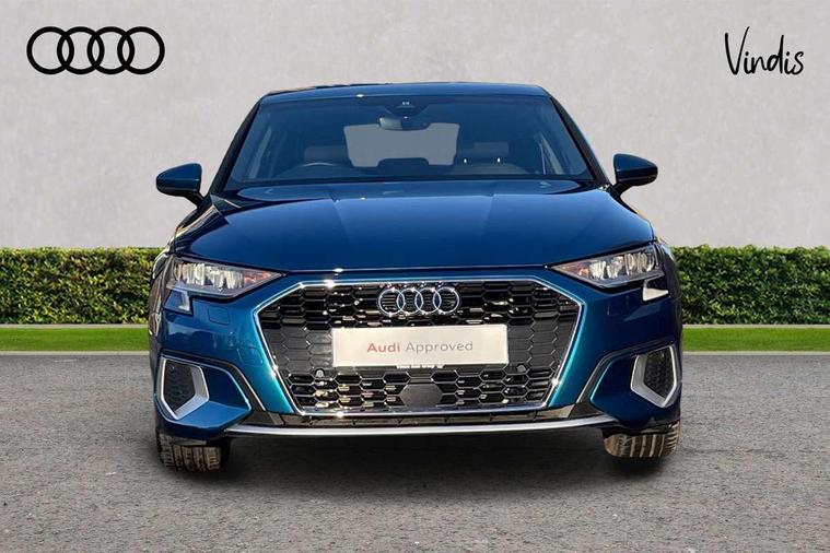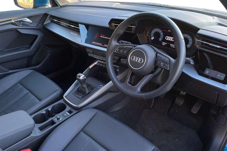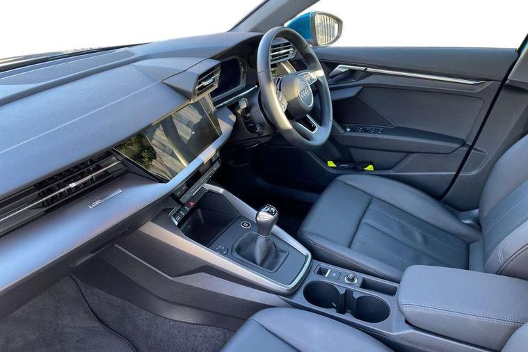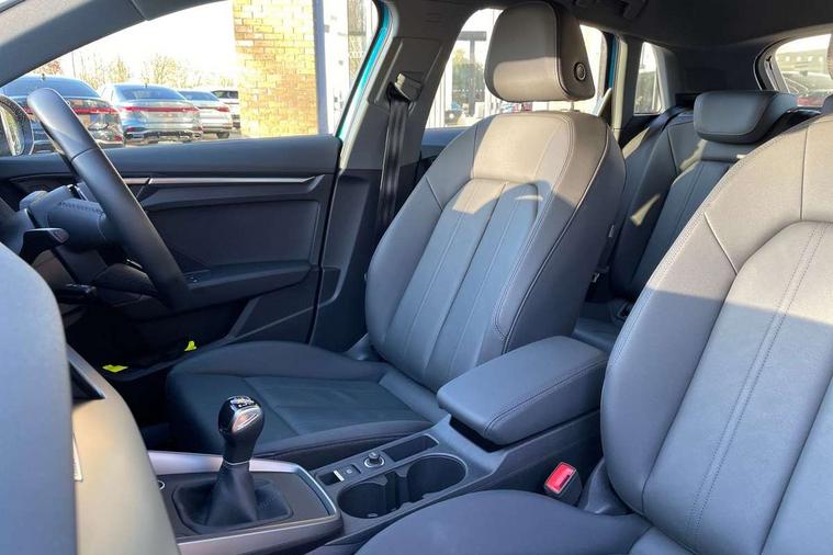 Audi drive select (Auto, Comfort, Dynamic and Individual), Audi smartphone interface, Audi Virtual Cockpit - 10.25" digital and colour instrument cluster, Automatic start/stop system with recuperation, Bluetooth interface, Camera based traffic sign recognition, Collision avoidance assistant, Cruise control, e-Call (emergency call), Electromechanical power speed sensitive steering, Lane departure warning system, MMI Navigation Plus with high resolution 10.1" colour touch screen display, Rear parking sensors, Service indicator, Trip computer, Voice control system with natural language interaction, Standard suspension, 2xUSB-C connection with data and charging functions, 6 passive loudspeakers, DAB Digital radio, 3rd brake light, Acoustic glass windscreen, Aluminium window trim, Auto dimming frameless rear view mirror, Body colour exterior mirrors, Body colour roof spoiler, Electrically adjustable/heated/folding/auto dimming door mirrors with integrated LED indications + kerb view function for passenger side, Front electric windows, LED daytime running lights, LED headlights and halogen rear lights, Light and rain sensors, Rear electric windows, Rear side wing doors, Rear window, rear door windows and rear side windows in clear glass, Rear wiper, 12V socket and storage compartment in front centre console, 3 seat bench in 2nd row, 3 spoke leather multifunction steering wheel, 4 way electrically adjustable lumbar support for driver and front passenger, 60/40 split folding rear seat bench, Dual zone electronic climate control, Front and rear headrests, Front centre armrest, Front door sill trims with aluminium inlay, Front/rear floor mats, Height and reach adjustable steering wheel, Interior lighting - Front and rear roof module including reading lights, glove compartment light and right hand side, Interior lighting - glove compartment light and right hand side, Luggage compartment floor covering, Manual boot compartment lid, Manually adjustable front seats, Routine cloth upholstery with front sports seats, Seat side bolsters, Single front passenger seat, Steel grey cloth headlining, Aluminium interior elements pack - A3 Sportback, LED interior lighting pack - A3 Sportback, Sport styling pack - A3 Sportback, 3x3 point rear seat belts, Driver and front passenger airbag with passenger airbag deactivation, Electronic Stabilisation Control (ESC) including ABS, ASR and EDL, First aid kit with warning triangle and 2 safety vests, Front side airbags with head airbags and interaction airbag, Pre-sense front with pedestrian and cyclist detection, Seatbelt monitoring, Tyre pressure loss indicator, Anti theft alarm, Anti-theft wheel bolts, Electronically operated child lock, Immobiliser, Remote control central locking, Inlays with silk effect paint in platinum grey,