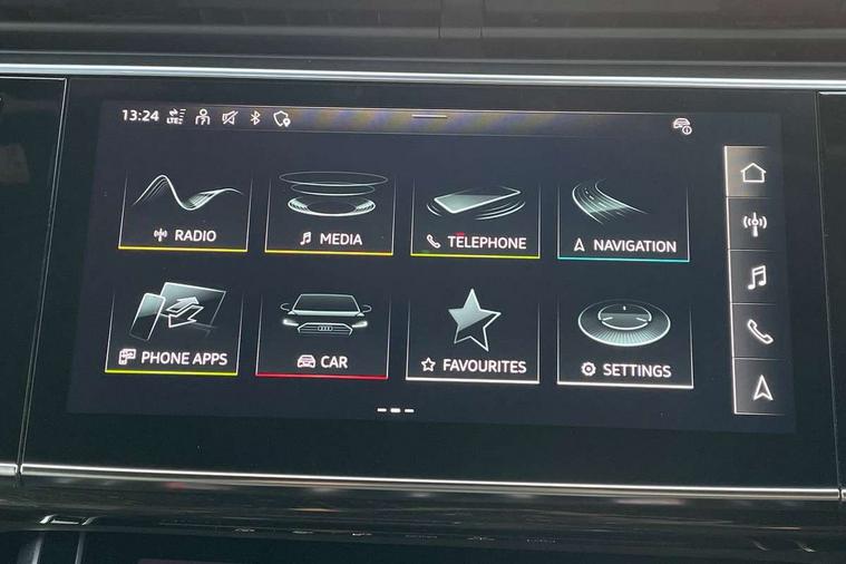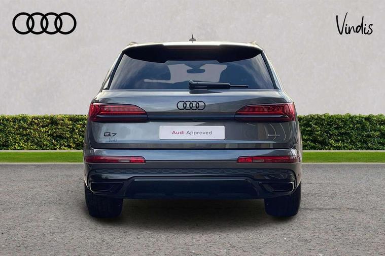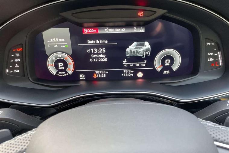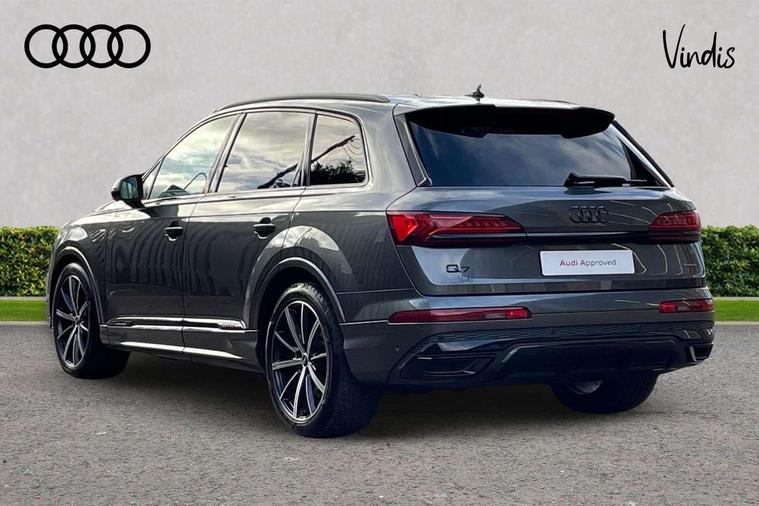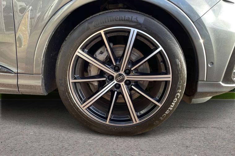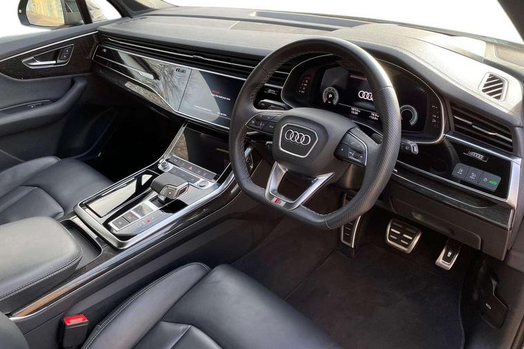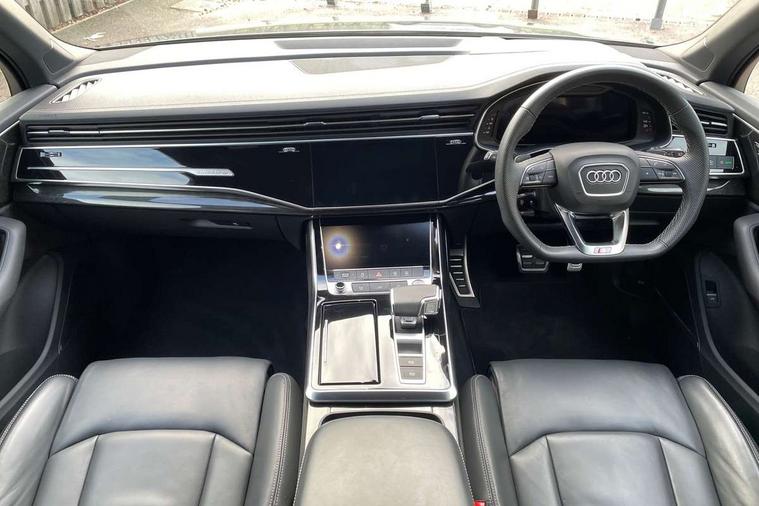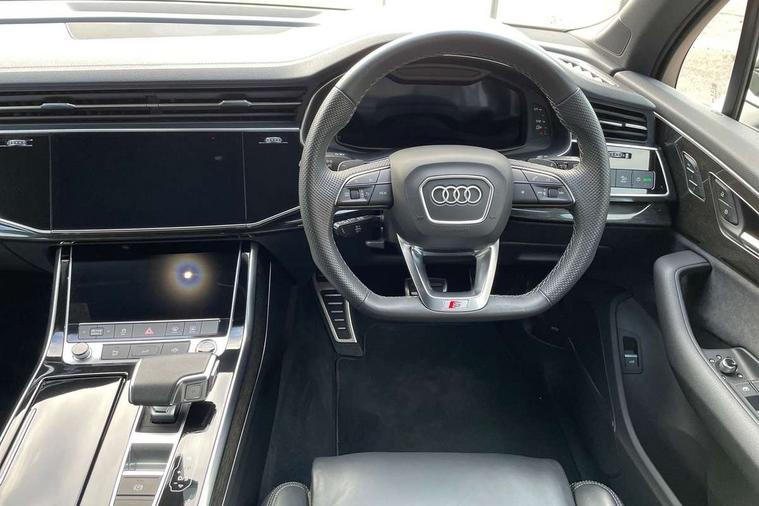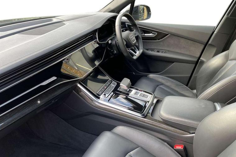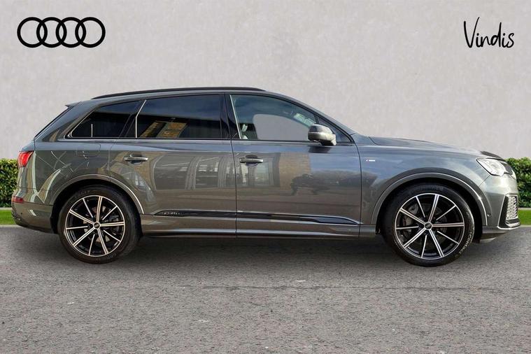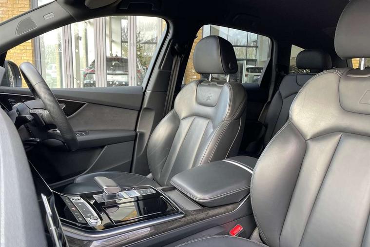 Audi connect safety and service (e-call), Audi connect with Amazon Alexa Integration, Audi drive select (Auto, Comfort, Dynamic, Individual, Off-road and All road), Audi phone box light with wireless charging, Audi smartphone interface includes wireless Apple carplay/Android Auto, Audi virtual cockpit - 12.3" high-resolution LCD display with fully customisable instrument cluster, Bluetooth interface, Camera based traffic sign recognition, Electromechanical steering, MMI navigation plus with MMI touch screens includes 10.1" and 8.6" screens with haptic feedback, Natural voice recognition, Parking system plus with 360 degree display (front, rear and side sensors) - acoustic and visual park assist system, Power operated tailgate, Rear view camera, Start/stop system, 48V Mild hybrid technology, Adaptive air suspension, Quattro all wheel drive with self locking centre differential, Audi music interface - front 2 USB-C ports with charger and data functions, Audi sound system with 6 channel amplifier, 180 watt amplifying capacity and 10 loudspeakers including subwoofer, DAB digital radio module, 3rd brake light, Aluminium roof rails, Aluminium window trim, Auto dimming frameless rear view mirror, Body coloured door mirrors, Bumpers in contrast paint scandium grey finish includes door trim and wheel arch trim strips, inlays in door strip contain quattro embossing, Dark tinted Matrix LED headlights with dynamic front and rear indicators, Electrically adj heated/folding + automatically dimming exterior mirrors with memory + automatic kerb side function for passenger side exterior mirror, Heat insulating glass in windshield, Integrated LED indications in door mirrors, LED daytime running lights, LED rear tail lights, Privacy glass - dark tinted rear and rear side windows from B-pillar backwards, Rear side wing doors, Rear wiper, S Line badge on wings, S line bumpers in full body colour paint finish, S line roof spoiler, S line styling side ventilation grilles and side skirts, 2 seat bench in 3rd row, 2 zone automatic climate control, 3 seat bench in 2nd row, 7 seat layout with ISOFIX points for the front passenger seat and rear passenger seat, Black cloth headlining, Comfort front centre armrest, Electric adjustable front seat with 4 way lumbar support, driver memory functionality, Folding rear seats, Front head restraints, Front/rear floor mats, Heated front seats, Illuminated door sill trims with S logo, LED interior ambient lighting, Luggage compartment cover, Luggage compartment sill protection in stainless steel, Rear head restraints, Single front passenger seat, Stainless steel pedals, Sunvisors with illuminated vanity mirrors, Tool kit, 3 point seatbelts on all rear seats, Audi pre sense front, Child locks on rear doors, Driver and front passenger, front side and curtain airbags, Electromechanical parking brake, Electronic Stabilisation Control (ESC) including ABS, ASR and EDL, Extended pedestrian protection measures, Hill hold assist, Seatbelt monitoring, Tyre pressure loss indicator, Warning triangle and first aid kit, Anti theft alarm, Anti-theft wheel bolts and wheel loosening detection, Keyless Go, Remote central locking, Darkened matt brushed aluminium inlays, Tyre repair kit,