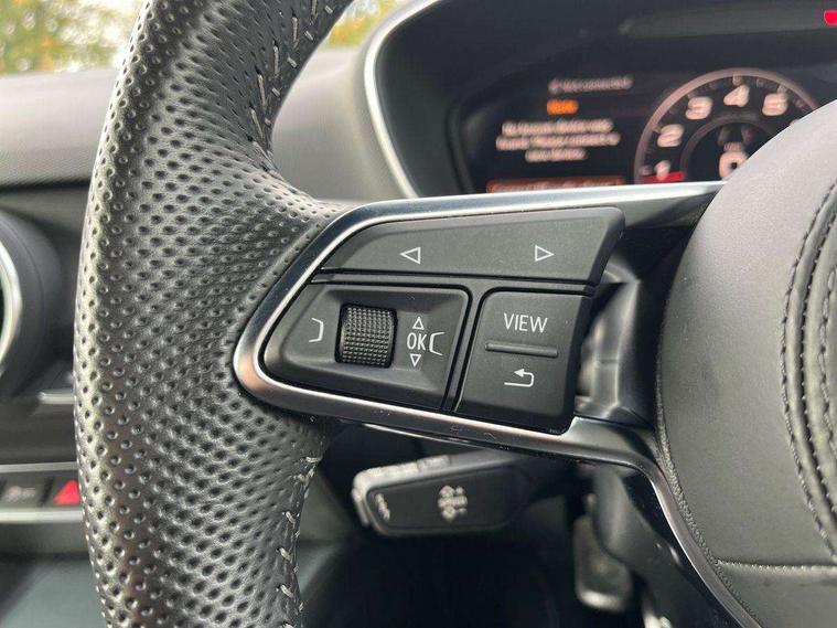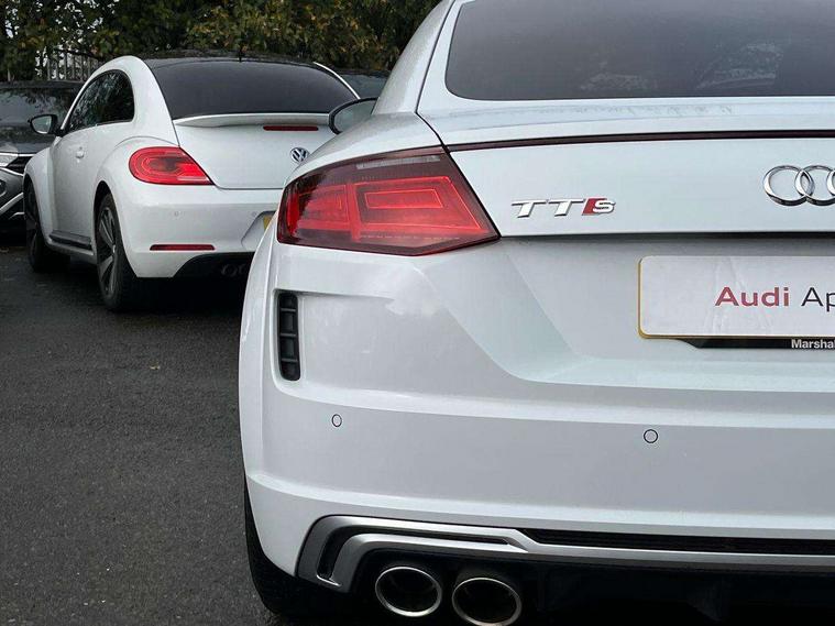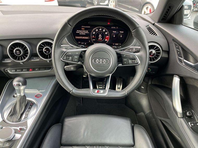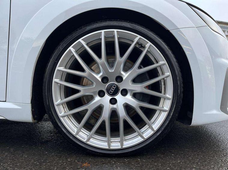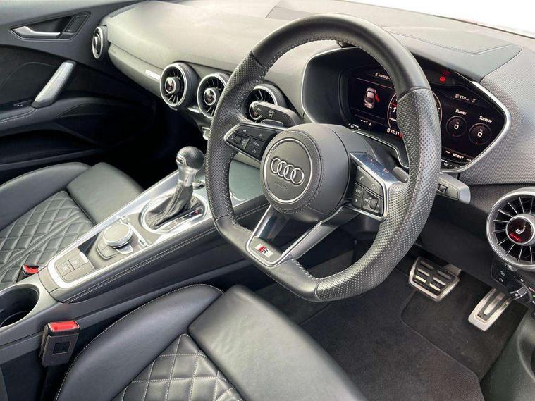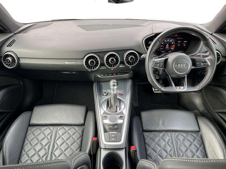 Audi active lane assist, Audi connect, Audi drive select with 4 Pre configured modes, Audi phone box, Audi Virtual Cockpit with sport gauge, Cruise control + speed limiter, MMI Navigation plus, MMI touch panel, Mobile phone preparation with bluetooth interface, Progressive power assisted steering, Service interval indicator, Start/Stop system with energy recuperation, TP memo, Audi magnetic ride, TTS suspension, AM/FM radio, Audi music interface, Bluetooth audio streaming, DAB Digital radio, MMI Radio with CD player and SD/XC card slot, Aluminium door mirror housings, Audi Beam uses LEDs to project the Audi Sport logo, Auto dimming rear view mirror, Auto headlight range control, Body colour bumpers, Electric folding door mirrors, Electric front windows, Green tinted heat insulating glass, Headlight wash system, LED daytime running lights, LED headlights with LED rear lights + dynamic rear indicators, Light and rain sensors, Platinum grey front grille, Platinum grey rear diffuser, Retractable rear spoiler, S body styling, Sunband for windscreen, 12V socket, 3 spoke flat bottomed high multi-function leather sport steering wheel with gearshift paddles, 4 way electric lumbar support for driver and front passenger, Black headlining, Deluxe auto air conditioning with integrated digital display, Door sill trims with aluminium inlay and TTS logo, Extended aluminium look with stainless steel pedals, Front centre armrest, Heated front seats, Height adjustable driver's seat, Height adjustable front head restraints, Height/reach adjust steering wheel, Interior elements in quartz anthracite, ISOFIX child seat mounting for front passenger seat with airbag deactivation, Rear head restraints, Rear top tether child seat ISOFIX attachment, Split folding rear seat, Tool kit, Top tether anchor plate for isofix child seat, Leather pack - TTS, LED interior light pack - TT/TT RS, Non smoking pack - TT/TT RS, 3 point front seat belts, ABS, ASR traction control, Brake energy regeneration, Curtain airbags, Driver and front passenger airbag with front passenger airbag deactivation, EDL traction control, Electromechanical parking brake, ESP, First aid kit, Front side airbags, Head airbags, Hill hold assist, Seatbelt warning, Tyre pressure warning, Warning triangle, Anti theft alarm, Anti theft wheel bolts, Immobiliser, Keyless Go, Remote central locking, Matt brushed aluminium inlays, Tyre repair kit,