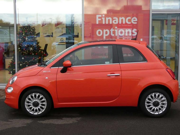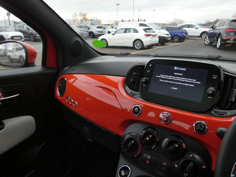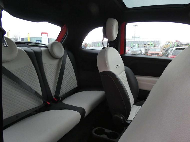 Apple car play/Android Auto, Cruise control, E-call, External temperature gauge, Power assist steering, Rear parking sensor, Speed limiter, Stop/start system, Trip computer, 4 speakers, 7" HD Touchscreen Radio, Bluetooth, USB and DAB, Rear speakers, 3rd brake light, Auto headlights, Body colour bumpers, Body coloured electrically adjustable door mirrors, Chrome plated exterior door handles, Dolcevita badge on fender, Dusk and rain sensors, Electric front windows, Fixed glass sunroof with sunblind, Front fog lights, Halogen headlamps, Heat insulated glass, Heated rear windows with wash wipe, LED daytime running lights, Rear side wing doors, Rear wiper, 1 passenger grab handle, 2 seat bench in second row, 50/50 split folding rear seats with height adjustable rear headrests, Air conditioning, Auxilliary 12V power socket, Chrome kit, Front headrests, Height adjustable drivers seat, Height adjustable steering wheel, Isofix child seat preparation, Single front passenger seat, Techno leather steering wheel with audio controls, 7 airbags - Driver, passenger, side, window and drivers knee airbags, ABS/EBD, ESC + ASR/MSR + HBA + Hill holder, Passenger airbag deactivation system, Traction control, Tyre pressure monitoring system, Automatic door locking, Immobiliser, Locking fuel filler cap, Remote central locking, 15" Alloy wheels,