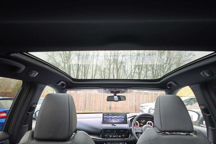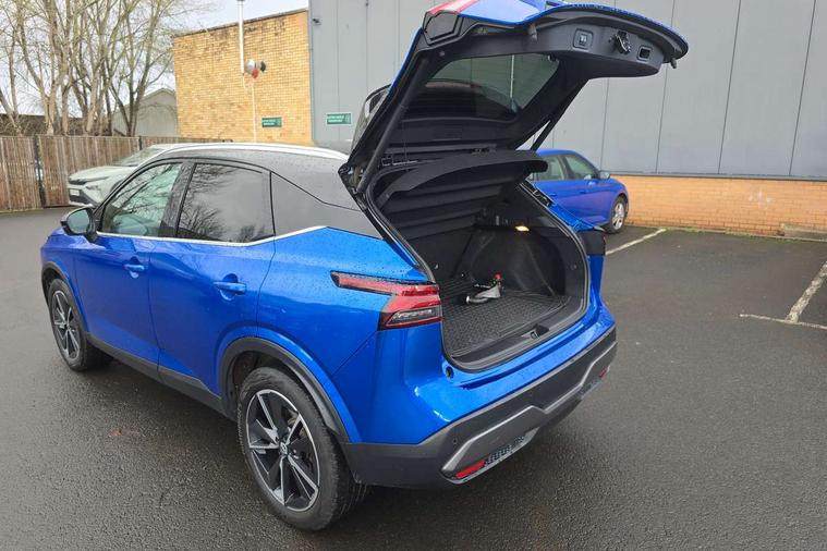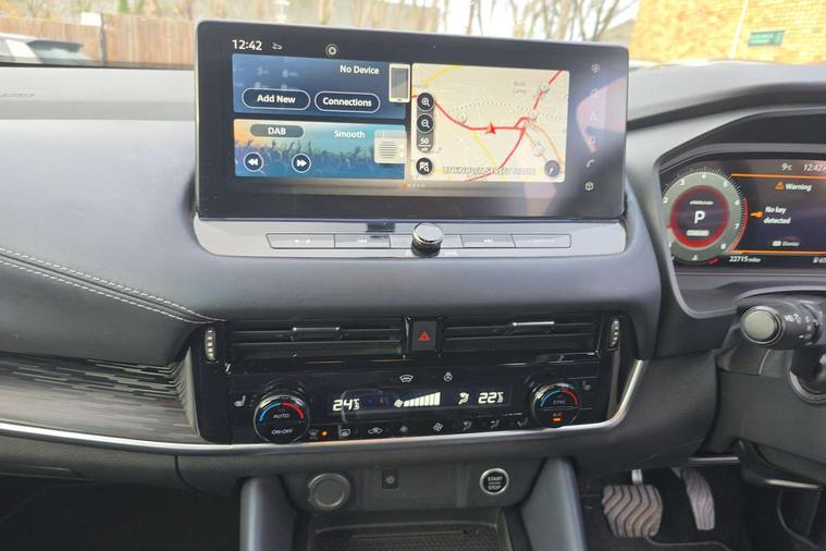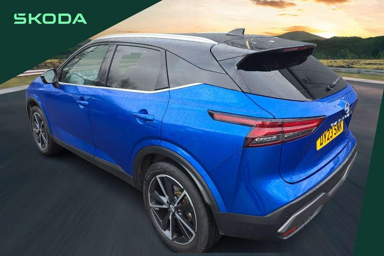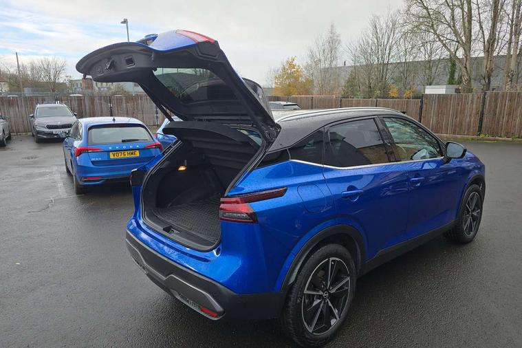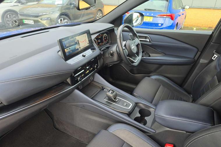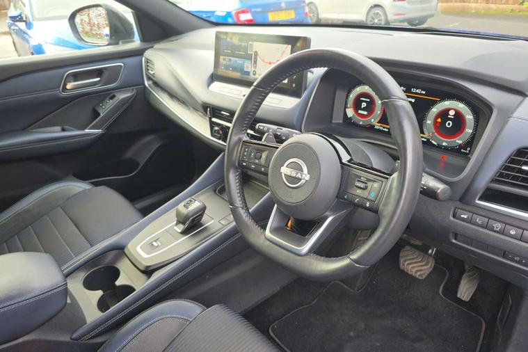 Advanced windscreen head up display, Android auto/Apple CarPlay (Wired), Blind spot warning, Drive modes (sport, normal, eco), Electric speed sensitive power steering, Emergency and breakdown call, Front and rear parking sensors, Full Digital 12.3" TFT Digital Combimeter, Google maps services - search, weather, 3D maps and Google street view, Hands free power tailgate, Idle stop/start system, Intelligent around view monitor, Intelligent Cruise control (ICC), Intelligent driver alert system, Intelligent forward collision warning, Intelligent lane intervention, Lane departure prevention, Lane departure warning system, Lane keep assist, Moving object detection, Nissan connect 12.3 inch touchscreen infotainment system, Nissan connect navigation, ProPilot, Push button starter, Rear cross traffic alert, Rear view camera, Remote control services - door locks, lights, horn and car locator, Telematics - notifications and connectivity services, TomTom live traffic services, Traffic jam pilot, Traffic sign recognition with legal speed adjustment, Trip computer, Virtual personal assistant and firmware over the air capability, Wireless apple carplay, Wireless charging pad, 6 speakers, AM/FM audio system with DAB, Bluetooth audio streaming, Front USB connections (Type-A and Type-C), Rear USB charging only ports (Type-A and Type-C), Auto dimming rear view mirror, Auto rear wiper when reversing, Automatic hazard signal with emergency stop signal, Body colour mirror caps, Body coloured door handles, Bodyside mouldings, Chrome side window finisher, Door handle with button, Electric auto folding door mirrors, Electrically adjustable and heated door mirrors with LED turn indicator, Follow me home headlights, Front and rear LED turning signals, Headlights auto levelling system, Intelligent auto headlights, LED daytime running lights, LED headlights with adaptive driving beam, LED rear lights, One touch front and rear electric windows with remote opening and closing, Partially body coloured bumpers, Privacy glass, Rear bumper with graphite insert, Rear reversing light (bulb lighting), Rear roof spoiler, Rear side wing doors, Rear styling plate, Shark fin antenna, Splash free rain sensing wipers, Super UV and infrared cut glass, Thermaclear heated windscreen, Three blink turn signal, 12v power socket in dashboard and luggage, 2x Rear coat hooks, 3 bench rear seats in 2nd row, 3 rear headrests, 4 folding assist grip, 6 Luggage hooks - 4 on floor, 2 on side, 60/40 split folding rear seat bench, Ambient lighting around centre console, Ambient lighting in front doors, Centre console storage tray, Chrome interior door handles, Cloth/syntech leather monoform upholstery, Dark black/blueish PVC wrapping, Dark headlining, Driver and front passenger sunvisors with illuminated vanity mirrors, Driver seat back pocket, Dual zone automatic climate control with pollen filter, Electrically adjustable driver seat, Electrically adjustable lumbar support for driver, Front and rear door storage, Front centre console and armrest, Front cupholders x 2, Front door with bottle holders, Glovebox with light, Hard trunk cover, Heated front seats, Heated steering wheel, Height adjustable driver's seat, Height adjustable front headrests, Height adjustable passenger seat, Leather steering wheel, Luggage board system, Luggage space lighting, Manual lumbar support on passenger seat, Manually adjustable passenger (slide recline + lifter), Multifunction steering wheel, Passenger seat back pocket, Rear armrest with 2 cupholders, Rear door bottle holders, Single front passenger seat, Soft PVC kneepad, Steering wheel gearshift paddles, Steering wheel switches, Tilt/telescopic adjustable steering wheel, Two rear isofix child seat anchorage points with top tether, Welcome light and doors with console tray ambient lighting, Glass roof pack with roof rails - Qashqai, 3x3 point rear seatbelt pretensioners + load limiters, ABS with EBD and brake assist, Active brake limited slip, Auto hold function, Child locks on rear doors, Curtain and front side, far side airbags, Driver and passenger airbags, Driver, passenger and 2nd row rear seat belt reminder, Electronic parking brake, Front seatbelt pretensioners + load limiters, Height adjustable front seatbelts, Hill start assist, Intelligent blind spot intervention, Intelligent front emergency braking with pedestrian, cyclist recognition and junction assist, Intelligent rear automatic braking, Tyre pressure monitoring system, Vehicle dynamic control, Capless fuel filler, Engine immobiliser, Intelligent Key, Remote central door locking with deadlocking, Thatcham Cat.1 alarm, Interior instrumental panel C finisher, 19" Alloy wheels, Tyre puncture repair kit,