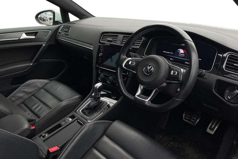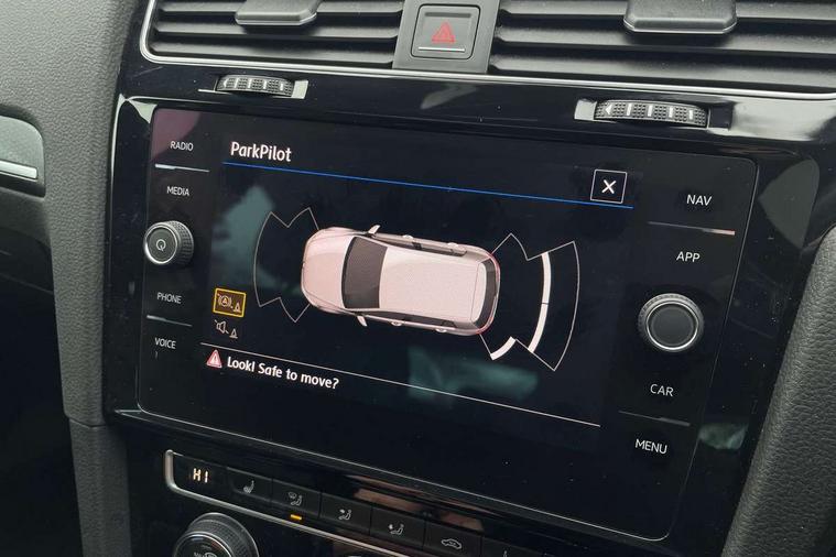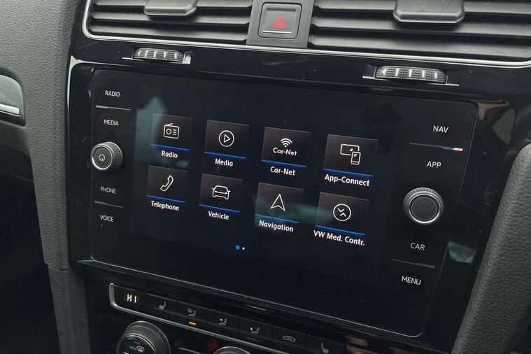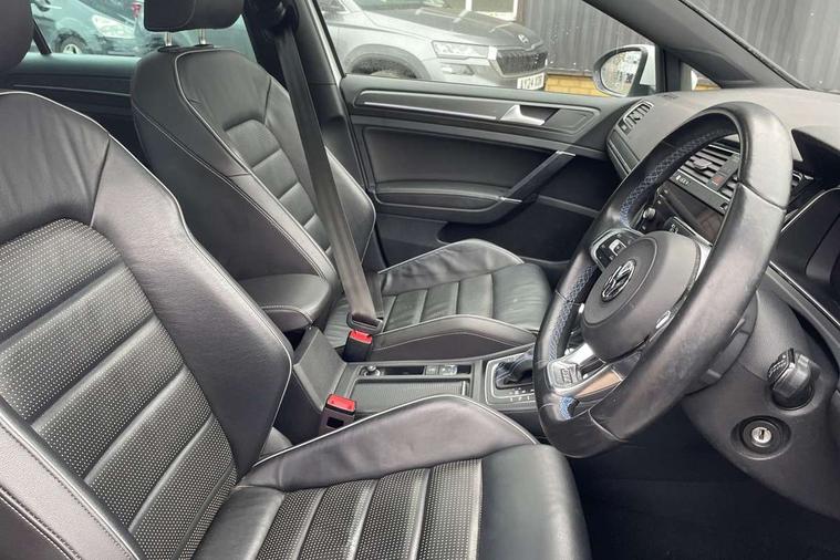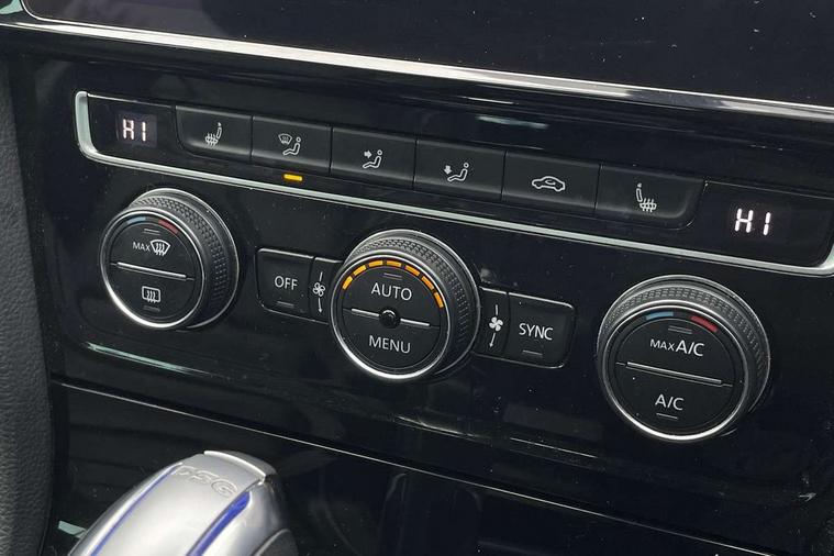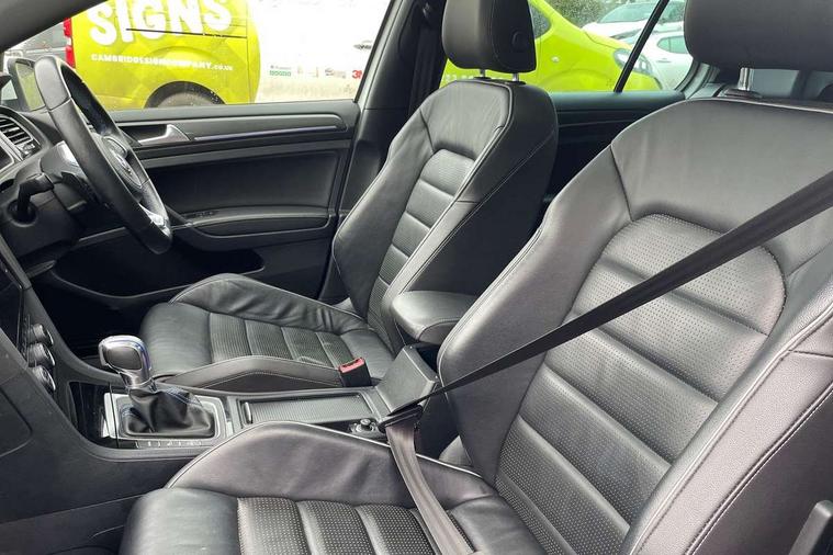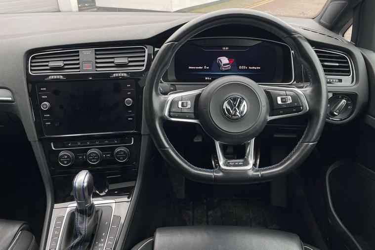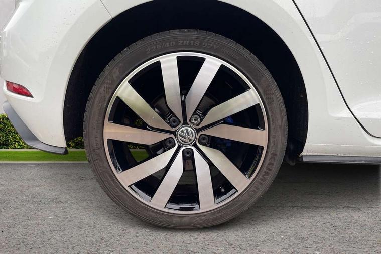 App-Connect, 'Lights On' Reminder warning buzzer, 8" touch screen, Adaptive Cruise Control with pedestrian detection and speed limiter, Bluetooth hands free telephone connection, Brake pad wear indicator warning light, Driver alert system, Driver profile selection, Exterior temperature gauge, Front assistant collision mitigation, Instrument cluster in white, Multifunction computer, PAS - speed related, Rev counter, Trip and service interval display, Ultrasonic front and rear optical and audible parking sensors, Warning buzzer and light for front seatbelts unfastened, XDS electronic differential lock, CD/MP3/WMA, USB and SD card reader, aux-in, Composition media system, DAB Digital radio, 3D-LED-SBBR with sweeping indicator, Auto dimming rear view mirror, Automatic coming/leaving home lighting function, Automatic headlights, Black front air intake and radiator grille with chrome insert, Black rear diffuser, Body colour bumpers, Body colour door handles, Body colour door mirrors, Chrome grille surround, Electric front windows, Electric rear windows, Electrically adjustable and heated door mirrors, Heated rear windscreen, LED daytime running lights, LED rear lights, Rain sensor, Rear roof spoiler, Rear windscreen washer and wiper with interval delay, Side skirts, Twin exhaust tailpipe, 12V socket in luggage compartment, 3 rear headrests, 3 spoke steering wheel, 60/40 split folding rear seat, Air conditioning - 2 zone electronic climate control, Aluminium/leather gear knob, Bag hook in luggage compartment, Black headlining, Boot lashing points, Cooled glovebox, Courtesy light delay, Cover for storage compartment in centre, Dust/pollen filter, Front + rear carpet mats, Front centre armrest with storage box and rear air vents, Front passenger drawer stowage, Front passenger seat height adjust, Front seat back storage pockets, Gearshift paddles, Grab handles, Height adjustable driver's seat, Height/reach adjust steering wheel, Illuminated vanity mirrors, Isofix preparation for 2 rear child seats, Load through provision with rear centre armrest and cupholders x2, Luggage compartment cover, Luggage compartment lighting, Multifunction leather steering wheel with blue stitching, Overhead storage box, Stainless steel pedals, Storage box in luggage compartment, Storage compartments in doors, Sun visors, Ambient lighting pack - Golf, Mirror pack - Golf, 3 point height adj front seatbelts + pretensioners, 3 rear 3 point seatbelts, ABS, Automatic post collision braking, Blue brake callipers, Child locks on rear doors, Driver/Front Passenger airbags, Driver/Passenger whiplash optimised head restraints, Drivers knee airbag, Electronic parking brake with auto hold, ESP with EDL + ASR, Front and rear curtain airbags, Front passenger airbag deactivation, Front side airbags, Pre crash system, Tyre pressure monitor, Alarm with interior protection, Electronic engine immobiliser, Remote central locking with 2 remote folding keys, Chrome-plated light switch surround, Honeycomb black decorative inserts, Piano black centre console, 18" Marseille alloy wheels, Tyre repair kit,