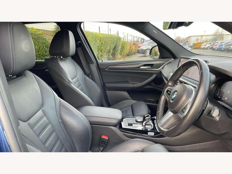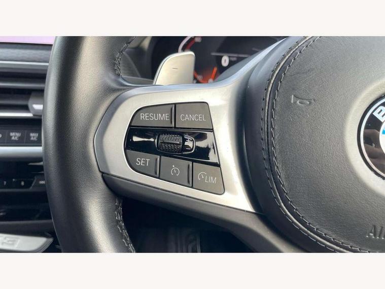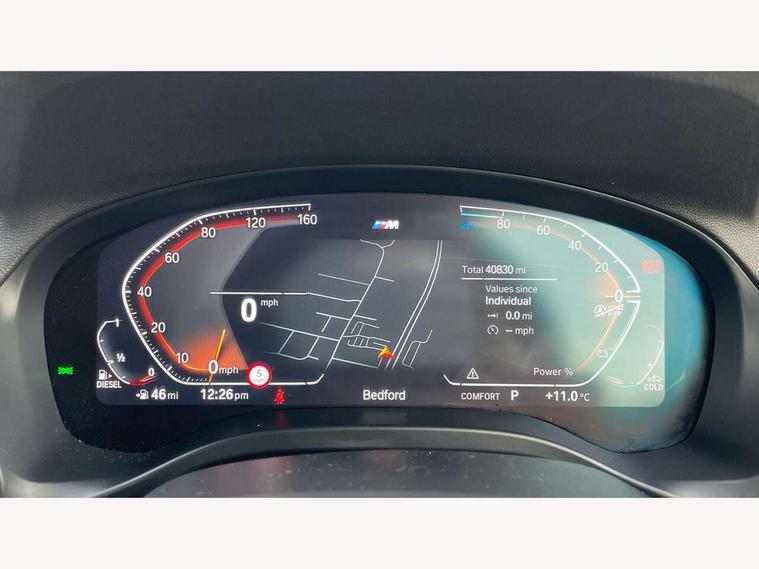 Active Guard, Attentiveness assist, BMW Live Cockpit Professional nav system including 12.3" instrument display + 12.3 high resolution control display, BMW Online services, BMW Teleservices, Brake pad wear indicator in front and rear, Check Control warning system for monitoring of lights and door/luggage compartment open warning, Condition based service - BMW service history, electronic service booklet, integrated owner's handbook, Connected drive services, Cruise control with brake function + speed limiter, Electric boot lid, Front/rear Parking distance control, iDrive Controller with 8 favourite buttons, Instrument cluster with speedometer with mph readout, tachometer, fuel gauge and oil temperature gauge, Lights on warning by audio warning signal when ignition is switched off, Oil sensor for level and grade, warning by check control system, On board computer - average speed+fuel consumption, service interval, clock/date, odometer/trip meter, outside temperature display and ice warning, Optimum shift indicator, Personal Profile - automatic lock when driving away selectable, Run flat indicator, Stop/start system, Variable sports power steering with drive performance control Sport+ mode, Automatic transmission with gearshift paddles, Diesel particulate filter, Incorrect fuelling protection, Larger capacity fuel tank, M sport suspension, Multi-link rear suspension, Performance Control, BMW professional radio/CD/MP3, DAB tuner, Acoustic glazing, Automatic windscreen wipers and automatic headlight, Black finish on B pillars, Body colour door handles, Body colour electric adjust heated aspherical door mirrors, Body colour roof mouldings, Body coloured bumpers, Direction indicator, side repeaters, integrated in exterior mirrors, Dynamic brake lights, Exhaust tailpipes - dual, round, split left and right with chrome finisher, Fingertip control / anti-trap function on electric window, Folding wing mirrors with auto dimming, Follow me home headlights, Front and rear bumper system with replaceable deformation elements, Front and rear electric windows, Gloss chrome tailpipes finishers, Green tinted heat insulating glass, Heated windscreen washer jets, High beam assistant, High gloss black shadow line roof rails, High gloss shadowline exterior trim in decorative moulding side frame/recess cover/guide rail/B, C pillars/mirror frame and triangle with mirror base, High level 3rd brake light incorporating LED Technology, Interior rear view electrochromatic mirror with automatic anti dazzle function, LED tail lights, Lightweight engineering, M aerodynamic bodystyling, M Sport entry door sill strips, Model designation, Rear side wing doors, Rear wing door, Rear wiper, Shark fin antenna, Side exterior M designation badges, Visible VIN plate, Welcome lighting, Windscreen wipers with adjustable interval, 12V power socket in front centre console, 3 rear headrests, 3 seat bench in 2nd row, 3 zone automatic air conditioning, 4 lashing points to secure luggage, 40:20:40 split folding rear seat with loading system, Ambient lighting, Anthracite headlining, Automatic interior light when door is opened/ignition switched off or via remote key, Driver seat backrest width adjustment, Floor mats in velour, Foldable storage floor with compartment, Four grab handles integrated in roof lining, Front and rear bottle holders integrated into door trim storage compartments, Front and rear side armrests integrated into door trim, Front centre armrest with storage compartment, Front footwell lights, Front head restraints, Front passenger seat, Front sports seats, Front/rear courtesy lights with soft on/off dimming, Front/rear reading lights, Heated front seats, Isofix rear child seat preparation, Leather gear knob, Luggage area underfloor compartment, Luggage compartment lighting, M sport leather steering wheel, Multifunction steering wheel, Parcel shelf removeable and storable under boot floor, Reach and rake adjustable steering column, Rear centre armrest with 2 cupholders, Removable / retractable luggage cover, Slope adjustable rear seats, Storage compartment in rear centre console and front/rear door trims, Sun visors with vanity mirrors and ticket pocket, Toolkit located in luggage compartment, Two front cupholders with removable oddments tray/lid, Vernasca leather upholstery, Connected pro pack - X3, Driving assistant pack - X3, ADB - Automatic Differential Brake, Anti-lock braking system (ABS) with brake assist, Automatic Stability Control (ASC), Battery safety cut-off, BMW emergency call, Brake drying, Brake energy regeneration, Braking pre-tensioning, Child locks on rear doors, Cornering brake control (CBC), Crash Sensor - activation of central locking release, hazard warning light and interior lighting, Deactivation of fuel pump in the event of a crash, Driver and front passenger front and side airbags with passenger deactivation and ITS front and rear head airbags, DSC+, Dynamic brake control, Dynamic Traction Control - DTC, Electromechanical parking brake, Hill descent control, Hill start assist, Seatbelt security check for front seats, Side impact protection, Three point seatbelts to all seats with front and outer rear pyrotechnic belt tensioners and seat belt force limiters, Two tone horn, Tyre pressure sensor, Ventilated front and rear disc brakes, Warning triangle and first aid kit, Central locking switch for all doors, fuel filler cap and luggage compartment, Electronic engine immobiliser, Locking wheel nuts, Remote control including two integrated key - one button for open/close all lockable content, windows and separate button for open luggage compartment, Remote control Thatcham category 1 alarm, Start/stop button with Comfort Go keyless engine start and auto Start/stop deactivation button, Low rolling resistance tyres,