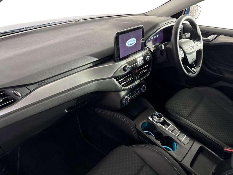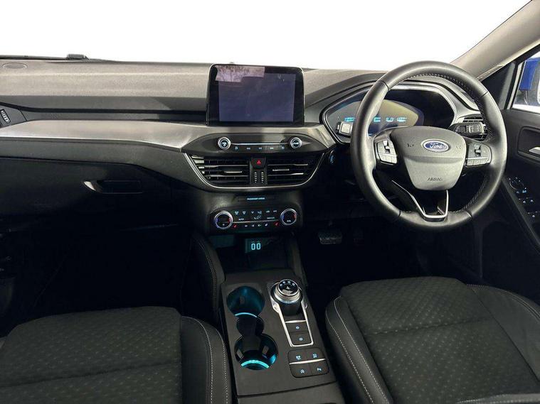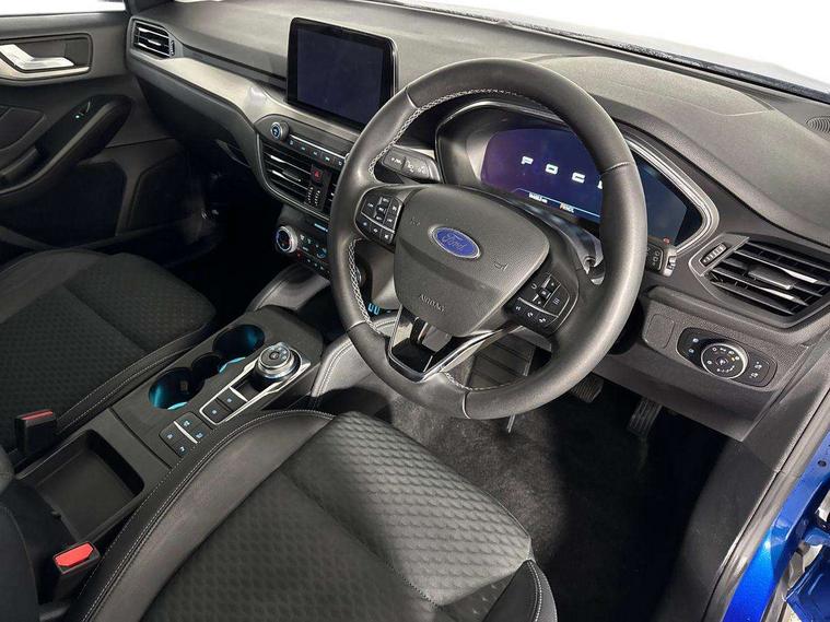 Bluetooth system, Digital clock, Easy fuel capless refuelling system, Eco mode, Ford pass connect, Ford SYNC 3 nav system with DAB radio, 8" colour touch screen, voice control, app link, Apple car play/Android auto and 4.2" TFT coloured cluster, Front and rear parking sensors, Intelligent speed assist, PAS, Rotary gear shift dial, Selectable drive mode, Trip computer, 2 USB ports, Aux input, 'Quickclear' heated windscreen/heated washer jets, Auto dimming rear view mirror, Auto headlamps (on/off), Automatic rain sensing wipers, Body coloured bumpers, Body coloured door handles, Body coloured electrically operated and heated door mirrors with side indicators, Electrically operated front and rear windows with one touch opening and closing, Front fog lamps with cornering function, Front variable intermittent wipers with electric wash, Heated rear window, LED daytime running lamp, LED rear lamps, Power folding door mirrors with puddle lights, Rear privacy glass, Tailgate wash/wipe, Unique door and instrument panel inserts, Upper grille with chrome surround and horizontal bars, 3 spoke leather trimmed steering wheel with integrated audio controls, 6 way power adjustable driver seat, 60/40 split back and cushion rear seats with 2 height adjustable headrests, Ambient lighting, Centre console with sliding front armrest, Dual zone electronic air temperature control, Front passenger seat manual height and lumbar adjust, Front/rear floor mats, Heated front seats, Height adjustable front headrests, Isofix child seat preparation, Paddle shift controls, Part leather upholstery, Reach + rake adjustable steering column, Rear centre headrest, Soft console knee pads, ABS+Electronic Brake force Distribution, Auto hold function, Driver airbag, Electronic parking brake, Electronic stability control, Front and rear seatbelt reminder, Front inertia reel height adjustable seatbelts with pre-tensioners, Front passenger airbag, Front side airbags, Hill start assist, Passenger airbag deactivate switch, Post collision braking, Pre collision assist with autonomous emergency braking and pedestrian/cyclist detection, Side curtain airbags, Three rear inertia reel lap/diagonal seatbelts, Tyre pressure monitoring system, Ford keyfree system with Keyless entry and keyless start, MyKey system, Remote central locking & engine immobiliser, Thatcham category 1 alarm, 17" 10x2 spoke luster nickel alloy wheels, Mini steel spare wheel,