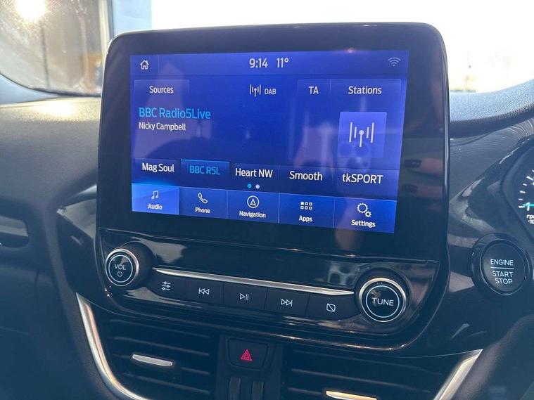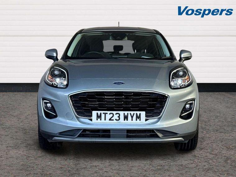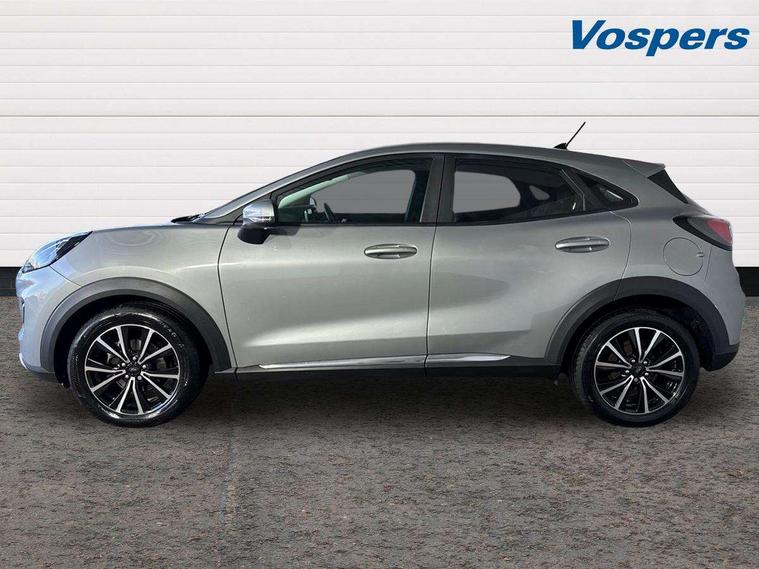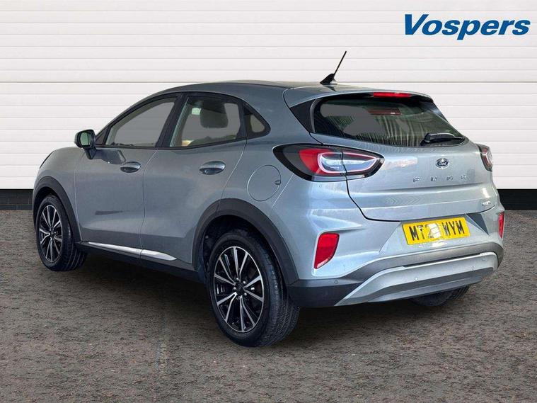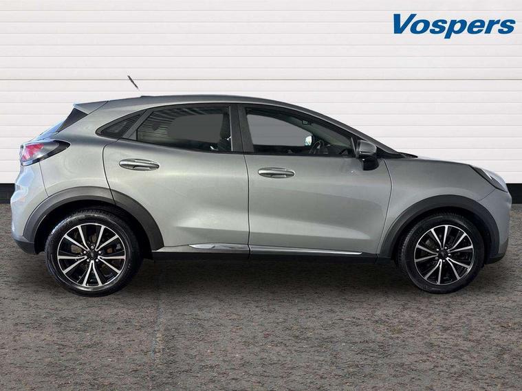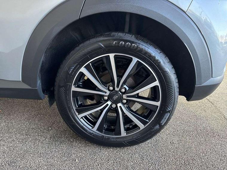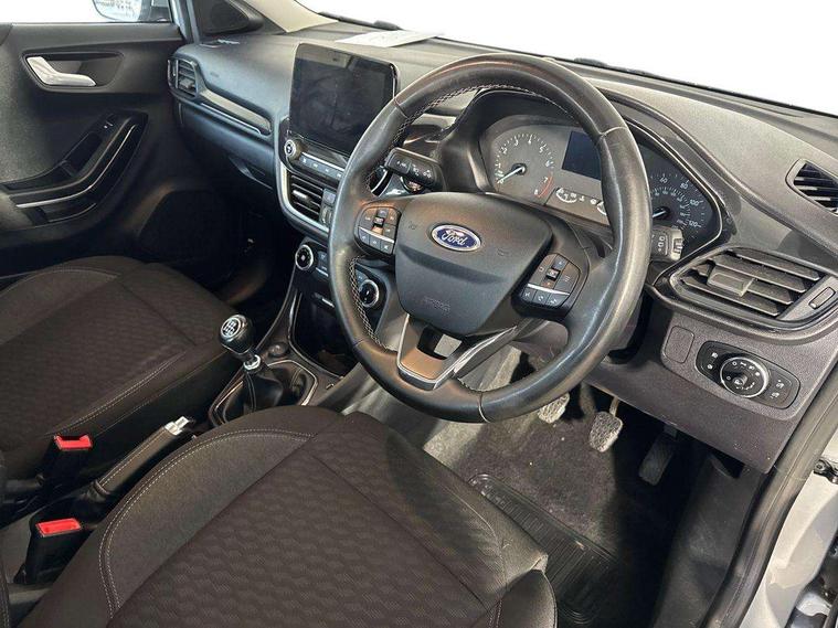 Driver impairment monitor, Emergency call service, Ford easy fuel, Lane keeping aid with lane departure warning, Power assist steering, Power start button, Rear parking sensor, Selectable drive modes(Normal, Eco, Sport, Slippery and Trail), Speed sign recognition, Standard suspension, Automatic headlights with auto high beam, Automatic rain sensing wipers, Body colour rear spoiler, LED rear lamps, Power foldable heated door mirrors with puddle lamps, Projector headlamps with LED day time running lights and front fog lamps, Quickclear heated windscreen, Rear side wing doors, Rear wiper, Third brake light, 3 seat bench in 2nd row, Centre console with armrest and stowage, Electronic automatic temperature control (EATC), Ford megabox extended bootspace, Front and rear head restraints, Front floor mats, Manual 2 way passenger seat adjustment, Manual 4 way driver seat adjust with lumbar adjustment, Sensico leather steering wheel/gear knob/handbrake, Single front passenger seat, Titanium cloth upholstery, Ford SYNC 3 navigation pack - Puma, 3 rear seatbelts, Child safety lock, Electronic stability control (ESC) and hill start assist, Pedestrian/cyclist detection & post-collision braking, Pre collision assist system, Tyre pressure monitoring system (TPMS), Thatcham alarm, 17" 10 spoke absolute black machined finish alloy wheel,