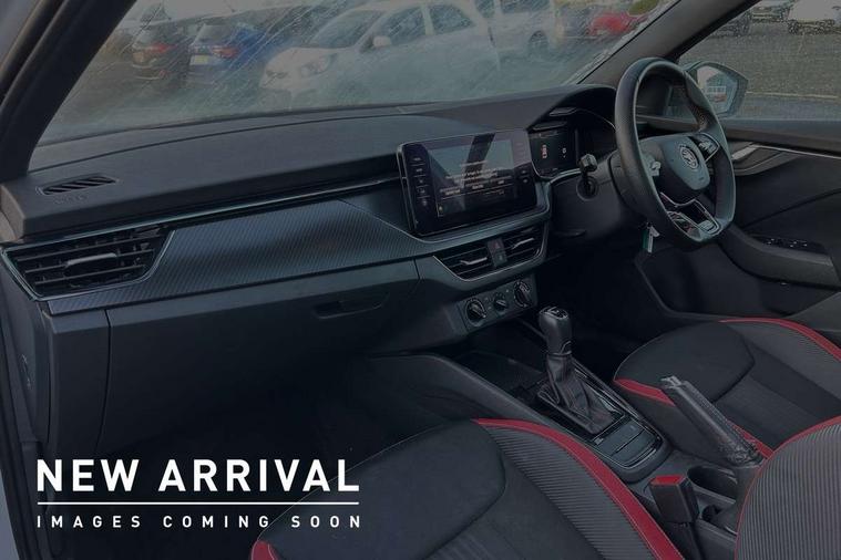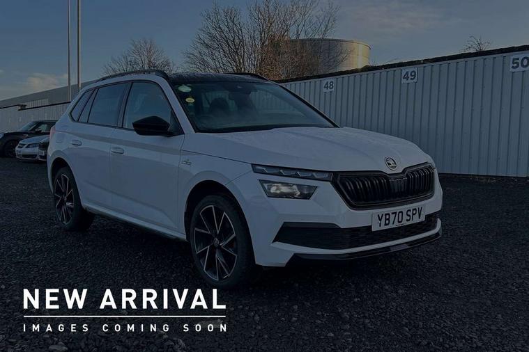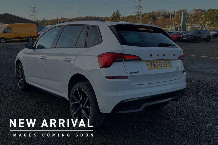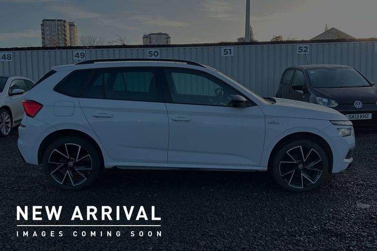 Amundsen satellite navigation with 9.2" touchscreen display, web radio and voice control, Bluetooth system, E-call, Front assist system, Lane assist, PAS, Service indicator, Speed limiter, Trip computer, Virtual cockpit with 10.25" display, Wireless SmartLink for apple car play, android auto and mirrorlink, 2 USB - C ports with 1x adaptor cable, Auxiliary input socket, DAB Digital radio, Auto dimming rear view mirror, Black door mirrors, Black radiator grille, Black rear diffuser, Body colour bumpers, Body colour roof spoiler, Boot lettering in black, Chrome grille surround, Electrically adjustable and heated door mirrors, Fixed panoramic sunroof with black roof rails, Front and rear electric windows, Front sport bumper, Full LED headlights with adaptive front light system, dynamic indicators, cornering function and fog lights, Headlight range control, Heated rear window, High functionality rear led lights with dynamic indicators, KAMIQ Door sills, Monte carlo plaque, Privacy glass, Rear fog lights, Rear wiper, 12V Accessory socket in centre console, Aluminium pedals, Black ceiling for black/beige interior, Chrome inner door handles, Cloth upholstery, Front gesture control, Front head restraints, Glove compartment with illumination, Height adjustable passenger seat, Ice scraper, Isofix child seat fittings on outer rear seats, ISOFIX on front passenger seat, Leather gear lever, Manual lumbar support for front seats, Rake/reach adjustable steering wheel, Reading lights for driver and front passenger, Sports seats, Sun visor with make up mirror for front passenger, Textile floor mats, Third rear headrest, Top tether for front passenger seat, Umbrella in driver's door, 3x3 point rear seatbelts, Airbags - driver and front passenger, ESP, Front passenger airbag deactivation switch, Front side airbags with curtain airbags, Hill hold control, Manual parking brake, One tone horn, Rear disc brakes, Seatbelt reminder for driver an co-driver, Traction control, Tyre pressure monitor, Alarm with interior monitoring, back up horn and tilt sensor with safe function and towing protection, Anti-theft wheel bolts, Immobiliser, Remote central locking with SAFE system, Chrome air vent surrounds, 18" Vega alloy wheels in black,
