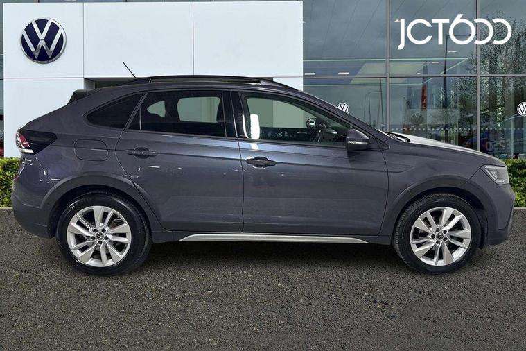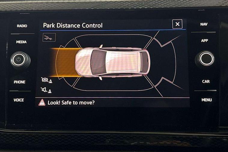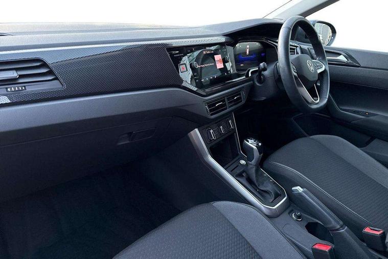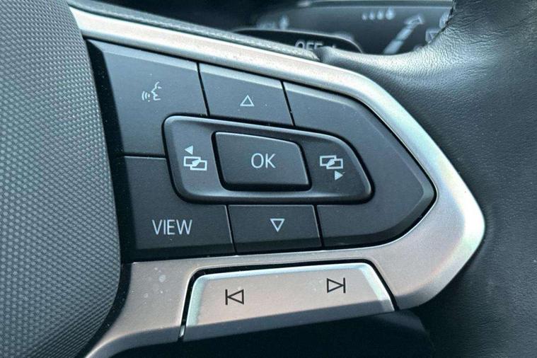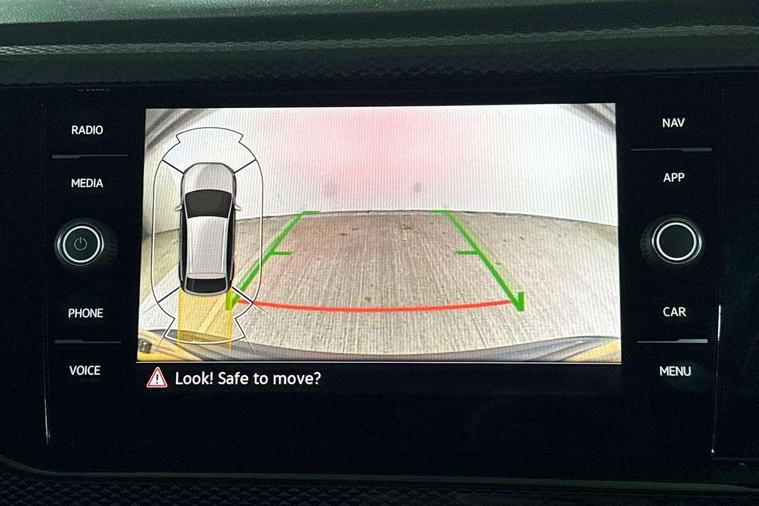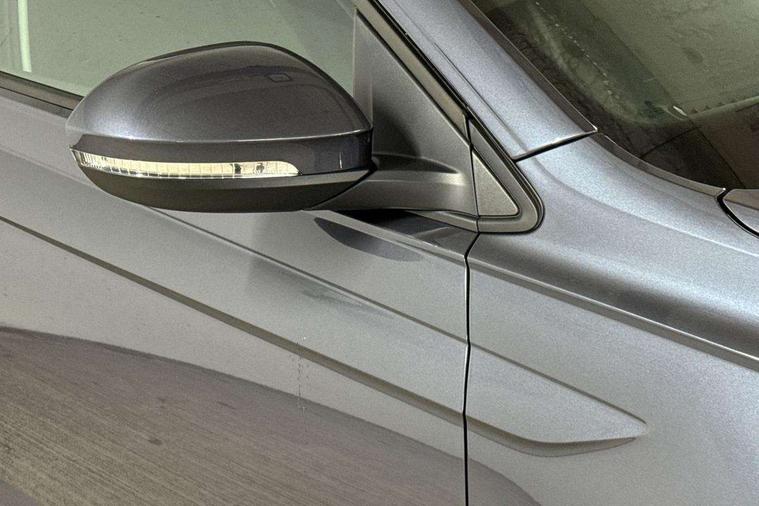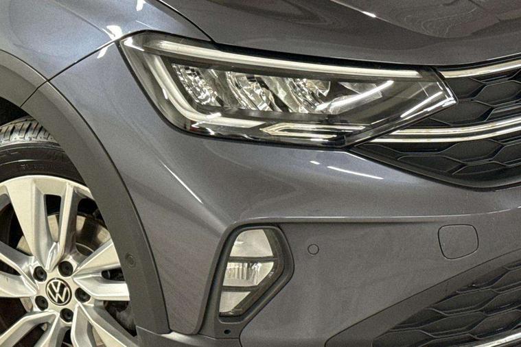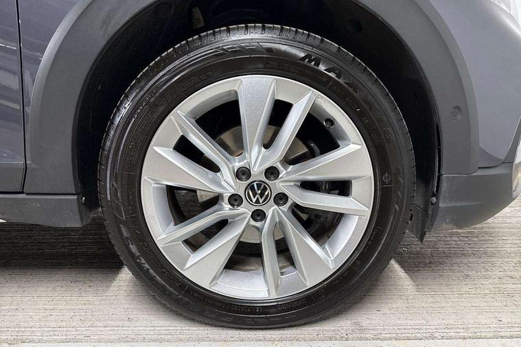 Adaptive cruise control, Advanced driver attention and drowsiness monitor, Dynamic road sign display, e-Call (emergency call), Power Steering, Rear view camera, Travel assist including emergency assist, Washer fluid level indicator, Wireless Charging including Bluetooth, Start-stop system with battery regeneration (recuperation - energy recovery during braking), WeConnect plus, Ambient lighting with logo projection, Aspherical driver's exterior mirror, Body coloured bumpers, Body coloured exterior mirror housings and door handles, Electric windows, External USB type C socket and charging sockets, Heat insulating glass windscreen, LED rear combination lamp, LED third brake light, Left convex exterior mirror, Power folding adjustable/heated exterior mirrors and front passenger exterior mirror lowering function, Rear fog light on one side, reversing light on both sides, Rear side wing doors, Rear wash/wipe with intermittent wipe setting, Side windows in heat-insulating glass, from B-pillar and rear window dark tinted, 'Slash/ Austin' Cloth upholstery, 12V socket in centre console, 2 front reading lights, 3 rear head restraints, 3 seat bench in 2nd row, Black carpets, Ceramique headliner, Child seat anchor for child seat system i-Size, 2x top tether and child seat anchor in front on front passenger side, Door and side trim panels in titan black, Driver and front passenger seat height adjustment, Front centre armrest, Handbrake lever handle in leather, Height and reach adjustable steering wheel, Leather trimmed gear knob, Leather wrapped multifunction steering wheel with paddle shift, Luggage compartment floor, Luggage compartment light, Lumbar support for driver's and front passengers seat, Seat covers in titanium black, Single front passenger seat, Split folding backrest with centre armrest and unsplit rear seat bench, Storage compartment under front seats, Sun visors with illuminated vanity mirrors, Titanium black instrument panel, Chrome Package - Taigo, Drivers assistance package - Taigo, Light and sight pack - Taigo, 2 x 3-point seatbelts/outer rear seats with ECE label, 3-point seat belts in front with pretensioner and height adjustment, 3-point seatbelt for centre rear seat, Driver and front passenger airbag with front passenger airbag deactivation, Driver and front passenger safety-optimised head restraints, Electronic stability control, Extended and predictive pedestrian/ cyclist protection, Front and rear disc brakes, Front curtain and side airbags with center airbag, Hill start assist, Manual rear child locks, Single tone horn, Tyre pressure loss indicator, Anti-theft alarm system with interior monitoring, backup horn, and towing protection, Keyless locking and starting system keyless access with safelock, Black (slush) Dashboard, Lava stone black gloss/matt decorative inserts in dash and front door panels, Low rolling resistance tyres,