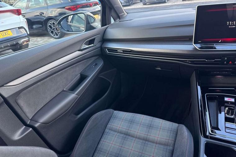 Activated carbon canister, Adaptive cruise control (ACC), Advanced driver attention and drowsiness monitor, Dynamic road sign display, E-Sim card for online connectivity, eCall emergency call system, Multi-color Digital cockpit pro, selection of different info profile possible, Multifunction front facing camera for distance control, Navigation system, Oncoming vehicle braking when turning including swerve support, Side assist blind spot lane change system, rear traffic alert and exit warning system, Speed limiter, Speedo, rev counter, electronic odometer, trip, service interval display, exterior temperature and fuel gauge, Traffic jam assist, Voice enhancer and voice control, Warning signal and warning light for front and rear seatbelts not fastened, We connect plus preparation, We connect preparation, Wireless app connect, Front differential lock, Petrol Particulate Filter, Start-stop system with battery regeneration (recuperation - energy recovery during braking), 2 USB C ports in front, 2 USB charging sockets on the centre console in the rear charging capacity upto 45W, Digital radio reception (DAB), Diversity antenna for FM reception, Gaming platform via car app, Infotainment system with 12.9" display, Mobile phone interface with inductive charging feature, 3rd brake light, Auto dimming rear view mirror, Automatic headlamp activation with Coming home and Leaving home feature, Body colour door handles, Body coloured bumpers, air intake in honeycomb structure, Exterior mirrors convex on the left and aspherical on the right, Front and rear electric windows, Front fog lamps and cornering light, Heat insulating windshield made of laminated glass, Illuminated lighting animation with wake up/goodbye scenario, LED separate daytime running light, Nameplate 'GTI' set, Rain sensor, Rear exhaust tailpipe, Rear fog light on one side and reversing lights on both sides, Rear side wing doors, Rear windscreen washer and wiper with interval delay, Remote electrically foldable door mirrors, puddle lights and reverse activated passenger's door mirror, Welcome light with surround lighting, 12V socket in front centre console, 12V socket in luggage compartment, 3 rear head restraints, 3 seat bench in 2nd row, 30 colour ambient lighting, illuminated center console storage compartment in front, Air care climatronic 3 Zone automatic climate control with rear air conditioning control panel, Aluminium gearshift handle, Brushed stainless steel pedals, Chrome plated radiator grille inserts, air vent surrounds and light switch surrounds, Entry lights, Front + rear black carpet mats, Front centre armrest, ISOFIX anchors for child seats on outer rear bench seats and on front passanger seat compatible for i-Size, Luggage compartment lighting, Rear cupholder and loadthough, Single front passenger seat, Soul black instrument panel, Soul black roof lining, Split folding backrest with centre armrest and unsplit rear seat bench, Sun visors with illuminated vanity mirrors, Driver assistance pack - Golf Estate/Hatchback Auto, Technology park and comfort pro package - Golf Hatchback, 3 point height adj front seatbelts + pretensioners, 3 rear three point seatbelts, ABS, Autonomous emergency braking front assist with pedestrian and cyclist monitoring, Child locks on rear doors, Driver and front passenger airbag with front passenger airbag deactivation, Electronic parking brake with auto hold, ESC (Electronic Stability Control), Extended pedestrian protection measures, Hill start assist, Rear disc brakes, Two tone horn, Tyre pressure loss indicator, Volkswagen roadside assistance, Anti theft wheel bolts, Preparation for alcohol interlock, Decorative inserts carbon grey for dashboard and front door trim panels, Sporty vehicle dynamics, Tool kit for tyre mobility set, Tyre mobility kit Includes 12V compressor and tyre sealant,
