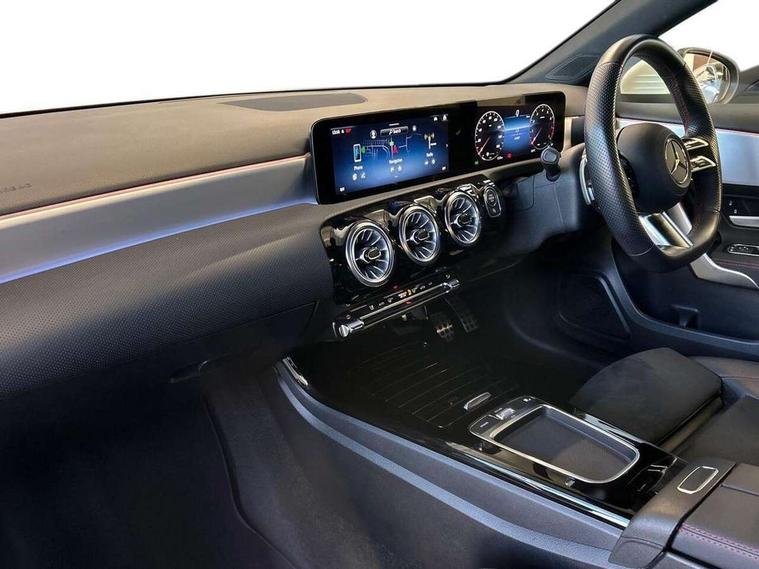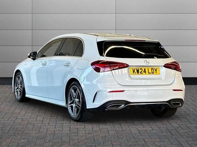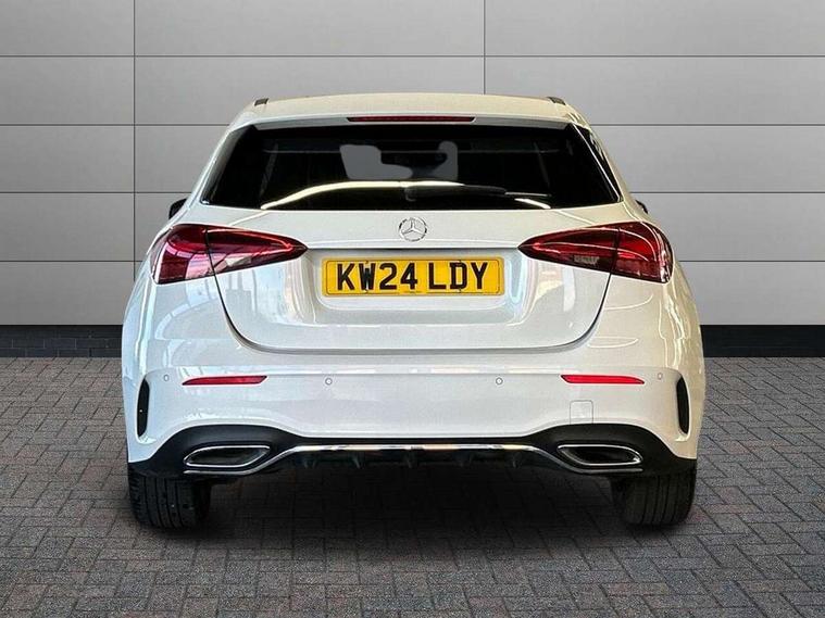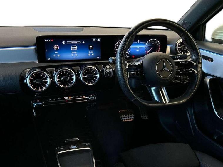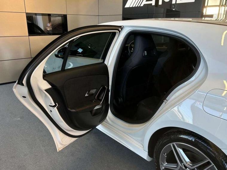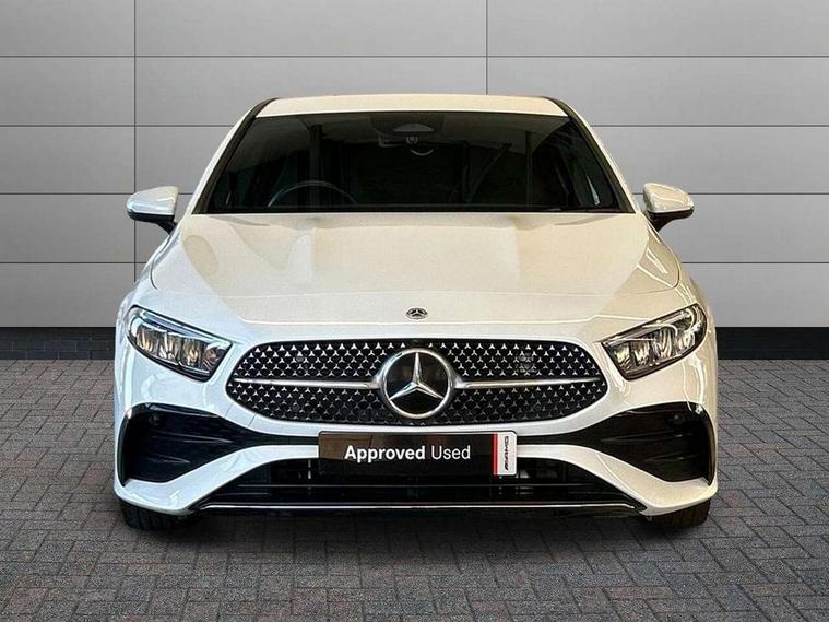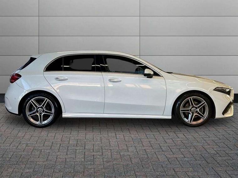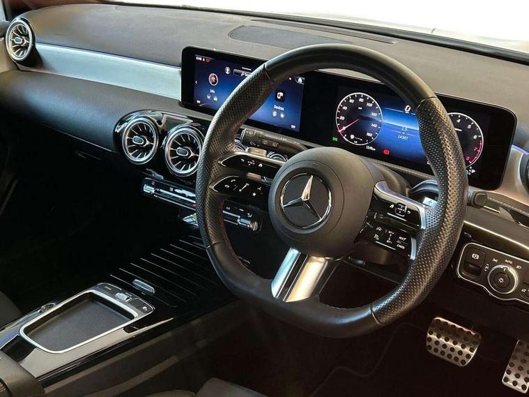 10.25 inch touchscreen central media display, 10.25" Digital instrument cluster display screen, Attention assist, Brake pad wear indicator warning light, Car wash mode, Cruise control + speed limiter, Direct steering, Direction indicators with lane change function, Dual bluetooth interfaces, DYNAMIC SELECT with a choice of driving modes (ECO, Comfort, Sport and Individual), Easy pack tailgate hands-free access, ECO start/stop function, Engine start/stop button, Fluid level warning indicator for fuel, oil, coolant and washer fluid, Fluorescent jacket for driver, Hard-disk navigation, Hey Mercedes Voice activation, Lamp failure indicator, Lane keeping system, Mercedes me connect including emergency call system, accident recovery, breakdown and maintenance management, Mercedes me remote services, Outside temperature gauge, Owners manual in English, Pre-installation of private car share, Preinstallation for Mercedes Benz link, Remote boot closing, Service indicator (ASSYST), Smartphone integration with Apple CarPlay and Android auto, Speed limit assist, Speed sensitive power steering, Tailgate, Trip computer in multifunction display with current consumption indicator, Wireless charging, Lowered comfort suspension, DAB Digital radio, MBUX multimedia system, Mercedes Benz sound system (100 W) with 6 speakers, 4 Electric Front and Rear windows, Adaptive brake lights, AMG body styling - AMG front apron with front splitter and AMG rear apron and visible exhaust tailpipe trim elements, Body colour bumpers, Body colour door handles with chrome inserts, Body colour side skirt, Body coloured door mirrors, Chrome beltline strips, Diamond radiator grille with pins in fine star pattern, Electric adjustable and heated door mirrors with integrated LED side indicators, Exhaust system with 2 visible tailpipe trim elements and rear apron, Headlamp assist automatic headlamp activation, Heat insulating dark tinted rear and rear side windows, Heated glass rear windscreen + timer control, LED High level third brake light, LED High Performance headlamps including integral LED daytime running lamps and adaptive highbeam assist, LED tail lamp, Privacy glass, Radio aerial, Rain sensing windscreen wipers with two sensitivity settings, Rear fog lights, Rear side wing doors, Rear windscreen wiper, Window line trim strip in chrome, 3 seat bench in 2nd row, 3 Spoke flat bottom leather multi function steering wheel with perforated leather in grip area, 4 way lumbar support, 40:20:40 split folding rear seats, Air conditioning - One zone THERMATIC automatic climate control with automatically controlled air distribution, AMG floor mats, Automatic child seat recognition sensor, Black air vents with surround in silver chrome, Black roof lining, Brushed stainless steel sports pedals with rubber studs, Front centre armrest with stowage, Front door sills with Mercedes Benz lettering, Front seat backs luggage nets, Galvanished gear shift paddles on steering wheel, Heated front seats, Height/reach adjustable steering column, Interior lighting - 64 colour Ambient lighting, Interior mirror with reading lamps in black and frameless, Rear armrest with 2 cupholders, Seat occupancy sensor for front passenger seat, Single front passenger seat, Sports seats with integrated headrests, Stowage compartment in centre console with retractable cover, Sunvisors with illuminated vanity mirrors, Twin front cupholders, Light and sight pack - A Class, Mirror package - A Class, Parking pack - A Class, Seat comfort pack - A Class, USB pack plus - A Class, 3 rear 3 point seatbelts, ABS with Brake Assist, Active bonnet, Active brake assist includes forward collision warning system with autonomous braking, Adaptive brake assist with hold function and hill start assist, Black seatbelts, Bonnet with power domes, Childproof locks manually operated for rear doors and electrically operated for rear power windows, Crash responsive emergency lighting, Driver and passenger head and side airbags, Drivers knee airbag, Dual stage driver/passenger airbags, Electronic parking brake, ESP curve dynamic assist, ESP with ASR, Front and rear seatbelt reminder, ISOFIX and top tether child seat fixing points in two outer rear seats, Tyre pressure monitoring system, Warning triangle and first aid kit, Window airbags, Alarm system/interior protection/immobiliser, Guard 360 degree vehicle protection, Keyless entry lock/unlock, Keyless Go, Remote central locking and crash sensor with emergency opening function, Light longitudinal grain aluminium trim, 18" AMG 5 twin spoke light alloy wheels, aerodynamically optimised, painted in termolite grey with high sheen finish, Summer tyres, Tirefit sealant kit,