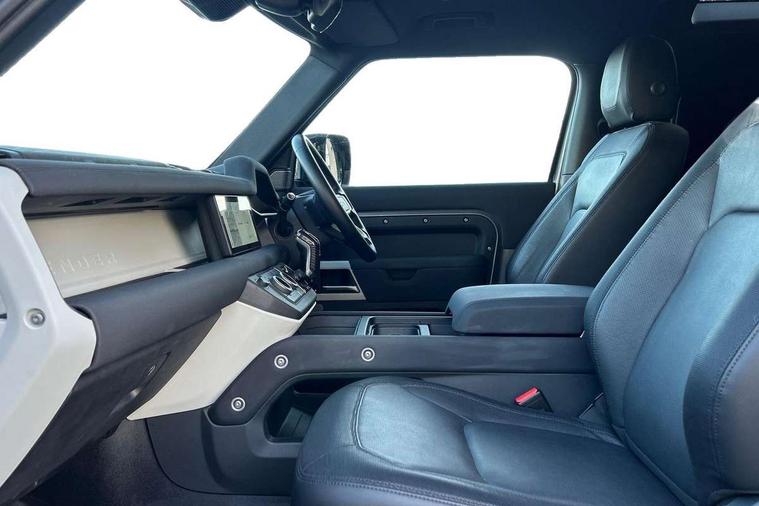 360 degree parking aid, 3D Surround Camera with 360 View, 180 Rear View, Front Traffic Detection, Forward Vehicle Guidance, Tow Hitch Assist and clear sight Ground View, Android Auto, Apple CarPlay, Assisted tailgate with soft close, Blind spot assist, Bluetooth system, Brake pad wear indicator, Clear exit monitor, Connected navigation pro, Driver condition monitor, Electric power assisted steering (EPAS), Lane keep assist, Push button start, Rear traffic monitor, Traffic sign recognition with adaptive speed limiter, Trip computer, Wade Sensing, 8 speed automatic transmission, All wheel drive system, Twin speed transfer box, DAB Radio (Digital Audio Broadcasting), Meridian 400w sound audio system with 11 speakers and subwoofer, Pivi pro connected, Automatic headlight levelling, Automatic headlights, Centre high mounted stop light, Electric heated/power fold door mirrors with approach lights and auto dimming driver side, Electric windows with one touch open/close and anti-trap, Follow me home lighting, Front fog lights, Heated rear window with timer, Heated windscreen, LED tail lights, Panoramic rear side glass, Privacy glass, Puddle lights, Rain sensing windscreen wipers, Rear fog lights, Rear wiper, Side hinged tailgate, Trailer stability assist, X-Dynamic badge, 12V power socket in loadspace, 3 seat bench in 2nd row, Alpine lights, Durable rubber cabin flooring, Durable rubber loadspace flooring, Footwell lights, Loadspace cover, Loadspace Hook, Multifunction steering wheel, Overhead stowage for sunglasses, Premium cabin lighting, Rear headrests, Rear ISOFIX, Rear reading lights, Single front passenger seat, Standard seat configuration, Storage glovebox, Sunvisors with illuminated vanity mirrors, Online pack with data plan - Defender, 5 x 3 point seatbelts, ABS, Brake hold function, Cornering brake control (CBC), Customer configurable autolock, DSC - Dynamic Stability Control, EBD - Electronic brakeforce distribution, Electric parking brake (EPB), Emergency brake assist, Emergency braking, ESP + traction control, Front airbags with passenger seat occupant detector, HDC - Hill descent control, Hill launch assist, Low traction launch, Remote for (e-Call, Optimised assistance call, InControl app, Climate, beep and flash and door), RSC - Roll stability control, Seat belt reminder, TPMS (Tyre pressure monitoring system), Alarm, Immobiliser, Intrusion sensor, Keyless entry, Locking wheel nuts,