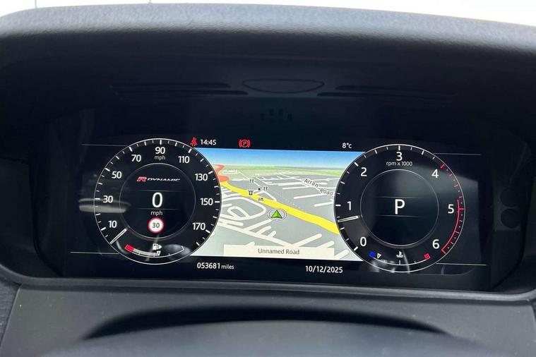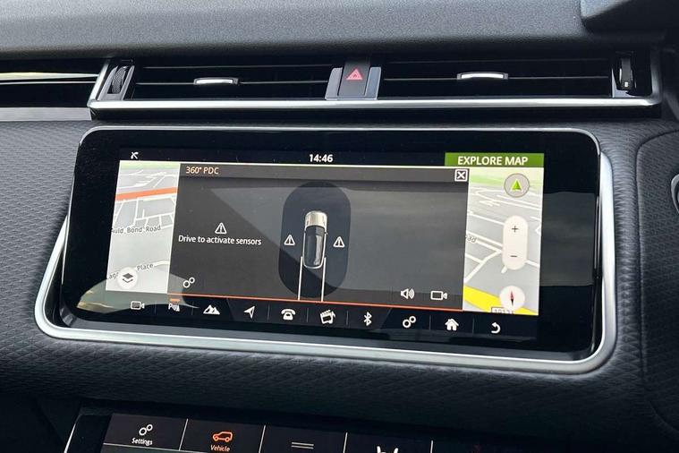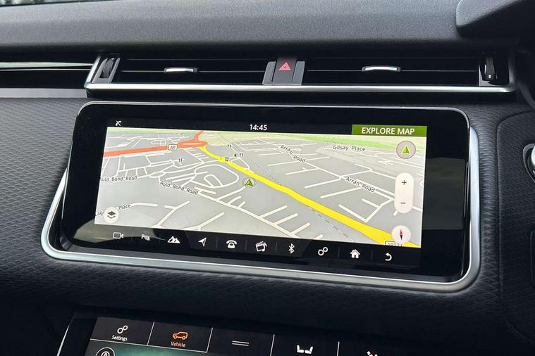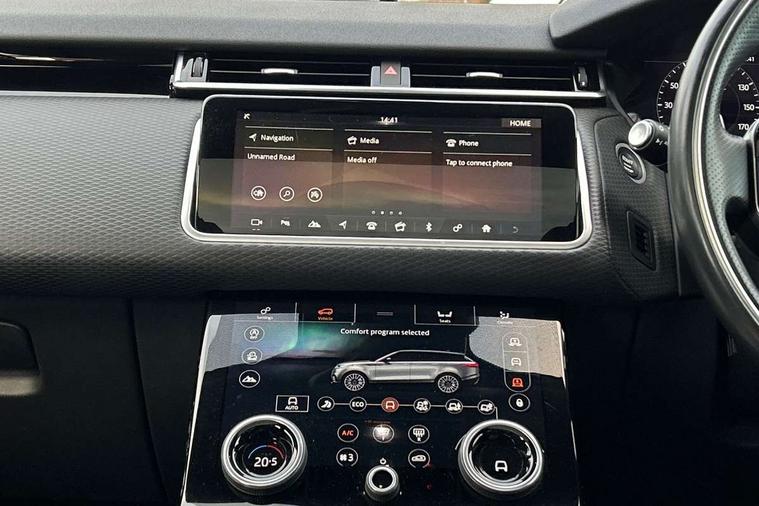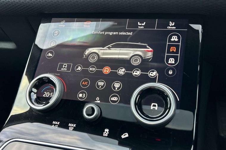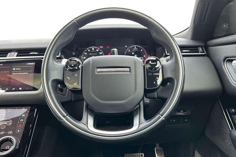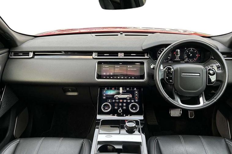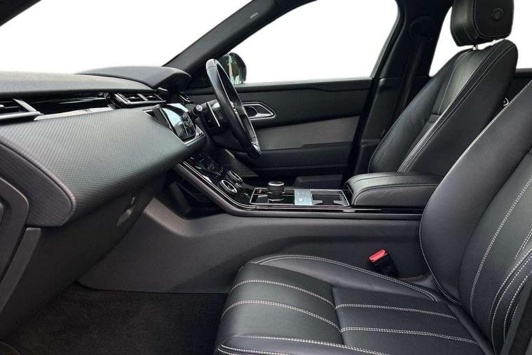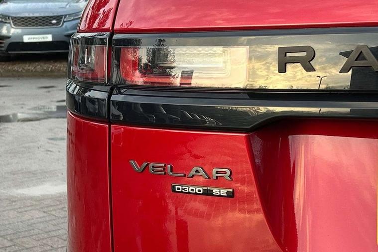 360 degree Park Distance Control, Bluetooth system, Driver condition monitor, Electric power assisted steering, Gesture tailgate, InControl remote, InControl Touch navigation pro, Interactive Driver display instrument cluster, Land Rover InControl apps, Lane keep assist, Park Assist - Parallel Park/Parking Exit/Perpendicular park, Pro services and wifi hotspot, Rear cross traffic alert, Service indicator, Speed proportional steering, Traffic sign recognition with adaptive speed limiter, Trip computer, Voice control system, DAB Digital radio, Steering wheel mounted controls, Acoustic windscreen, Adaptive front lighting system, Auto dim internal rear view mirror, Automatic headlamp levelling, Automatic headlights, Body coloured bumpers, Boot lid spoiler, Cornering light, Electric front/rear windows/one touch operation, Flush deployable exterior door handles, Follow me home headlights, Heated rear window with timer, Heated windscreen, R Dynamic badge, Rain sensor windscreen wipers, Rear fog lights, Rear wiper, SE badge, Trailer stability assist, Velar badge, 40:20:40 split folding rear seats, Adjustable front armrest, Bright finish pedals, Driver and passenger illuminated vanity mirror, Front and rear head restraints, Isofix system on outer rear seats, Loadspace cover, 350mm front brakes, 3x3 point rear seatbelts, ABS + traction control, Cornering brake control, Curtain airbags, Door side intrusion beams, Driver airbag, DSC - Dynamic Stability Control, Electronic brake force distribution, Electronic parking brake, Emergency brake assist, ESP, Front and rear seatbelt reminder, Hill launch assist, Low friction launch, Passenger airbag, Power child locks, Rear airbags, Roll stability control, Side airbags, Tyre pressure monitoring system, Immobiliser, Keyless entry, Perimetric alarm, Remote central locking,