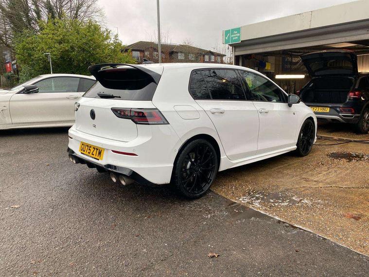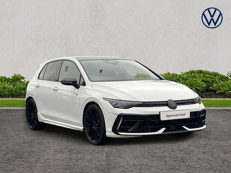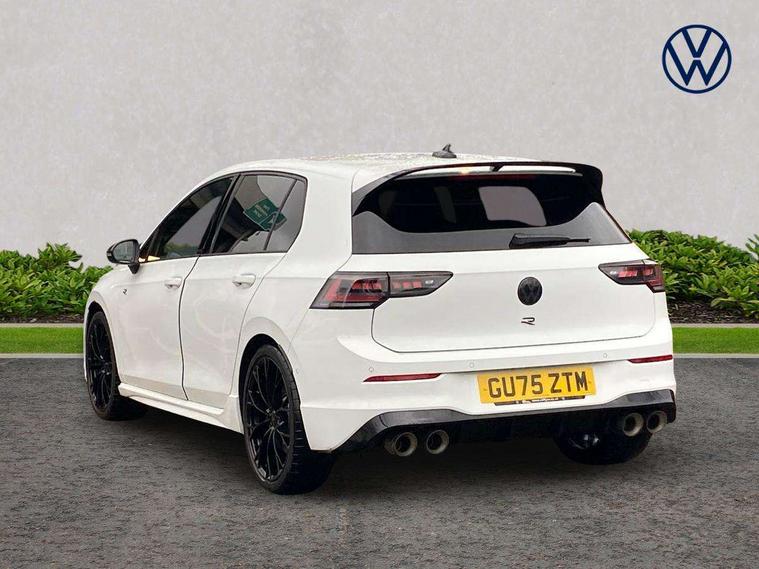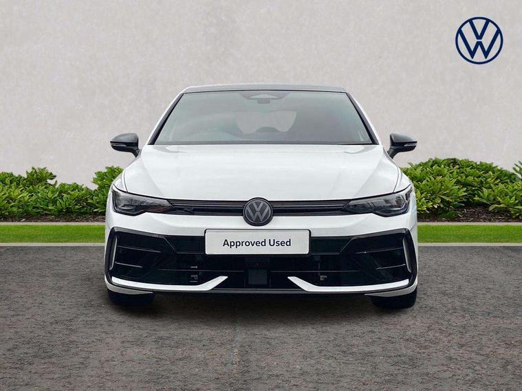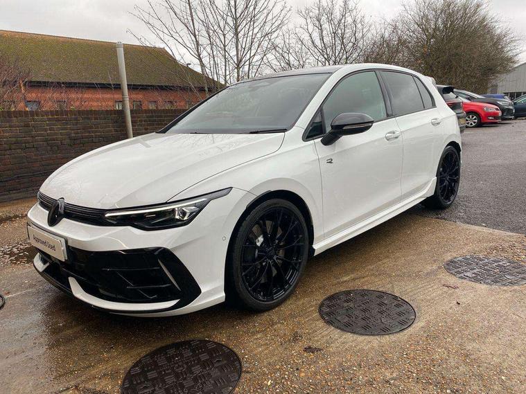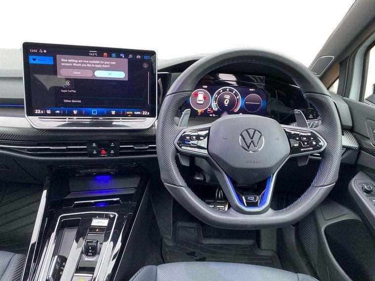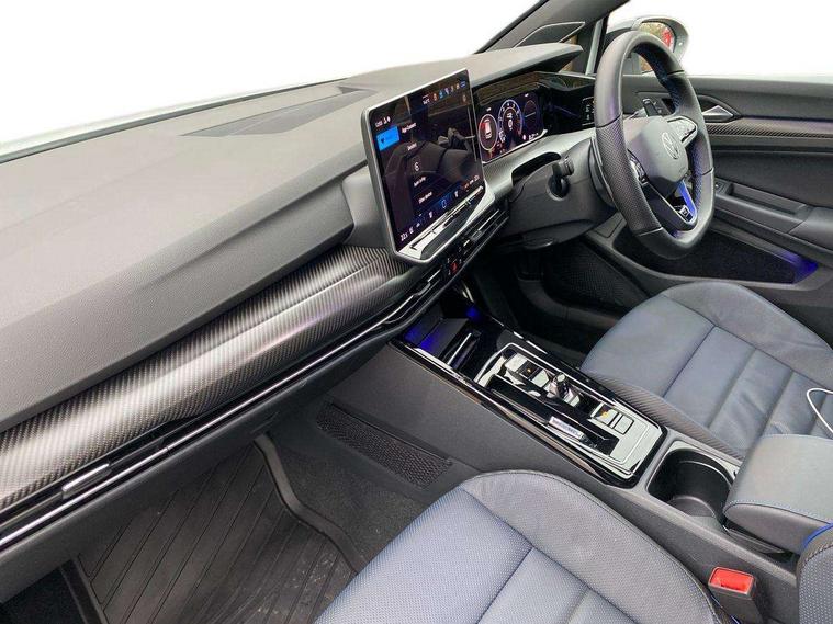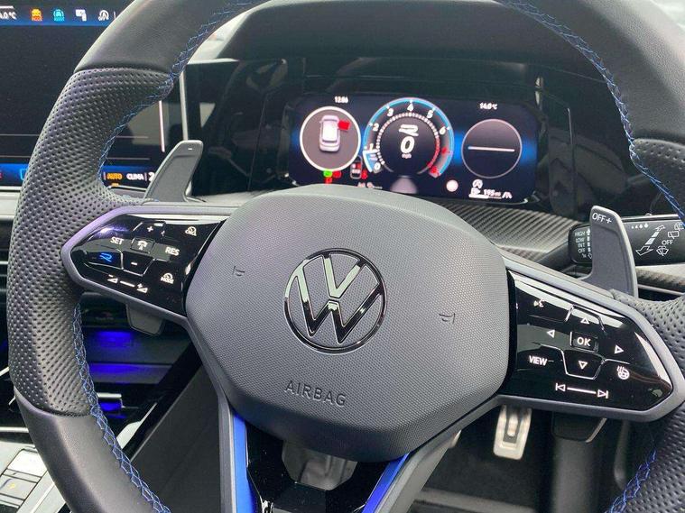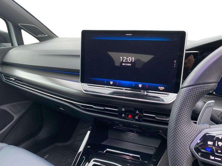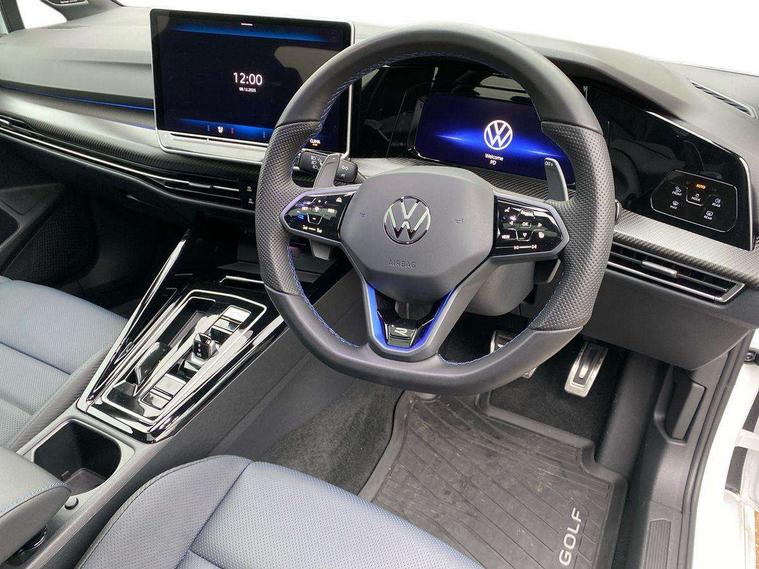Activated carbon canister, Adaptive cruise control (ACC), Advanced driver attention and drowsiness monitor, Dynamic road sign display, E-Sim card for online connectivity, eCall emergency call system, Electronic maximum speed limit increased to 270 km/h, includes driving Modes 'drift' and 'special', larger roof spolier and GPS laptimer + G-Meter, Multi-color Digital cockpit pro, selection of different info profile possible, Multifunction front facing camera for distance control, Navigation system, Oncoming vehicle braking when turning including swerve support, Side assist blind spot lane change system, rear traffic alert and exit warning system, Speed limiter, Speedo, rev counter, electronic odometer, trip, service interval display, exterior temperature and fuel gauge, Traffic jam assist, Voice enhancer and voice control, Warning signal and warning light for front and rear seatbelts not fastened, We connect plus preparation, We connect preparation, Wireless app connect, All wheel drive - 4Motion, Petrol Particulate Filter, Start-stop system with battery regeneration (recuperation - energy recovery during braking), XDS electronic differential lock for improved traction and handling, 2 USB C ports in front, 2 USB charging sockets on the centre console in the rear charging capacity upto 45W, Digital radio reception (DAB), Diversity antenna for FM reception, Gaming platform via car app, Infotainment system with 12.9" display, Mobile phone interface with inductive charging feature, 3rd brake light, Auto dimming rear view mirror, Automatic headlamp activation with Coming home and Leaving home feature, Black badge on B-pillar, Black mirror caps, Black strips on radiator grille and headlights, Body colour door handles, Darkened headlights, Darkened R Logos and VW logos in front, rear and on fender, Exterior mirrors convex on the left and aspherical on the right, Front and rear electric windows, Front fog lamps and cornering light, Heat insulating windshield made of laminated glass, Illuminated lighting animation with wake up/goodbye scenario, LED matrix headlights with ambient light V2, advanced high beam, dynamic range contol with cornering, LED rear lamp with indicator, poor weather, LED separate daytime running light, R name plate, Rain sensor, Rear fog light on one side and reversing lights on both sides, Rear side wing doors, Rear tinted glass 65% light absorbing from B pillar backwards, Rear windscreen washer and wiper with interval delay, Remote electrically foldable door mirrors, puddle lights and reverse activated passenger's door mirror, Welcome light with surround lighting, 12V socket in front centre console, 12V socket in luggage compartment, 3 rear head restraints, 3 seat bench in 2nd row, 30 colour ambient lighting, illuminated center console storage compartment in front, Air care climatronic 3 Zone automatic climate control with rear air conditioning control panel, Aluminium gearshift handle, Brushed stainless steel pedals, Chrome plated radiator grille inserts, air vent surrounds and light switch surrounds, Entry lights, Front + rear black carpet mats, Front centre armrest, Integrated front head restraints, ISOFIX anchors for child seats on outer rear bench seats and on front passanger seat compatible for i-Size, Luggage compartment lighting, Rear cupholder and loadthough, Single front passenger seat, Soul black instrument panel, Soul black roof lining, Split folding backrest with centre armrest and unsplit rear seat bench, Sun visors with illuminated vanity mirrors, Driver assistance pack - Golf Estate/Hatchback Auto, R styling pack - Golf, Technology park and comfort pro package - Golf Hatchback, 3 point height adj front seatbelts + pretensioners, 3 rear three point seatbelts, ABS, Autonomous emergency braking front assist with pedestrian and cyclist monitoring, Child locks on rear doors, Driver and front passenger airbag with front passenger airbag deactivation, Electronic parking brake with auto hold, ESC (Electronic Stability Control), Extended pedestrian protection measures, Front and rear black brake calipers with darkened R-logo, Hill start assist, Rear disc brakes, Two tone horn, Tyre pressure loss indicator, Volkswagen roadside assistance, Anti theft wheel bolts, Preparation for alcohol interlock, 19" Estoril alloy wheels in black with progressive steering, Sporty vehicle dynamics, Tool kit for tyre mobility set, Tyre mobility kit Includes 12V compressor and tyre sealant, Wheel hub cover with darkened R-logo,
