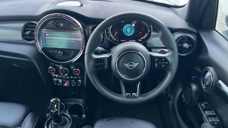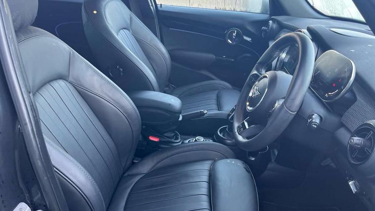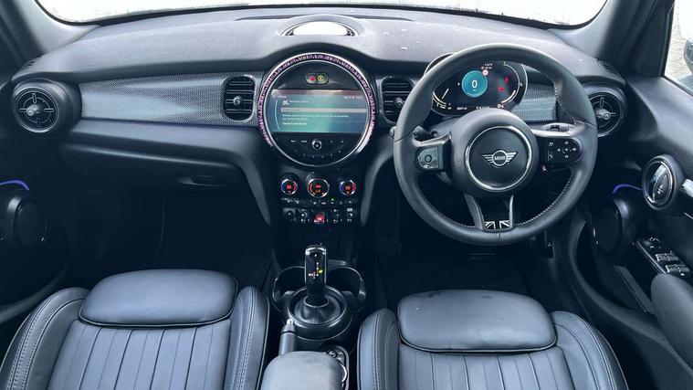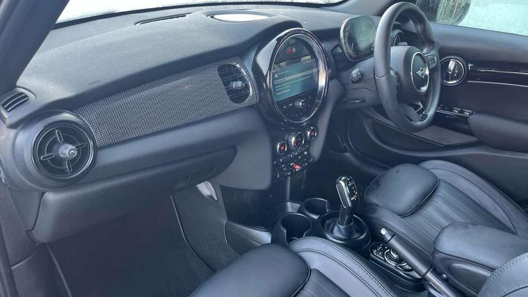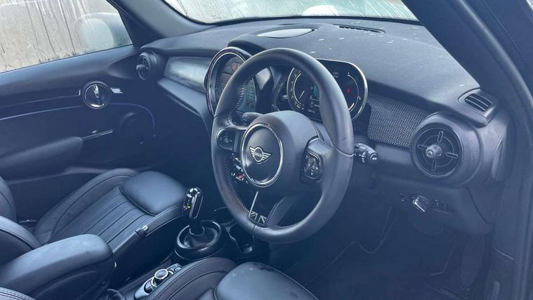 Apple CarPlay, Automatic start/stop function with brake energy recuperation, Compatible mobile phone bluetooth with audio streaming, Electro-mechanical speed dependant steering assistance, Flexible car sharing preparation, MINI Driving Modes - centre toggle switch to control driving setting (sport, mid and green), Mini E-call, MINI TeleServices, On board computer, Rear park distance control, Service interval indicator, Double Vanos system, Fully variable valve control, Gear change indicator display, High precision injection, Performance Control, Steptronic transmission with double clutch, 8.8" touchscreen with LED ring, FM tuner and DAB digital radio, 3rd brake light, Automatic headlight activation switch, Body colour fuel filler cap, Chrome line exterior - radiator grille bars, tailgate handle, lower front grille grating and rear central fog-light, Dynamic brake lights, Electric front+rear windows, Heated rear window, Heated windscreen washer jets, Metal door sill strips with MINI imprint, Model logo Cooper on right of tailgate, Rain sensor window wipers, Rear fog lights, Rear LED lights with union jack design, Rear side wing doors, Rear window wiper, Side scuttle panel with integrated indicator, Sun/heat protection glass, White indicator lenses, 12V Accessory socket in centre console, 3 seat bench in 2nd row, 4 lashing eyes in luggage compartment, 60/40 split folding rear seat, Anthracite headliner including grab handles and clothes hooks, Carbon black colour line - Knee roll and door armrest, Chrome interior highlights, Chrome line interior - air vents, gear lever base, door handles and speakers in doors, Cupholders, Front and rear head restraints, Front and rear isofix with front passenger airbag deactivation, Front and rear velour floor mats, Glove compartment, Height and length steering column adjustment, Interior lighting with 12 different colours across the dashboard, underneath door bezel with illuminated laser-engraved design on central display, Leatherette gearshift lever and handbrake gaiters, LED reading lights, vanity mirror lights, front foot well light and spotlight on front seats, Mechanical seat adjustment - forward/back & backrest for front seats and driver seat height adjust, MINI yours badge on exterior pillar, Multifunction steering wheel, Single front passenger seat, Storage compartments in doors, Sunvisors with vanity mirrors, Walknappa leather steering wheel with grey seam and MINI Yours badge on Piano Black lower steering wheel spoke, 3 point seatbelts on all five seats, 6 Airbags - front, side, head and seat belt tensioners, Anti-lock braking system (ABS), Child locks on rear doors, DSC - Dynamic Stability Control, Front and rear disc brakes, Hill start assist, Single tone fanfare horn, Tyre pressure monitoring system, Alarm system with tilt sensor, monitoring doors, bonnet interior and tailgate, Electronic vehicle immobiliser, Start/stop toggle with keyless go, Tool kit,