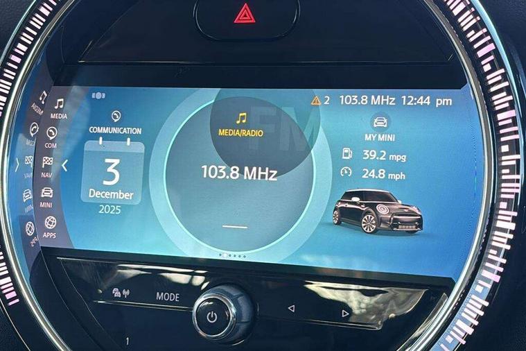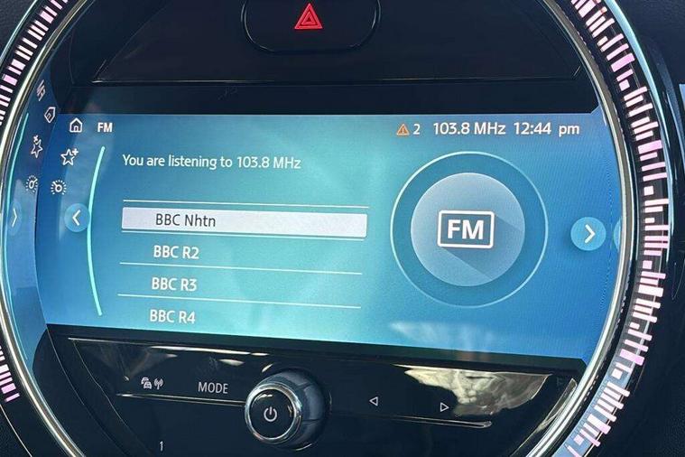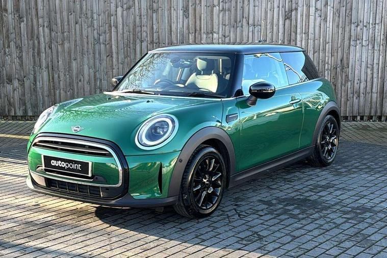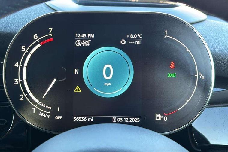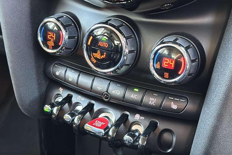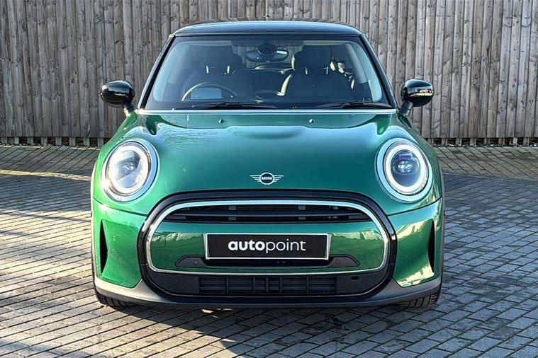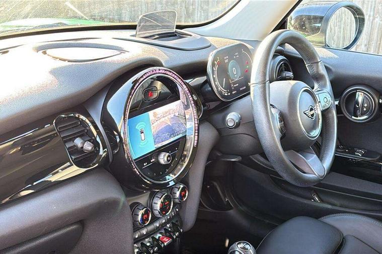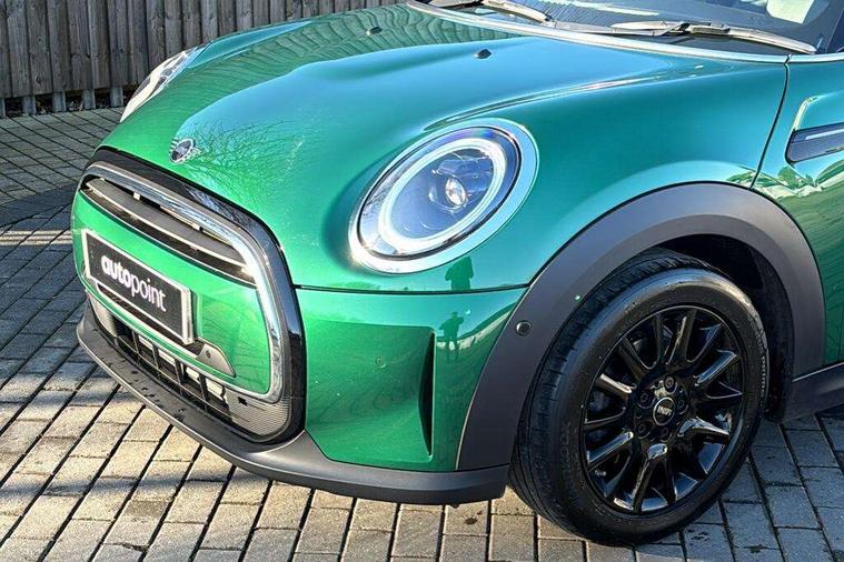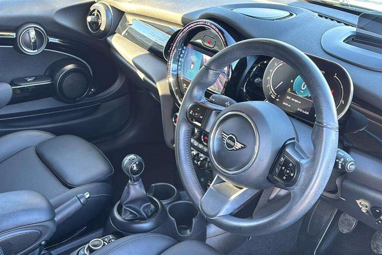 Automatic start/stop function with brake energy recuperation, Compatible mobile phone bluetooth with audio streaming, Cruise control with brake assist, Electro-mechanical speed dependant steering assistance, Flexible car sharing preparation, Instrument cluster, Mini E-call, MINI TeleServices, On board computer, Service interval indicator, 6 Speed manual transmission including gear change indicator display, Double Vanos system, Fully variable valve control, High precision injection, Performance Control, 4 speakers in front door trims and underneath front seats, 8.8" touchscreen with LED ring, FM tuner and DAB digital radio, Automatic headlight activation switch, Body colour fuel filler cap, Chrome border high gloss black slats radiator grille, Dynamic brake lights, Electric front windows, Exhaust tailpipe on left with chrome finisher, Heated rear window, Heated windscreen washer jets, LED headlight with closed ring and daytime driving lights, Metal door sill strips with MINI imprint, Model logo Cooper on right of tailgate, Rain sensor window wipers, Rear fog lights, Rear LED lights with union jack design, Rear window wiper, Side scuttle panel with integrated indicator, Sun/heat protection glass, White indicator lenses, 12V Accessory socket in centre console, 4 lashing eyes in luggage compartment, 60/40 split folding rear seat, Ambient lighting, Carbon black colour line - Knee roll and door armrest, Chrome interior highlights, Cupholders, Front and rear head restraints, Front and rear isofix with front passenger airbag deactivation, Glove compartment, Height and length steering column adjustment, Interior lighting with 12 different colours across the dashboard, underneath door bezel with illuminated laser-engraved design on central display, Leatherette gearshift lever and handbrake gaiters, LED reading lights, vanity mirror lights, front foot well light and spotlight on front seats, Manual air conditioning, Mechanical seat adjustment - forward/back & backrest for front seats and driver seat height adjust, Multifunction steering wheel, Passenger seat height adjuster, Satellite grey headlining including grab handles and clothes hooks, Sport leather steering wheel with speed limiter and audio/communication controls, Storage compartments in doors, Sunvisors with vanity mirrors, Velour floor mats, 3 point seatbelts on all four seats, 6 Airbags - front, side, head and seat belt tensioners, Anti-lock braking system (ABS), DSC - Dynamic Stability Control, Front and rear disc brakes, Single tone fanfare horn, Tyre pressure monitoring system, Alarm system with tilt sensor, monitoring doors, bonnet interior and tailgate, Electronic vehicle immobiliser, Start/stop toggle with keyless go, Piano black interior trim, Tool kit, Tyre repair kit,