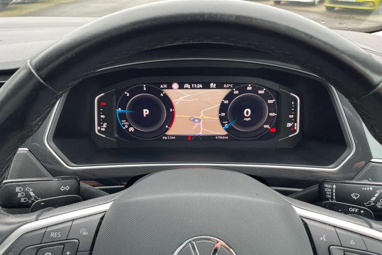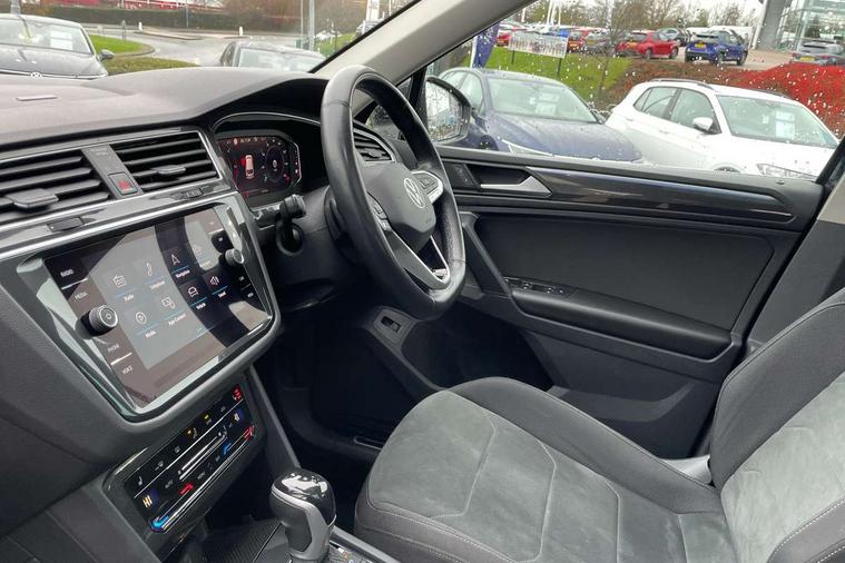 Adaptive cruise control ACC stop and go including speed limiter, App-Connect incl. App-Connect Wireless for Apple CarPlay and Android Auto, Bluetooth phone integration system, Distance control assist, Driver alert system, Driver profile selection, Dynamic road sign display, eCall emergency call system, Electromechanical speed sensitive power steering, Engine start/stop button, Lane keeping system Lane Assist, Lights on warning, Motorised electric tailgate operated via key fob, drivers door and foot movement under tailgate, Multifunction front facing camera, Outside temperature display, Premium multifunction display with multi colour display, Remote control boot opening, Rev counter, Revision / skills operating concept travel assistant, Service interval indicator, Speed limit display, Start/stop system with regenerative braking, Tailgate/trunk lid unlocking from outside, Trip computer, Warning sound and light for doors and tailgate open, Battery regeneration during braking, Diesel particulate filter, Misfuel prevention device for diesel engine, Selective Catalytic Reduction, XDS electronic differential lock for improved traction and handling, 4 X 20 watt output, 8 Speakers, Diversity antenna for FM reception, Radio, SD card slot, Simultaneous pairing of 2 compatible mobile devices, SMS functionality - read, compose and send SMS messages using touch-screen display, Title and cover art display, USB C ports, Aluminium door sill protectors, Auto dimming interior rear view mirror, Automatic headlight control system, Body colour door handles, Body coloured bumpers, Body coloured door mirrors with integrated indicators, Coming/leaving home lighting function, Dynamic headlight range control, Front and rear electric windows, Heated rear window, High level 3rd brake light, IQ light-Adv high beam, Dynamic light assist for LED matrix headlamp+LED separate DRL+DCL, dark red rear LED tech, Poor weather light+ cornering light, Laminated safety glass windshield, heat and sound insulating, LED rear number plate lights, Poor weather light and cornering light, Privacy glass for rear side windows and rear window, Rain sensor windscreen wipers, Rear exhaust tailpipe, Rear fog lamp, Rear side wing doors, Rear windscreen washer and wiper with interval delay, Side and rear windows in heat insulating glass, Tilting and sliding panoramic sunroof with rear panoramic sunroof, Trailer Stability Programme, Windscreen wipers/ intermittent wipe + 4 position delay, 12V outlet in center console rear and in luggage compartment, 12V outlet in front and tray, 2 cup holders in front, 2 LED front reading lights, 2 LED rear reading lights, 3 bench rear seats in 2nd row, 3 rear headrests, 4 load lashing points, 40:20:40 split folding rear seats, Air Care Climatronic 3 zone automatic climate control with enhanced air filter and controls in the rear, Backrest release for left front seat, Climate control unit rear with touch function, Door and side trim panel in foam film and woven fabric, Front centre armrest, Front footwell illumination, Front seats head restraints (x-adjustment), Height adjustable front seats, Height/reach adjust steering wheel, Instrument lighting white adjustable panel illumination, Interior light with delay, Isofix Preparation 2 Rear child seats, Leather gear knob, Lockable cooled glovebox, Luggage compartment lighting, Luggage net, Rear bench seat asymetrically split folding, longitudinally movable and folding with load-through hatch and center armrest, Remote unlocking for rear seat backrest, Removable luggage cover, Removable rear headrests, Safety optimised front head restraints, Single front passenger seat, Sliding/reclining rear seats, Standard rear seat release, Storage compartment in driver's door, Storage compartment in passenger's door, Storage compartment in rear doors, Storage compartments in luggage area left and right, Storage tray on dashboard, Sun visors with illuminated vanity mirrors, Top front comfort seats, Variable boot floor, height adjustable and removable, Easy open and close pack with safelock - Tiguan, 3 point seat belt for centre rear seats, 3 point seat belts with seat belt pretensioners for the outer rear seats, Active bonnet, Curtain airbags for front and rear passengers, Driver/Front Passenger airbags, Drivers knee airbag, Electronic parking brake with auto hold, Electronic Stability Control with driver steering recommendation, ABS, ASR, EDL, EDTC and trailer stabilization, Front assist with autonomous emergency braking (for Adaptive Cruise Control ACC up to 130 mph), Front disc brakes, Front passenger airbag deactivation, Front side airbags, Height adjustable front 3 point seatbelts + pretensioners, Hill hold control, Manual child proof rear door locks, Pedestrian monitoring system, Power assisted brakes, Proactive passenger protection system in combination with front assist, Rear disc brakes, Rigid safety cell with front and rear crumple zones, Two tone horn, Warning sound and light for front seat belts if unfastened, Anti theft alarm system with interior monitoring, backup horn and towing protection, Anti theft wheel bolts, Central locking system with safelock radio remote control and 2 remote control folding keys, Electronic engine immobiliser, Tool kit,