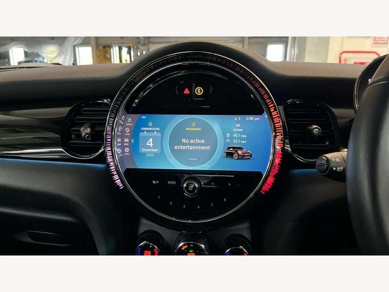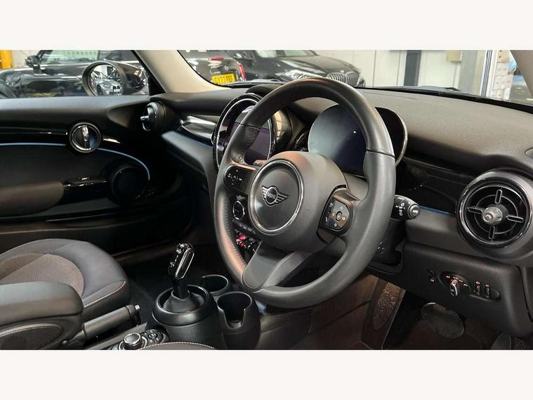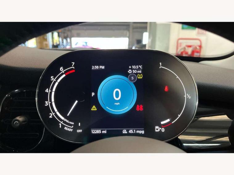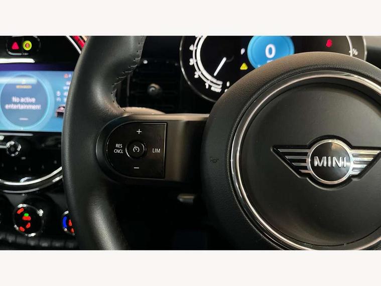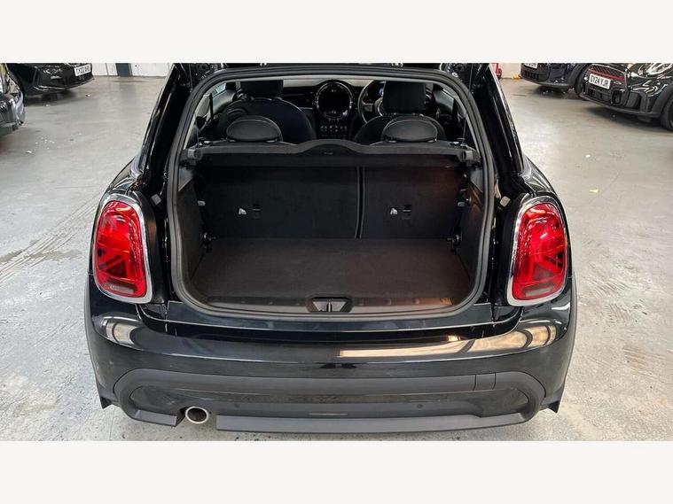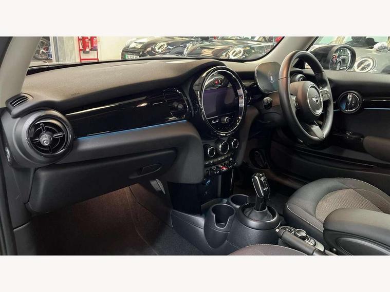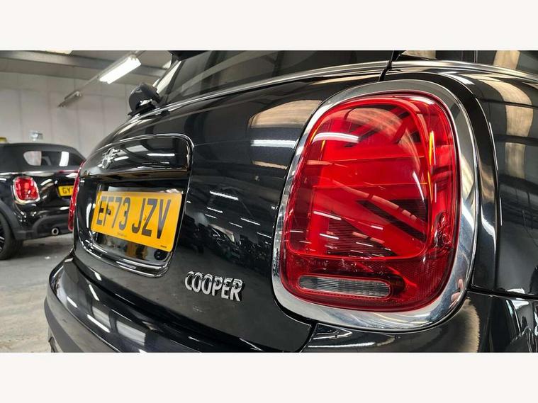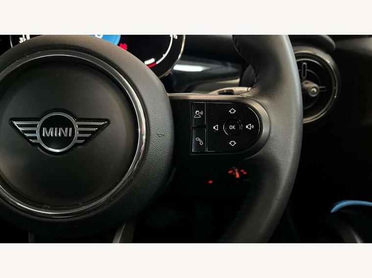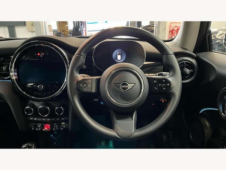 Apple CarPlay, Automatic start/stop function with brake energy recuperation, Compatible mobile phone bluetooth with audio streaming, Cruise control with brake assist, Electro-mechanical speed dependant steering assistance, Flexible car sharing preparation, Instrument cluster, Mini E-call, MINI TeleServices, On board computer, Service interval indicator, Double Vanos system, Fully variable valve control, High precision injection, Performance Control, Steptronic transmission with double clutch, 8.8" touchscreen with LED ring, FM tuner and DAB digital radio, 3rd brake light, Automatic headlight activation switch, Body colour fuel filler cap, Chrome border high gloss black slats radiator grille, Dynamic brake lights, Electric front windows, Exhaust tailpipe on left with chrome finisher, Heated rear window, Heated windscreen washer jets, LED headlight with closed ring and daytime driving lights, Metal door sill strips with MINI imprint, Model logo Cooper on right of tailgate, Rain sensor window wipers, Rear fog lights, Rear LED lights with union jack design, Rear window wiper, Side scuttle panel with integrated indicator, Sun/heat protection glass, White indicator lenses, 12V Accessory socket in centre console, 2 seat bench in 2nd row, 4 lashing eyes in luggage compartment, 60/40 split folding rear seat, Ambient lighting, Carbon black colour line - Knee roll and door armrest, Chrome interior highlights, Cupholders, Front and rear head restraints, Front and rear isofix with front passenger airbag deactivation, Front floor mats in velour, Glove compartment, Height and length steering column adjustment, Interior lighting with 12 different colours across the dashboard, underneath door bezel with illuminated laser-engraved design on central display, Leatherette gearshift lever and handbrake gaiters, LED reading lights, vanity mirror lights, front foot well light and spotlight on front seats, Manual air conditioning, Mechanical seat adjustment - forward/back & backrest for front seats and driver seat height adjust, Multifunction steering wheel, Passenger seat height adjuster, Satellite grey headlining including grab handles and clothes hooks, Single front passenger seat, Sport leather steering wheel with speed limiter and audio/communication controls, Storage compartments in doors, Sunvisors with vanity mirrors, 3 point seatbelts on all four seats, 6 Airbags - front, side, head and seat belt tensioners, Anti-lock braking system (ABS), DSC - Dynamic Stability Control, Front and rear disc brakes, Single tone fanfare horn, Tyre pressure monitoring system, Alarm system with tilt sensor, monitoring doors, bonnet interior and tailgate, Electronic vehicle immobiliser, Start/stop toggle with keyless go, Piano black interior trim, Tool kit, Tyre repair kit,