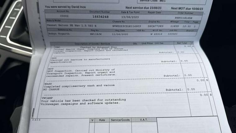 Adaptive cruise control including Front Assist, radar sensor controlled distance monitoring system, City emergency braking system, Driver alert system, Driver profile selection, Exterior temperature gauge with frost alarm, Lane assist, Low washer fluid warning light, Multifunction computer includes visual gear, One touch indicator turn signal, Proactive occupant protection, Security and service including e-call, Speed sensitive power steering, Speedo and rev counter, electronic odometer, trip, service interval display and fuel gauge, Start/Stop function, Traffic jam assist, Warning buzzer and light for front seatbelts unfastened, Wireless app connect, Battery regeneration during braking, Misfuel prevention device, Petrol Particulate Filter, Aerial for radio integrated into rear windscreen, Auto dimming interior rear view mirror, Automatic headlights with dusk sensor, Automatic leaving home and manual coming home lighting functions, Black radiator grille with chrome louvres, Body colour bumpers, Body colour door handles, Body coloured door mirrors with intergrated indicators, Chrome side window surrounds, Electrically adjustable and heated door mirrors, Front and rear electric windows, Fully galvanised body, Gloss black finish on B pillar, Heated rear window, High level 3rd brake light, LED rear lights, LED rear number plate lights, Rain sensor, Warning lights for open tailgate and doors, White instrument lighting, 12V socket in front centre console, 12V socket in luggage compartment, 60:40 split folding rear seat with backrest, Driver's door storage compartment for 1.0 litre bottle, Front + rear carpet mats, Front and rear interior lighting with delay and dimming function, Front centre armrest with storage compartment and two rear air vents, Front cupholders x2 with covers, Front passenger storage compartment for 1.5 litre bottle, Height adjustable rear seat head restraints (x3), Height/reach adjust steering wheel, Illuminated vanity mirrors, Isofix child seat preparation, outer rear seats, Load lashing points x 4 in luggage compartment, Load through provision, Lockable, illuminated, cooled glovebox, Luggage compartment lighting, Rear seat centre armrest with storage compartment, Storage compartment in rear doors, Storage compartment in roof console with cover, 3x3 point rear seatbelts, ABS (Anti locking brake system) includes BAS (Brake assist) and EBD (Electronic brake pressure distribution), Automatic post collision braking, Disc brakes front and rear, Door open warning reflectors, Driver/Front Passenger airbags, Drivers and front passengers safety optimised head restraints, longitudinal and height adjustable, Drivers knee airbag, Electronic parking brake with auto hold, First aid kit, Front airbags with deactivation switch, Front and rear passenger curtain airbags, Front side impact airbag, Height adjustable front 3 point seatbelts + pretensioners, Hill hold function, Pre crash preventive occupant protection, Rear seat side impact airbags, Rigid safety cell with front and rear crumple zones, Volkswagen roadside assistance, Warning light for rear seat belts if unfastened, Alarm with interior protection and deactivation via infotainment system, Electronic engine immobiliser, Chrome air vent and instrument surround, Cross hatch decorative inserts in dash and door panels,